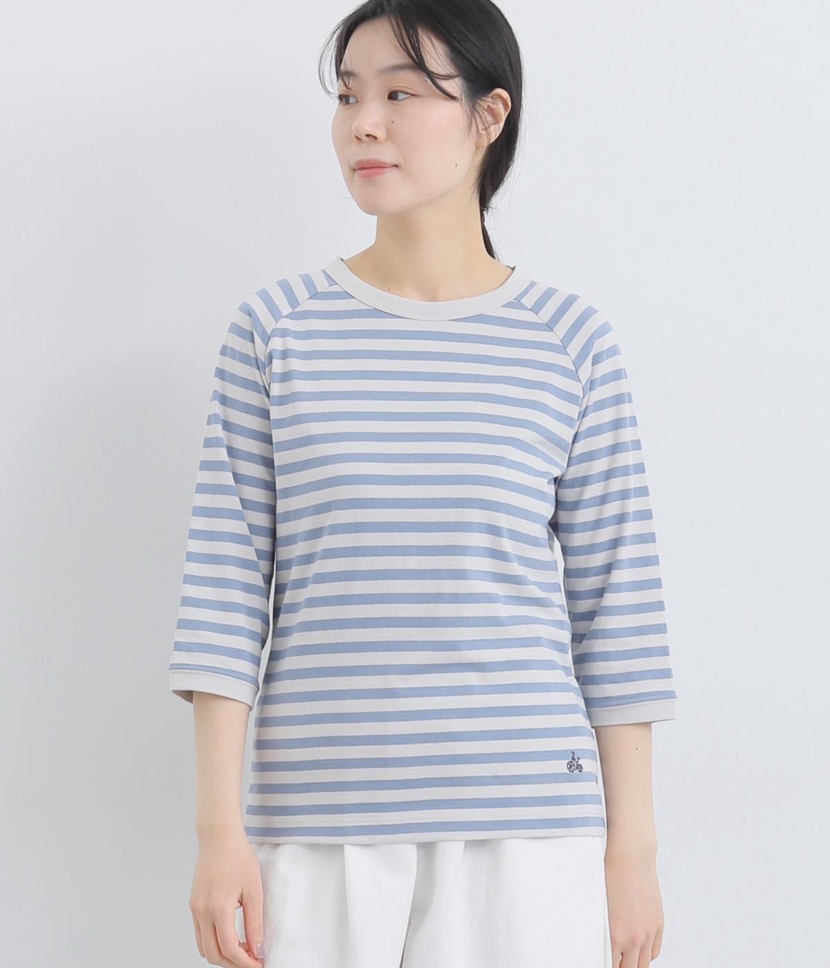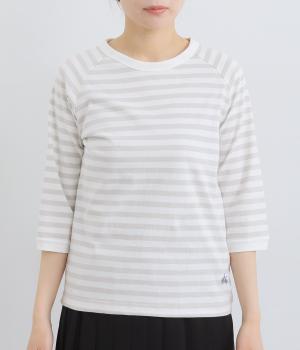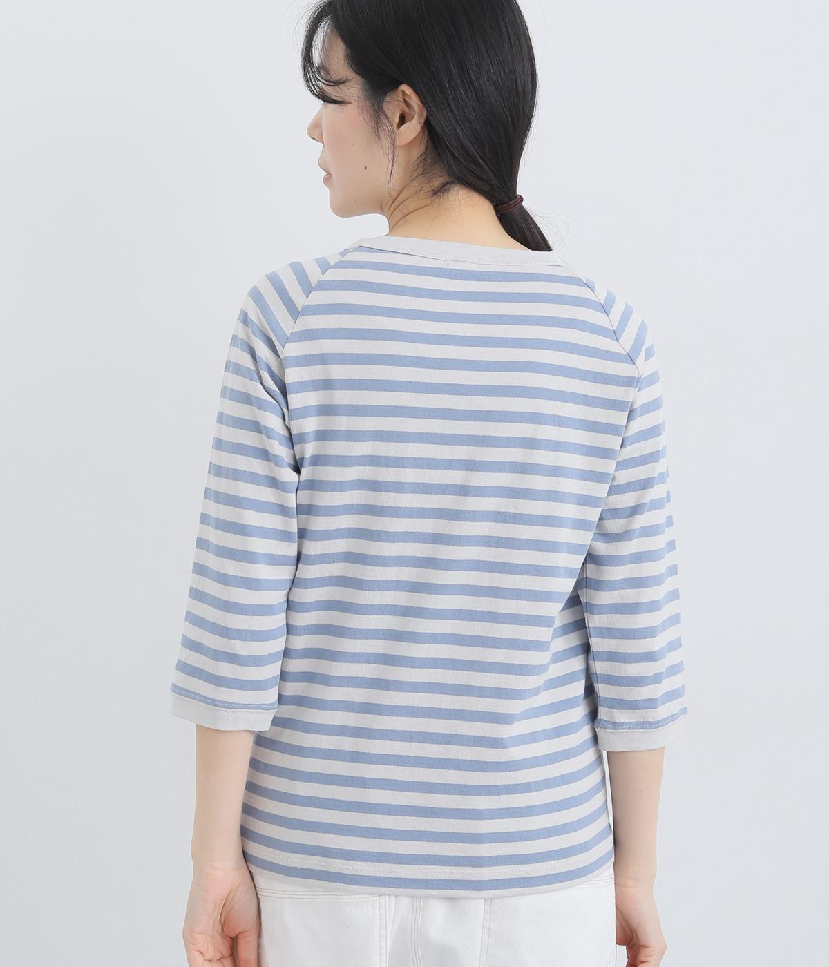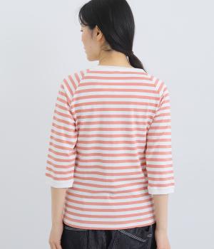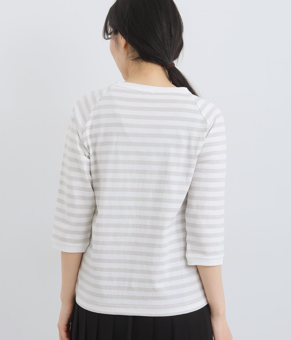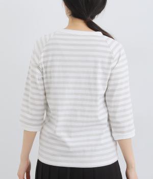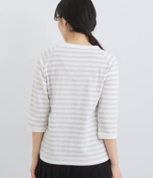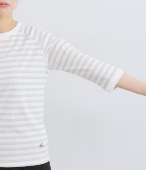 ボーダー柄に白リブ切り替えでさわやかに仕上げた一枚。肩まわりが動かしやすく着心地のいいラグラン仕立てに手元をすっきり見せた7分袖で季節の変わり目にも重宝。大人のカジュアルスタイルに欠かせない一枚です。