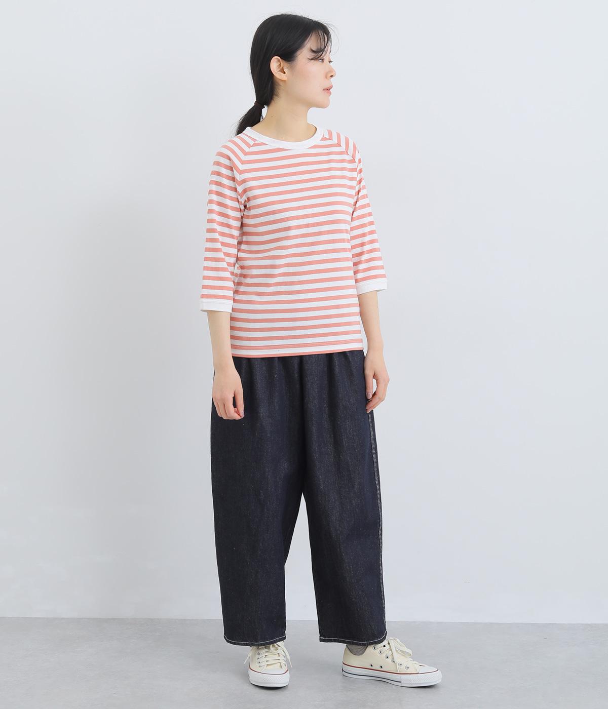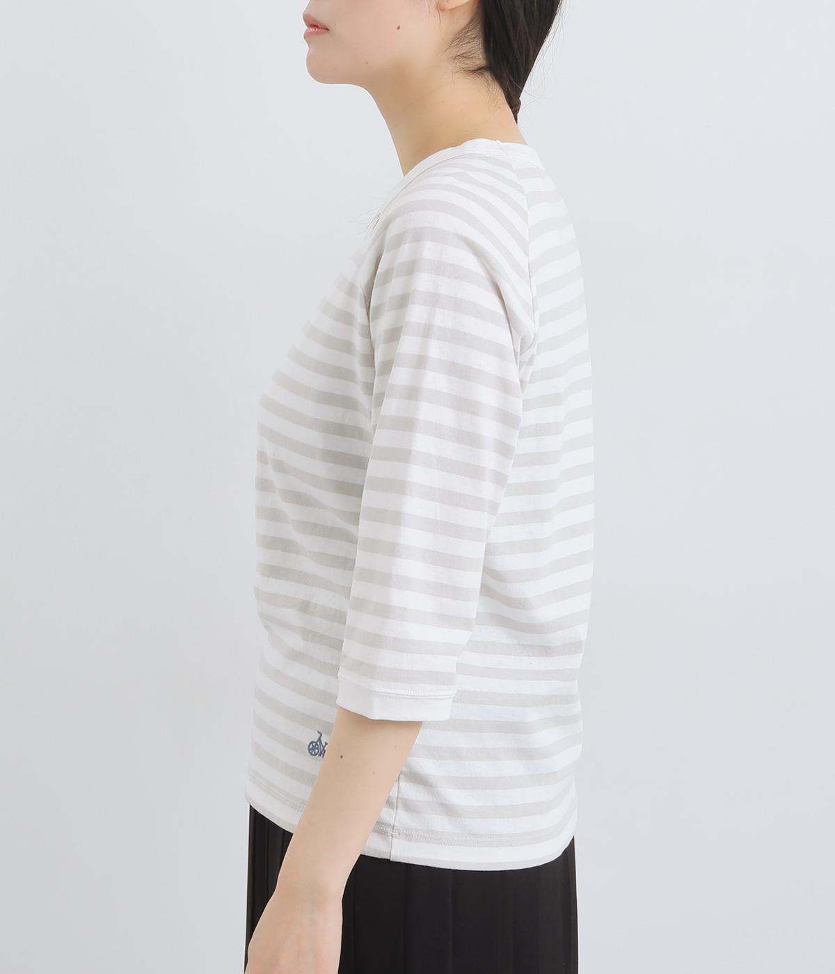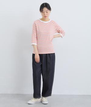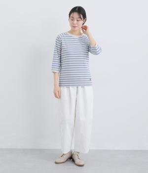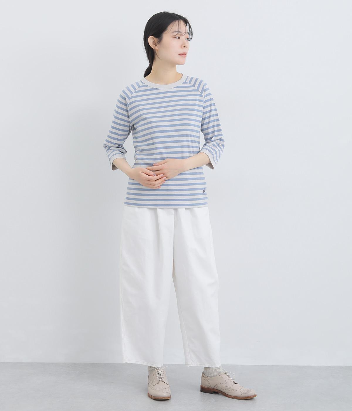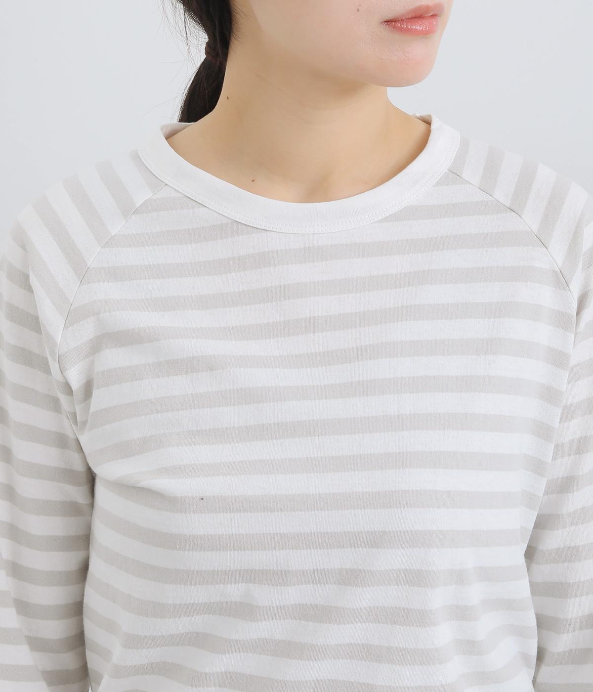 ボーダー柄に白リブ切り替えでさわやかに仕上げた一枚。肩まわりが動かしやすく着心地のいいラグラン仕立てに手元をすっきり見せた7分袖で季節の変わり目にも重宝。大人のカジュアルスタイルに欠かせない一枚です。