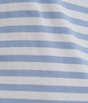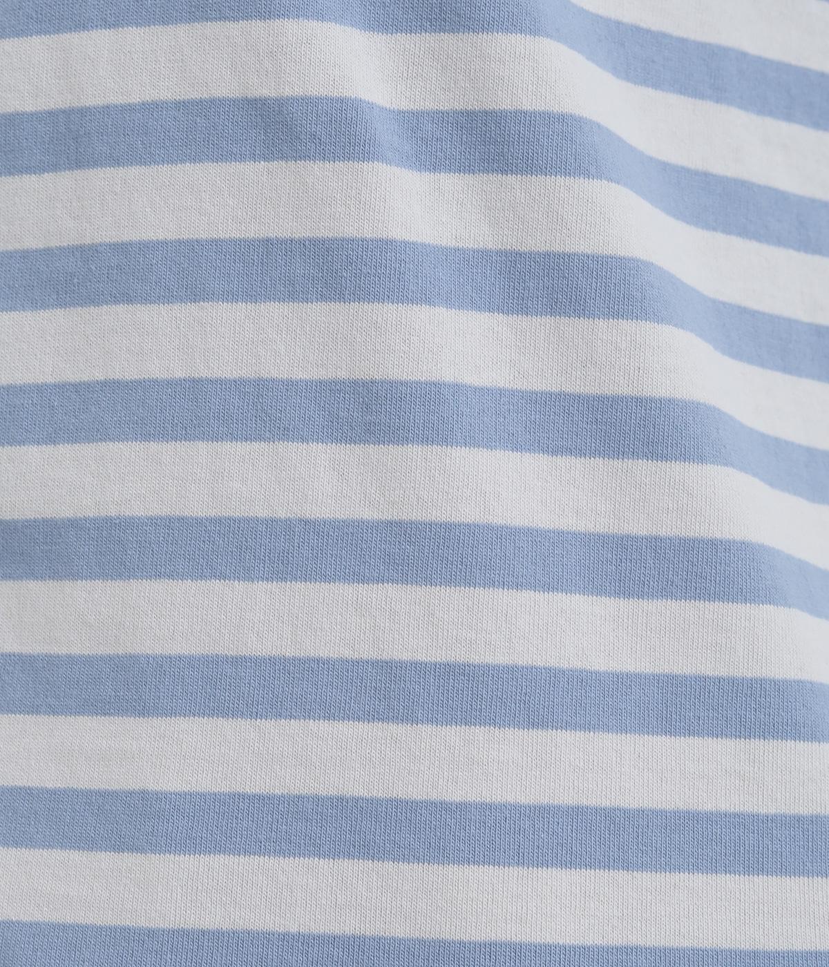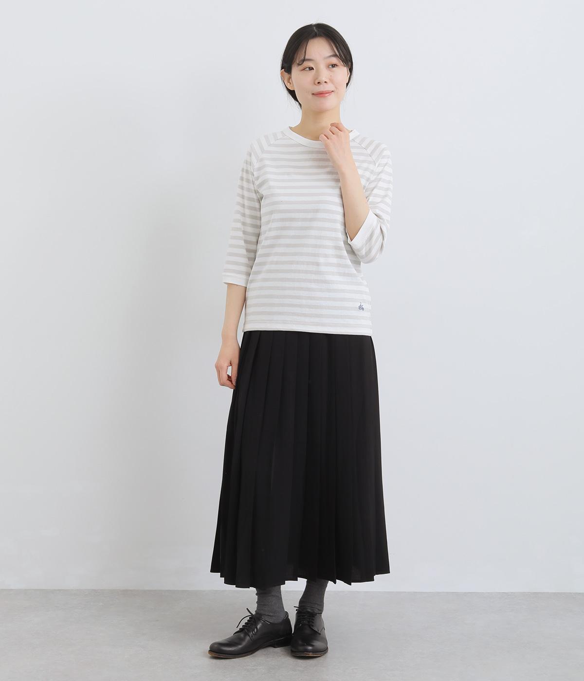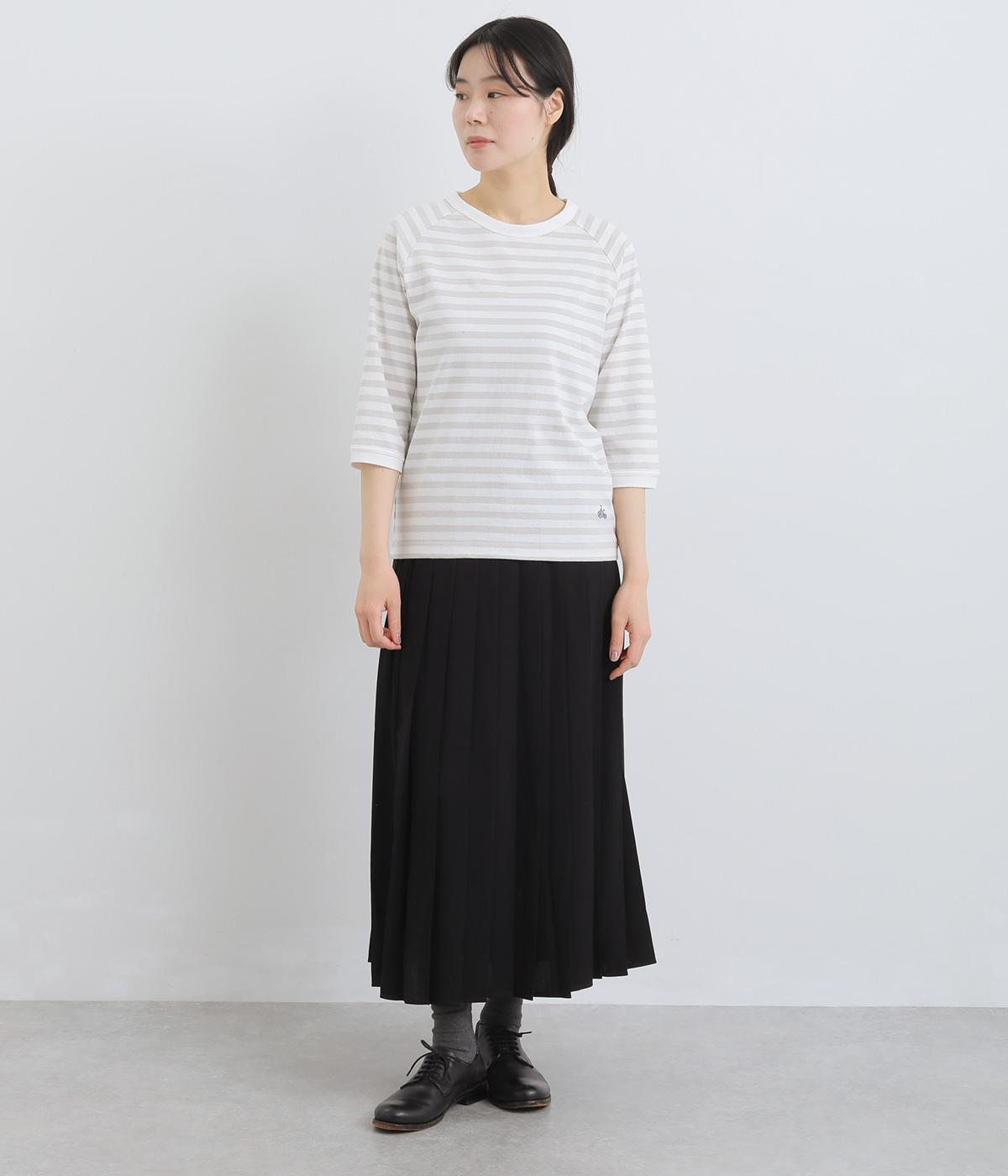 ボーダー柄に白リブ切り替えでさわやかに仕上げた一枚。肩まわりが動かしやすく着心地のいいラグラン仕立てに手元をすっきり見せた7分袖で季節の変わり目にも重宝。大人のカジュアルスタイルに欠かせない一枚です。