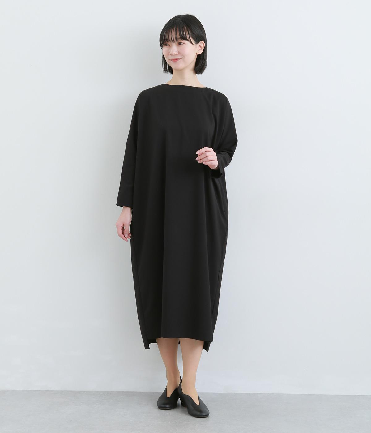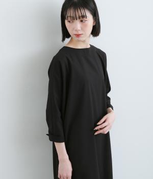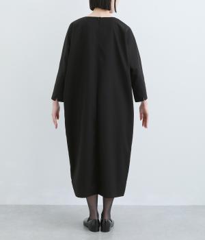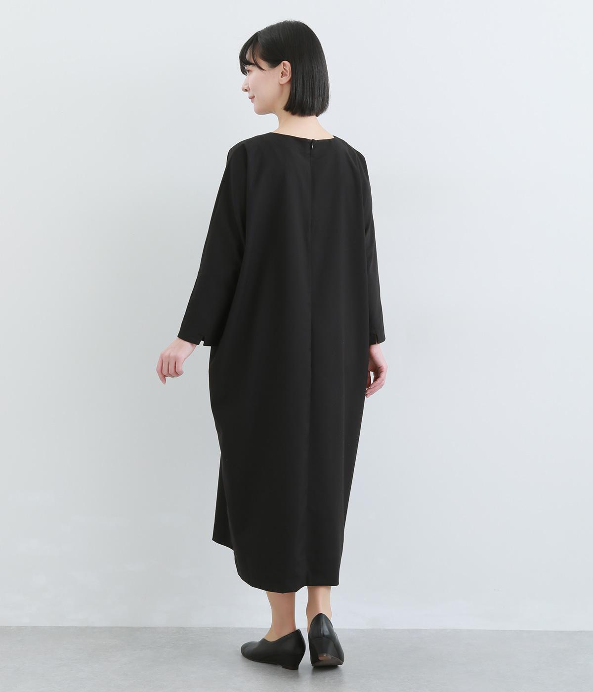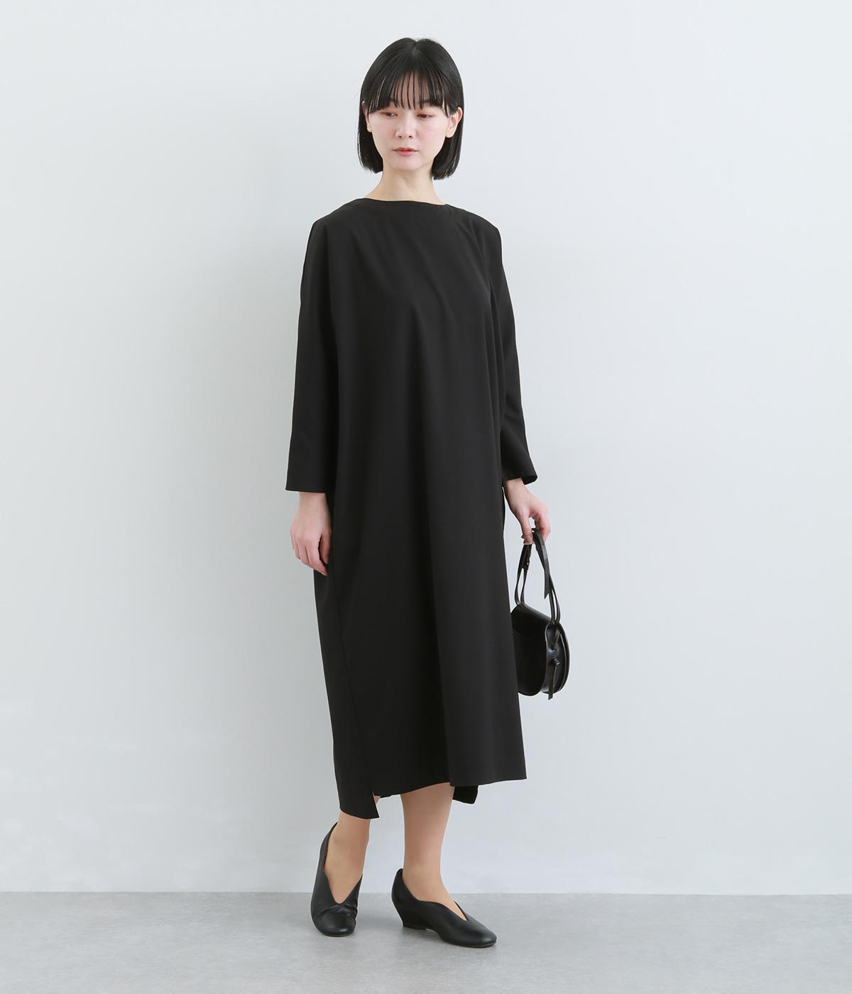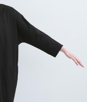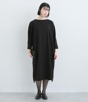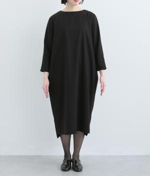 ドルマンシルエットのゆったりした着心地のワンピース。うしろファスナーが上品で洗練された印象を添えます。ほのかな前後差をつけた裾やスリット入りの袖が抜け感をプラス。フォーマルになじむ長めの丈感にもこだわりました。