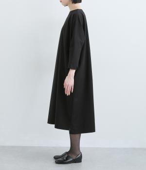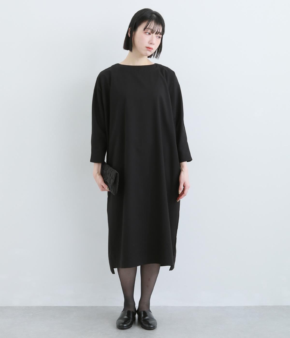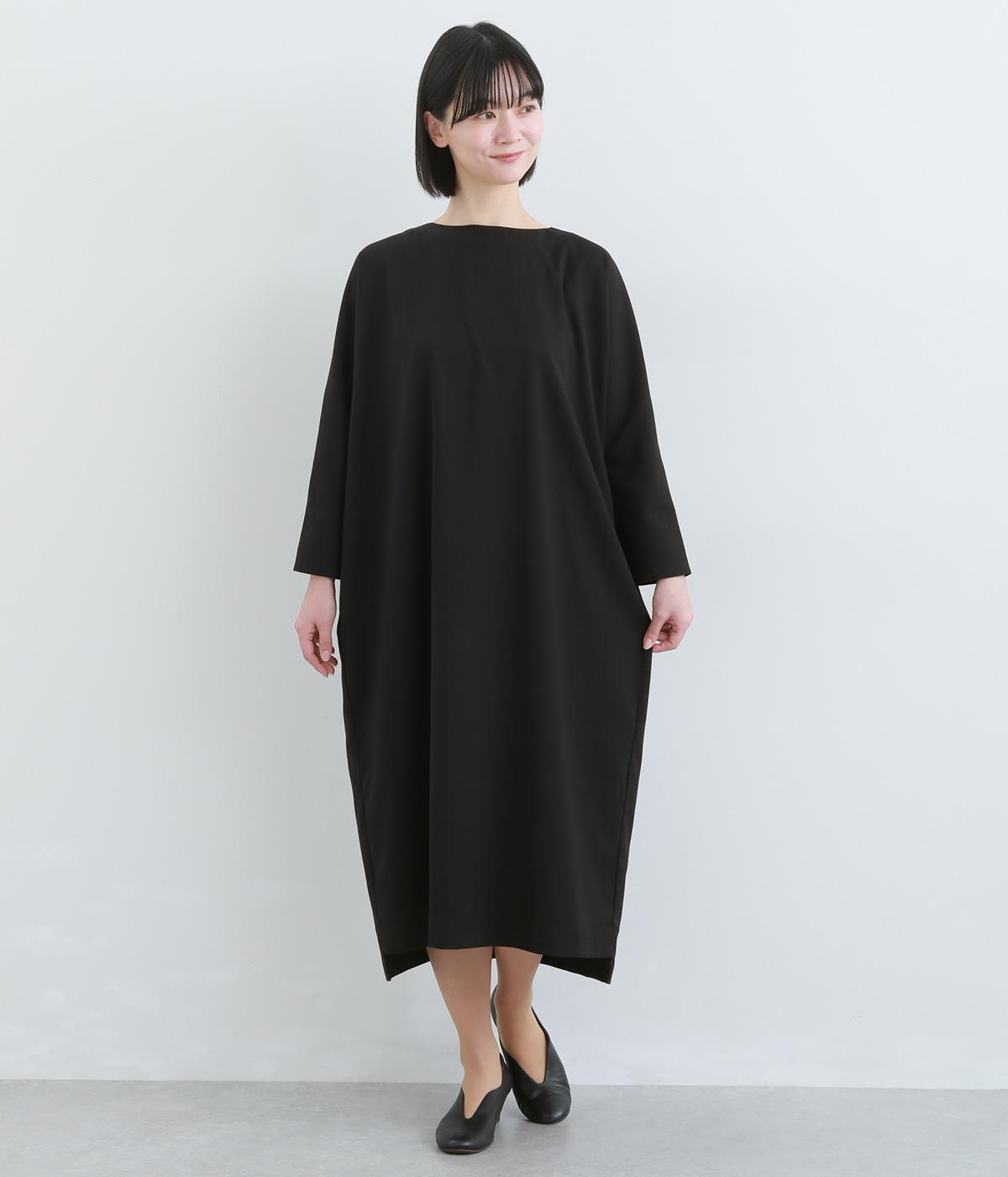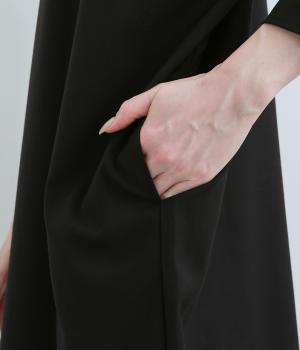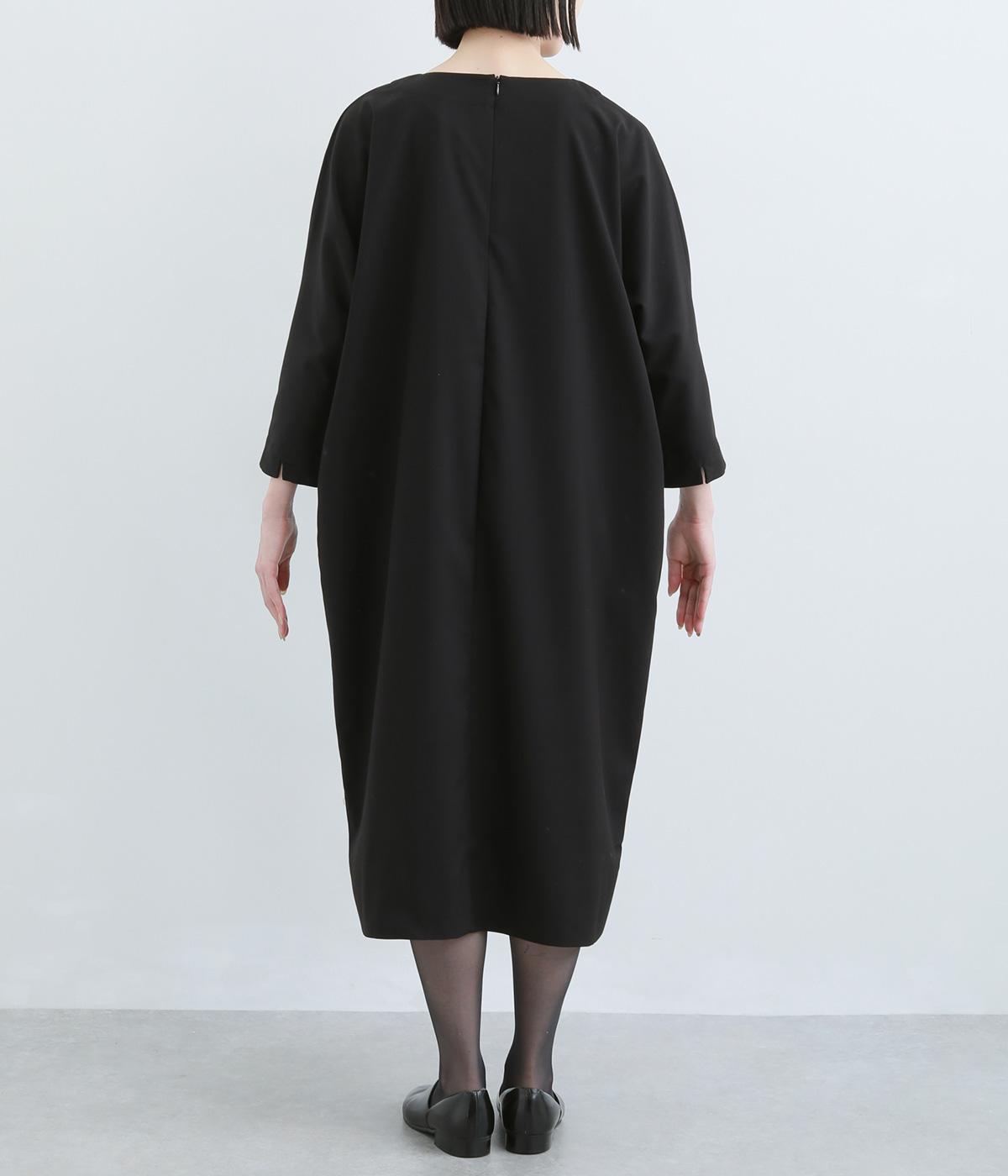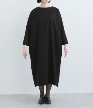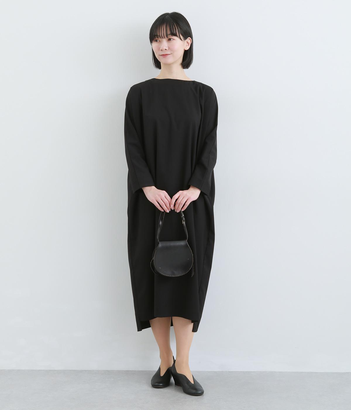 ドルマンシルエットのゆったりした着心地のワンピース。うしろファスナーが上品で洗練された印象を添えます。ほのかな前後差をつけた裾やスリット入りの袖が抜け感をプラス。フォーマルになじむ長めの丈感にもこだわりました。