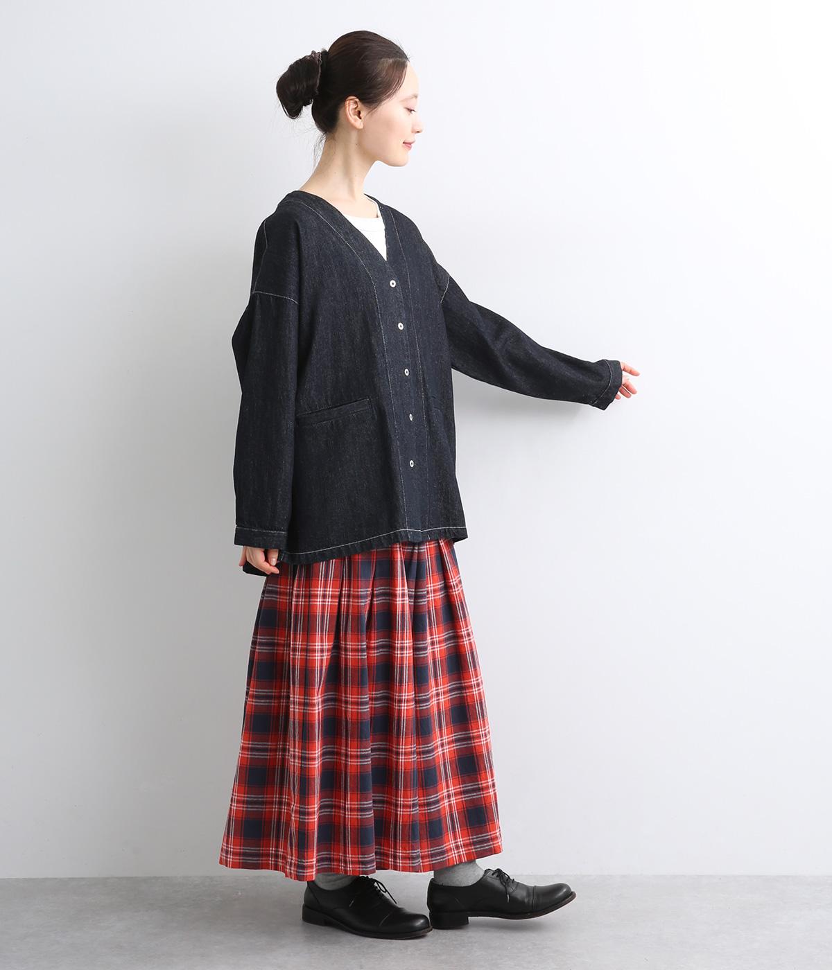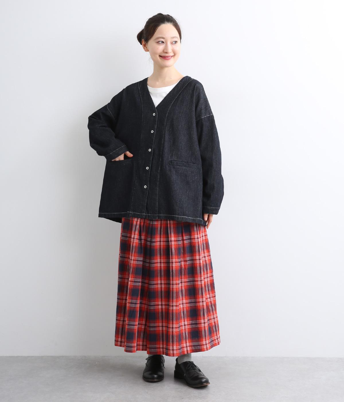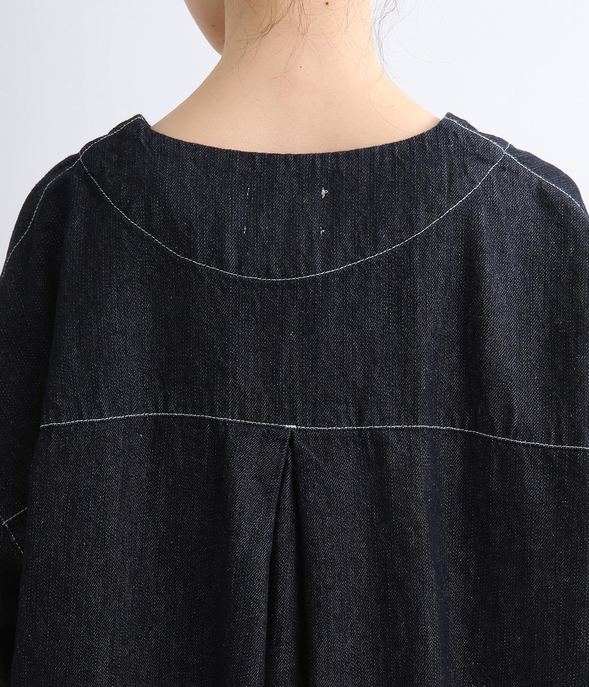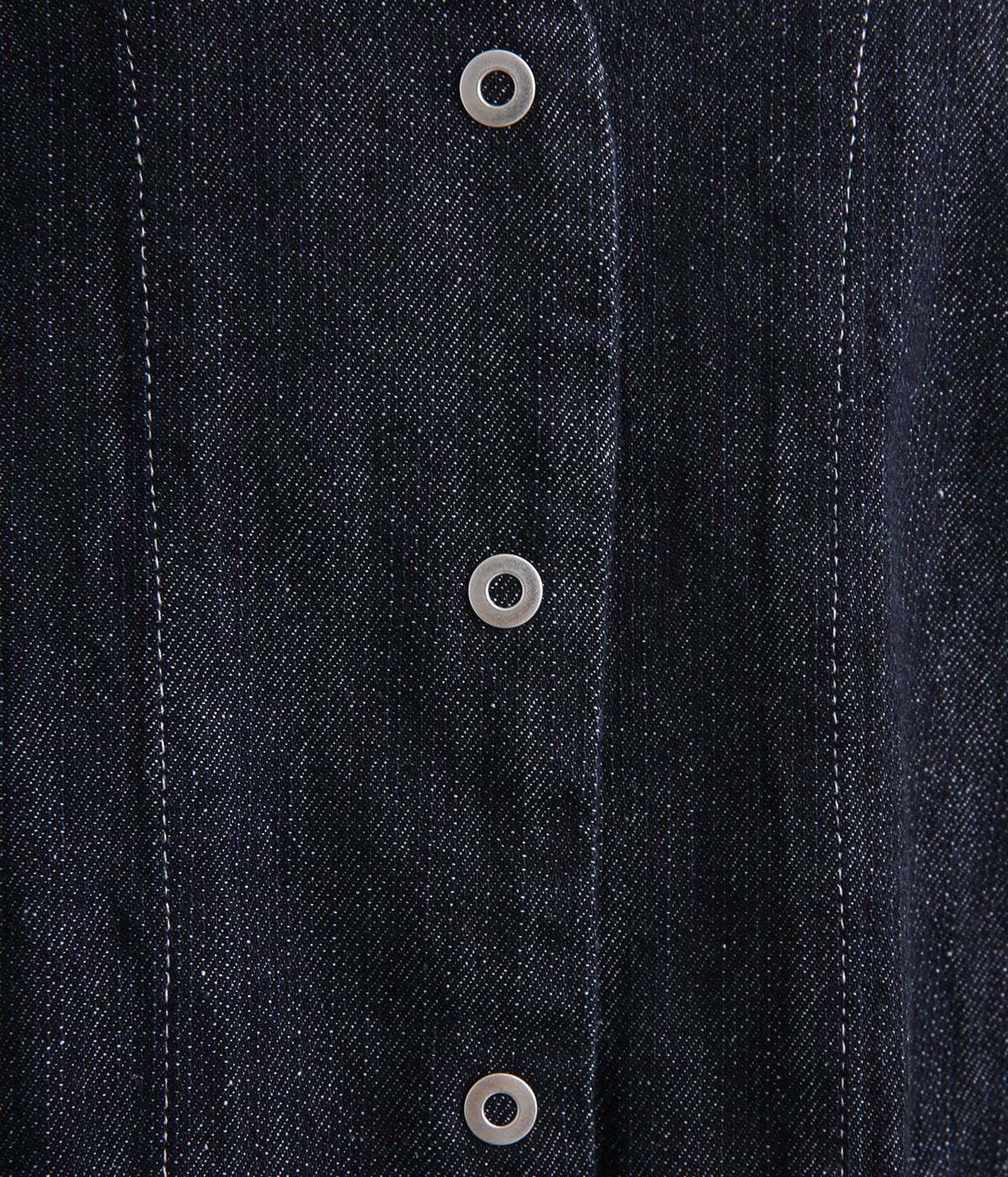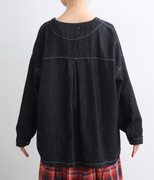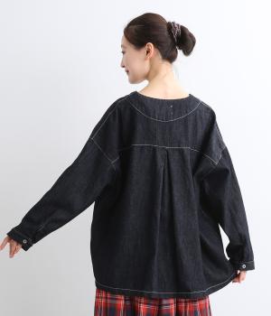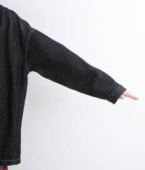 インディゴデニムに白ステッチがアクセントになったV開きのカバーオール。身幅はゆったりとしていますが、腕まわりはすっきりしていてバランスの取れたシルエットです。フロントポケットつきで使い勝手も◎。