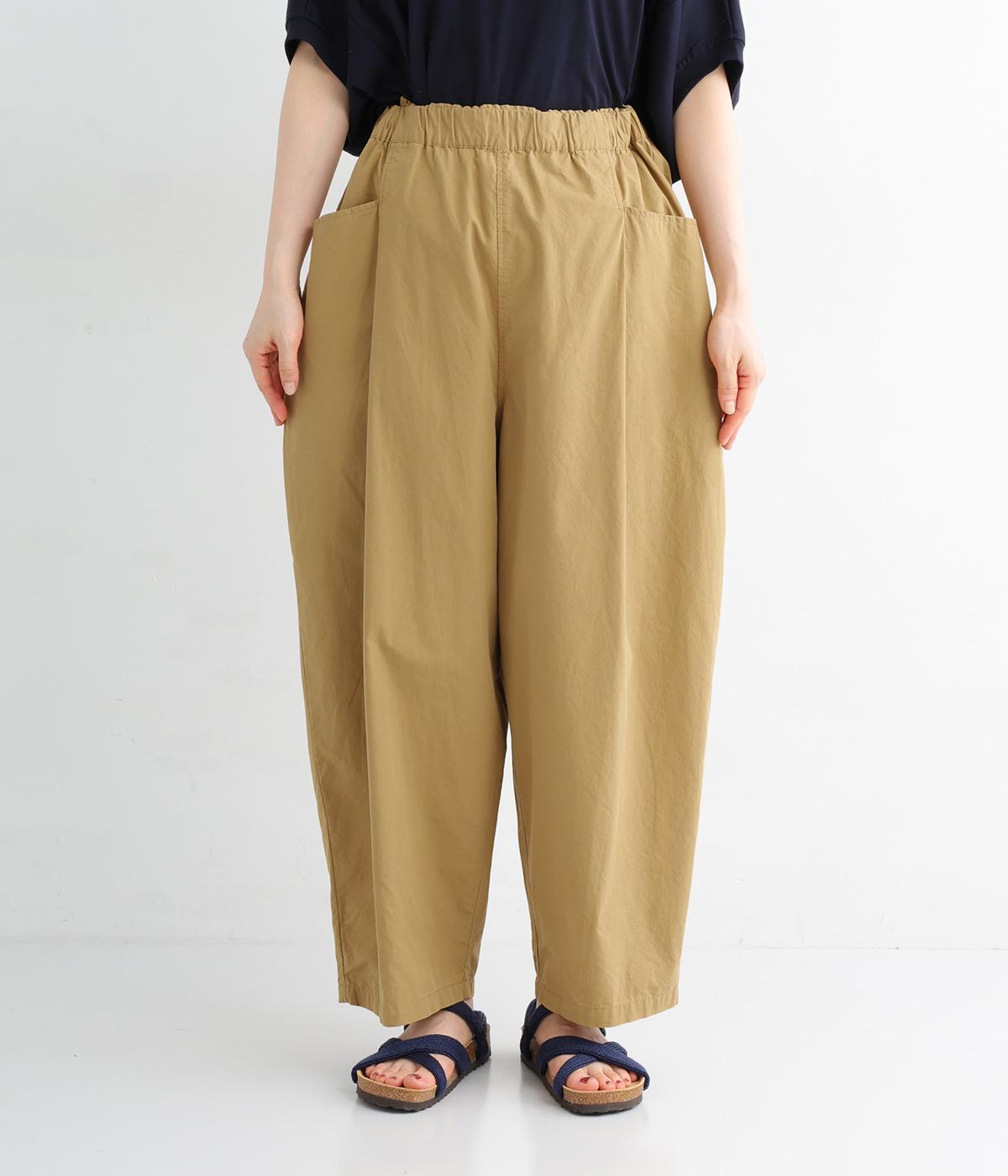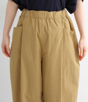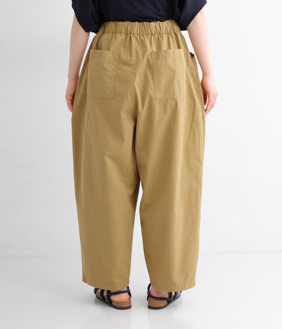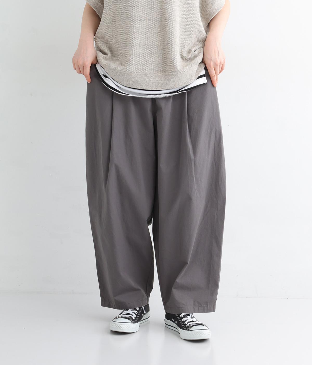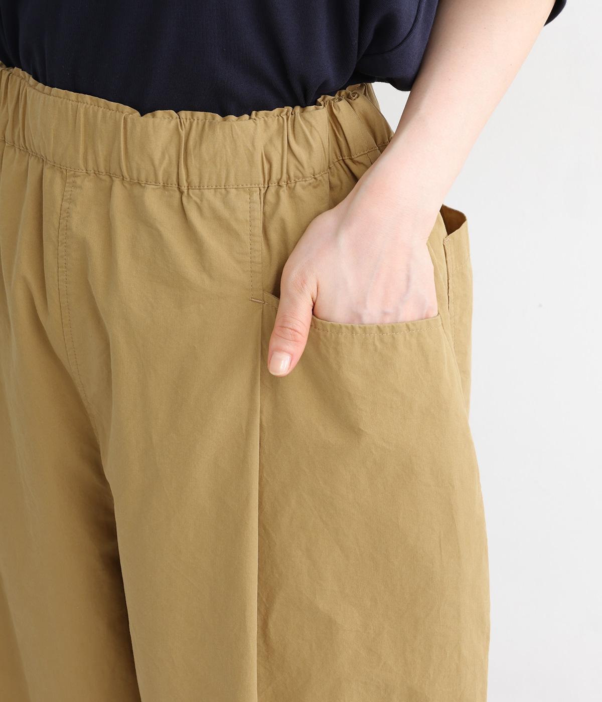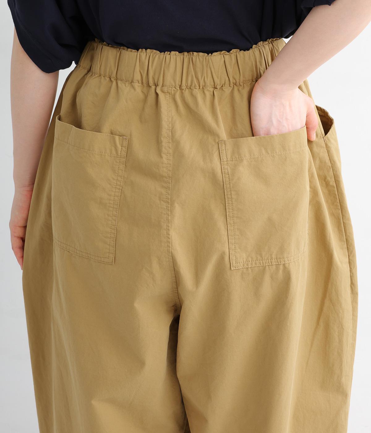 ヒップまわりをゆったりと包み込む、ボリューミーなシルエットがほどよく個性を放ちます。立体感のある、L字型のポケットもポイント。ウエストは総ゴム仕様で、ストレスフリーなはき心地です。
