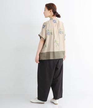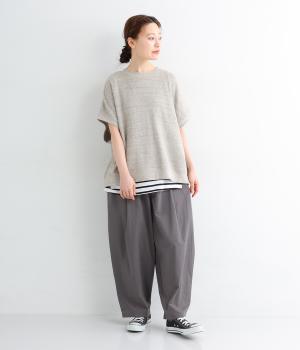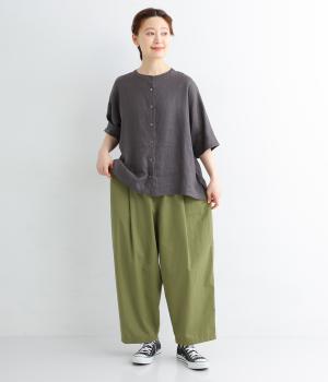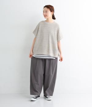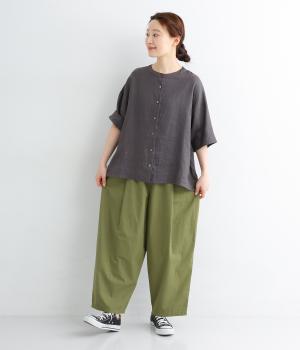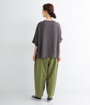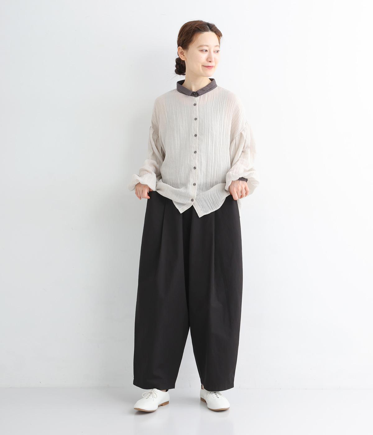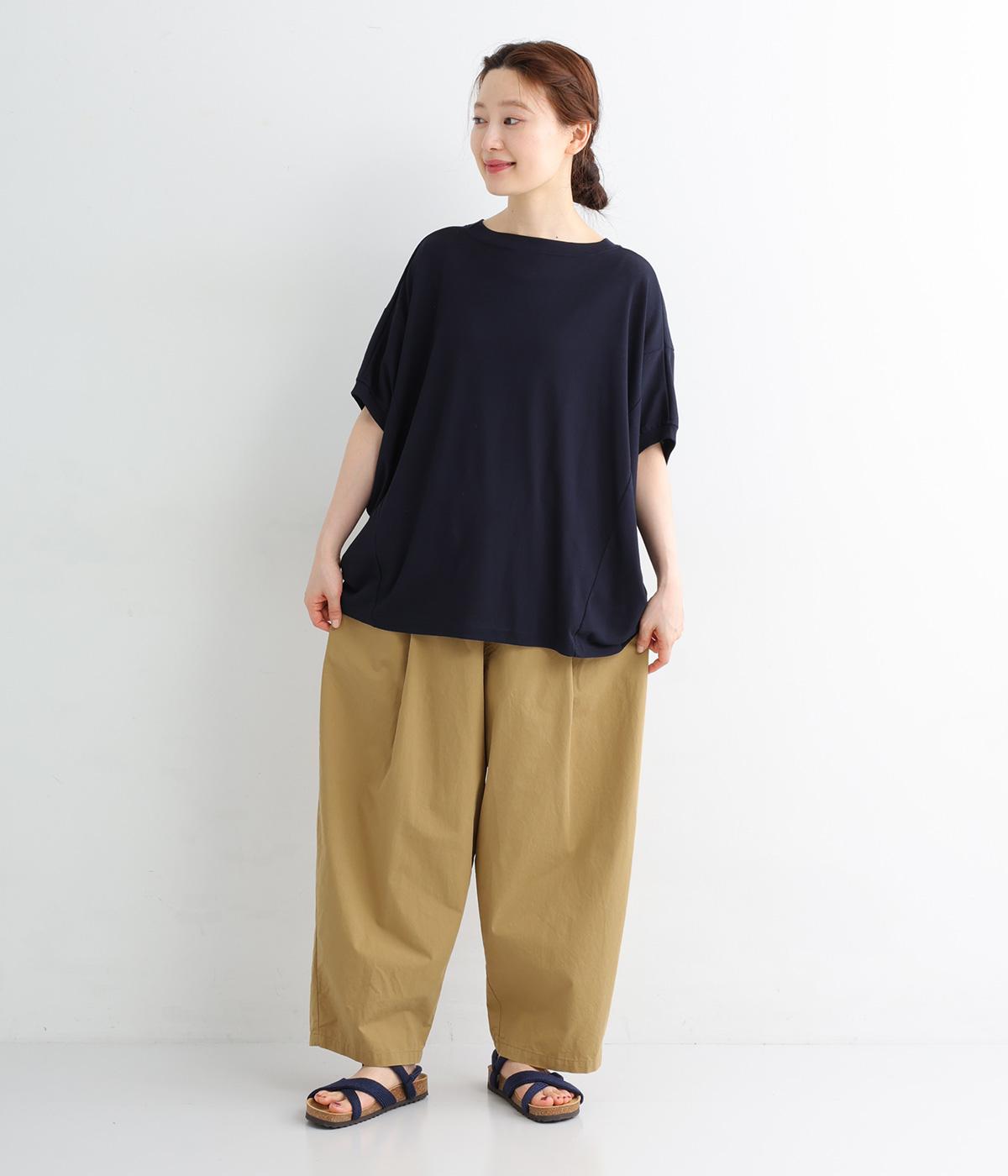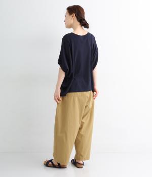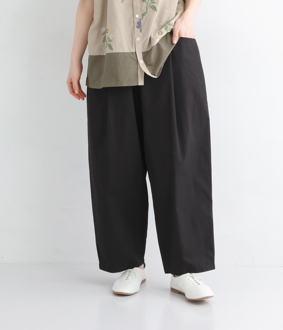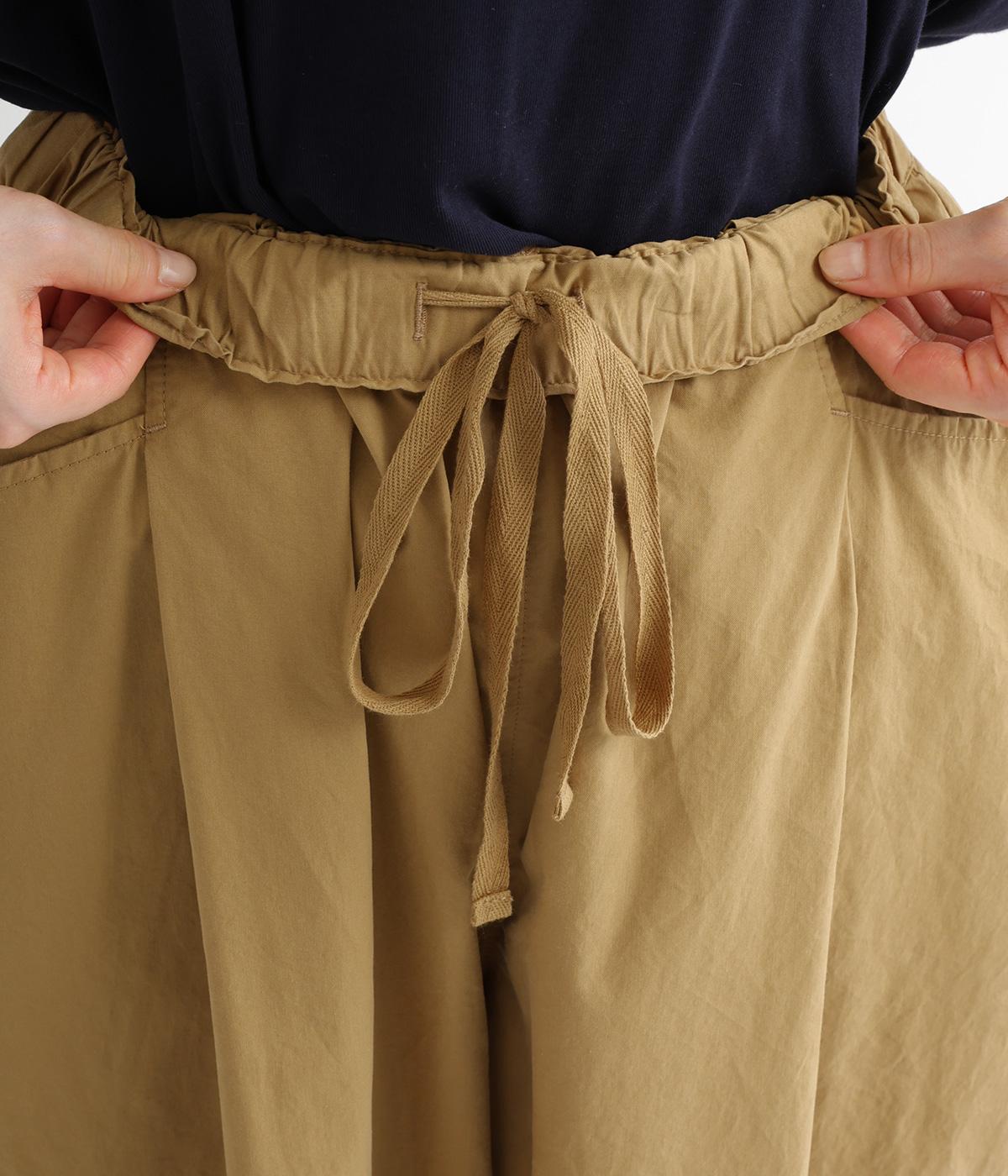 ヒップまわりをゆったりと包み込む、ボリューミーなシルエットがほどよく個性を放ちます。立体感のある、L字型のポケットもポイント。ウエストは総ゴム仕様で、ストレスフリーなはき心地です。