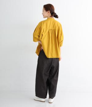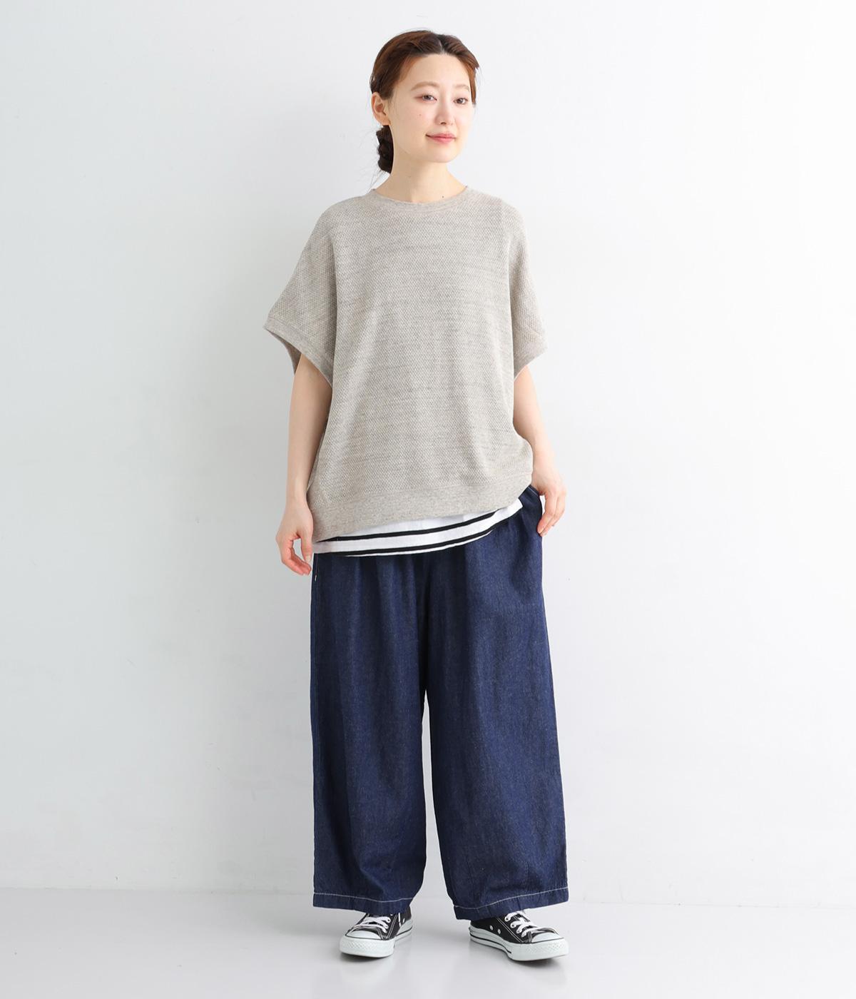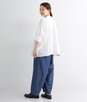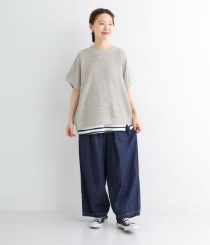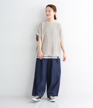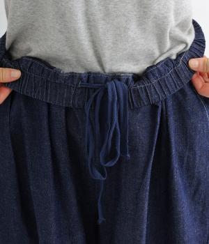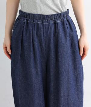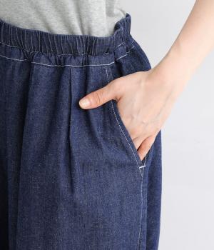 コットンとリネンを使用した、通気性がよく軽やかなデニム素材。ほどよいハリとやわらかさを持ちあわせ、はくほどに肌になじみ風合いが増していくのも魅力です。