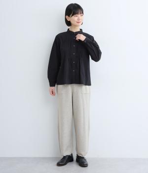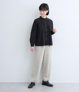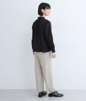 なめらかな曲線が美しいシンプルなカーブパンツです。やわらかな素材を活かしたシルエットは、動きやすさの中にもフェミニンな女性らしさを演出します。ウエストラインは伸縮性のある素材と紐で調節ができ、イージーに着まわせる一着です。