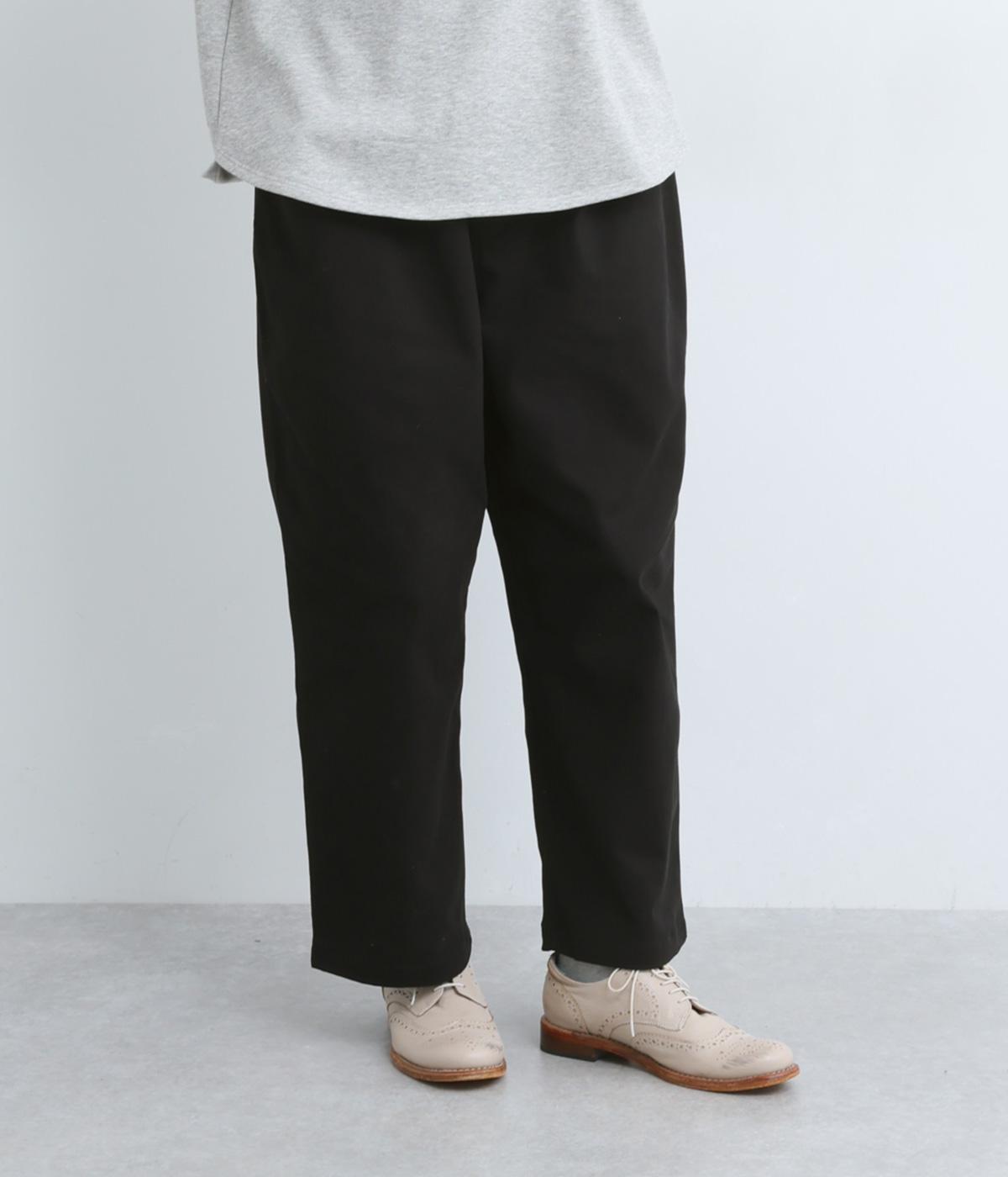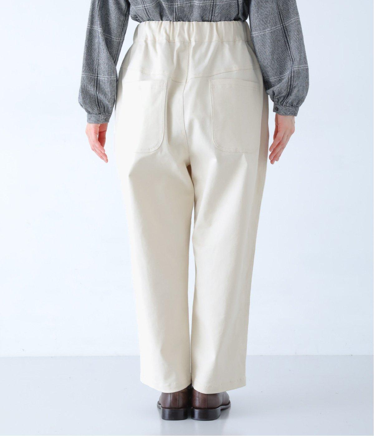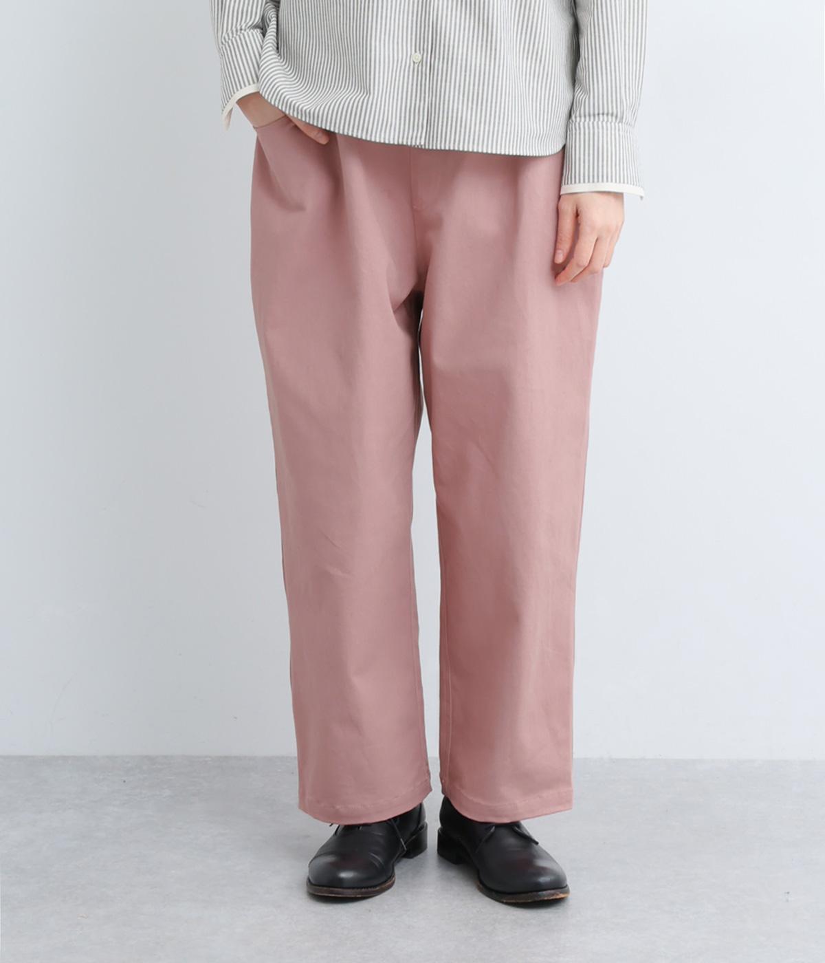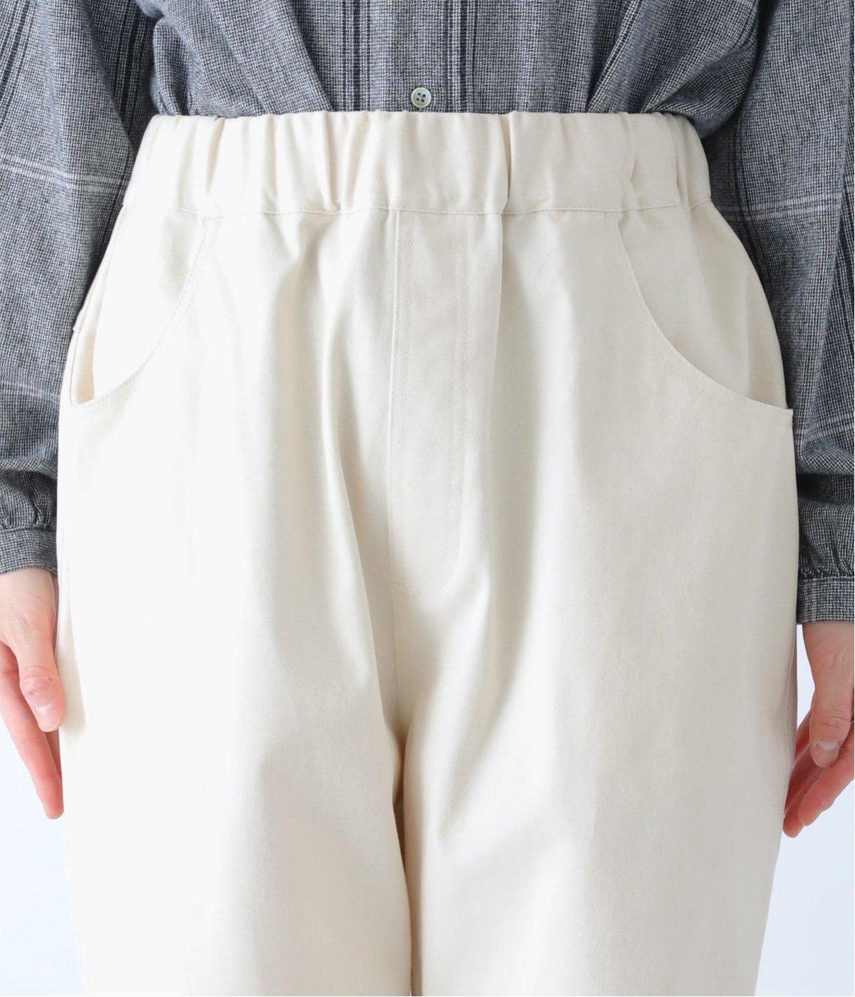裾にむかって緩やかに絞った、バランスのとりやすいテーパードシルエット。ウエストは幅広の総ゴム入り、全体にゆったりとしたつくりで、ストレスフリーのはき心地を叶えてくれます。ファスナー風のステッチつきで、動きやすさとすっきりとした見た目を両立。