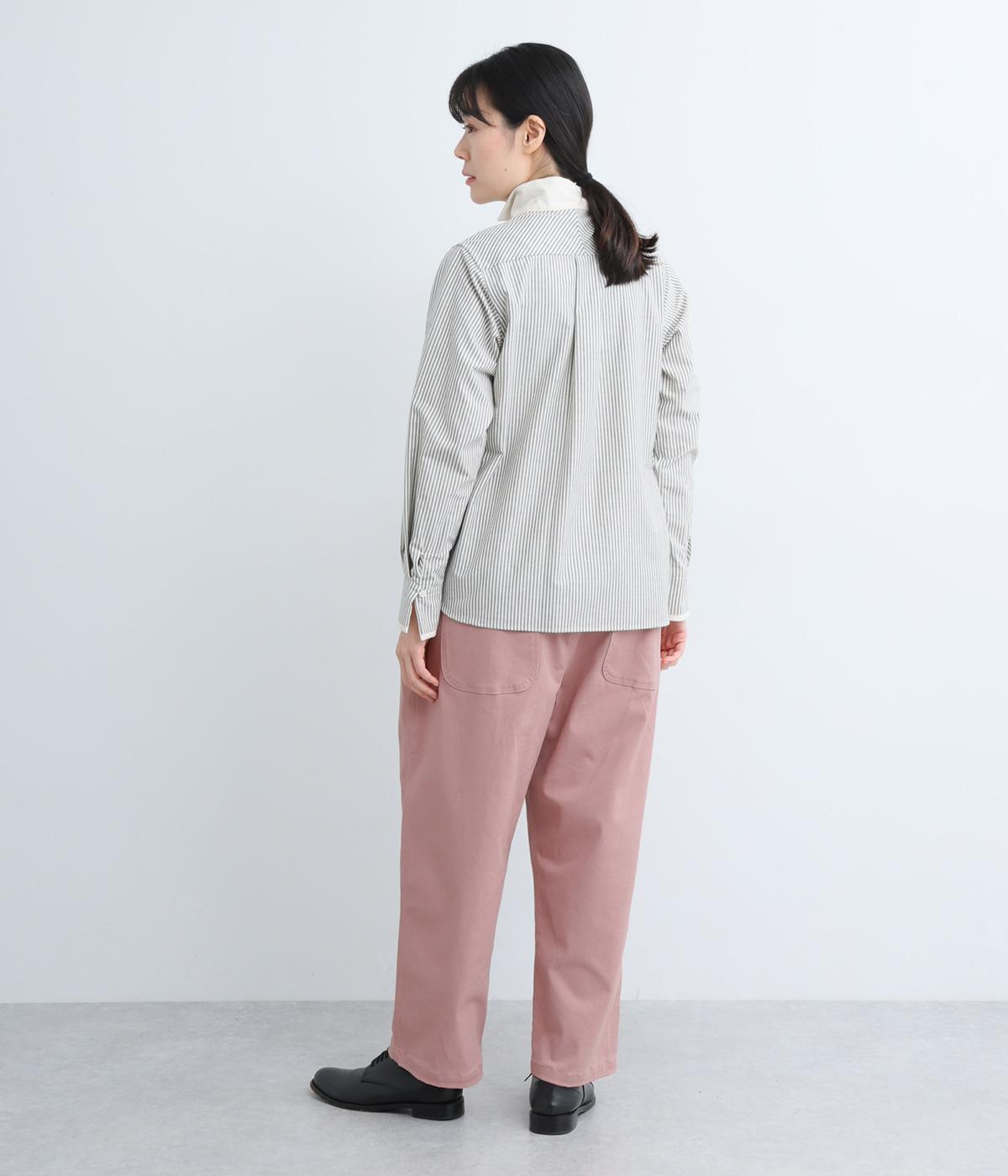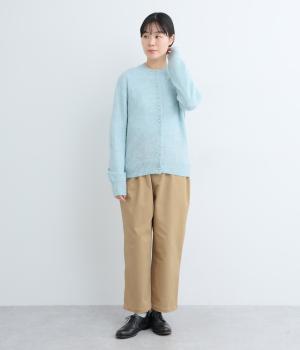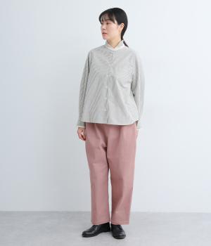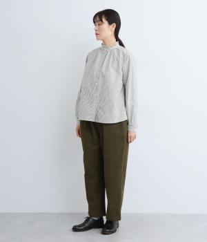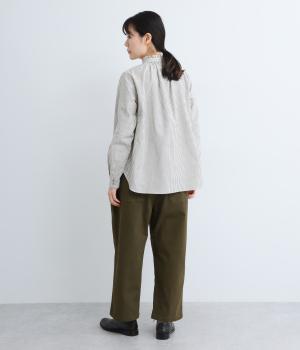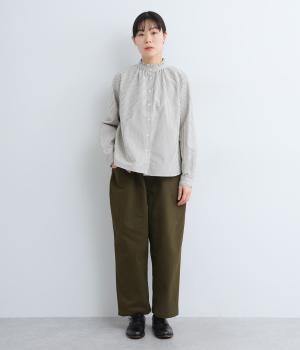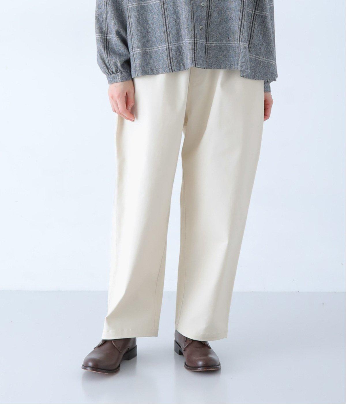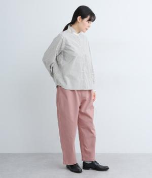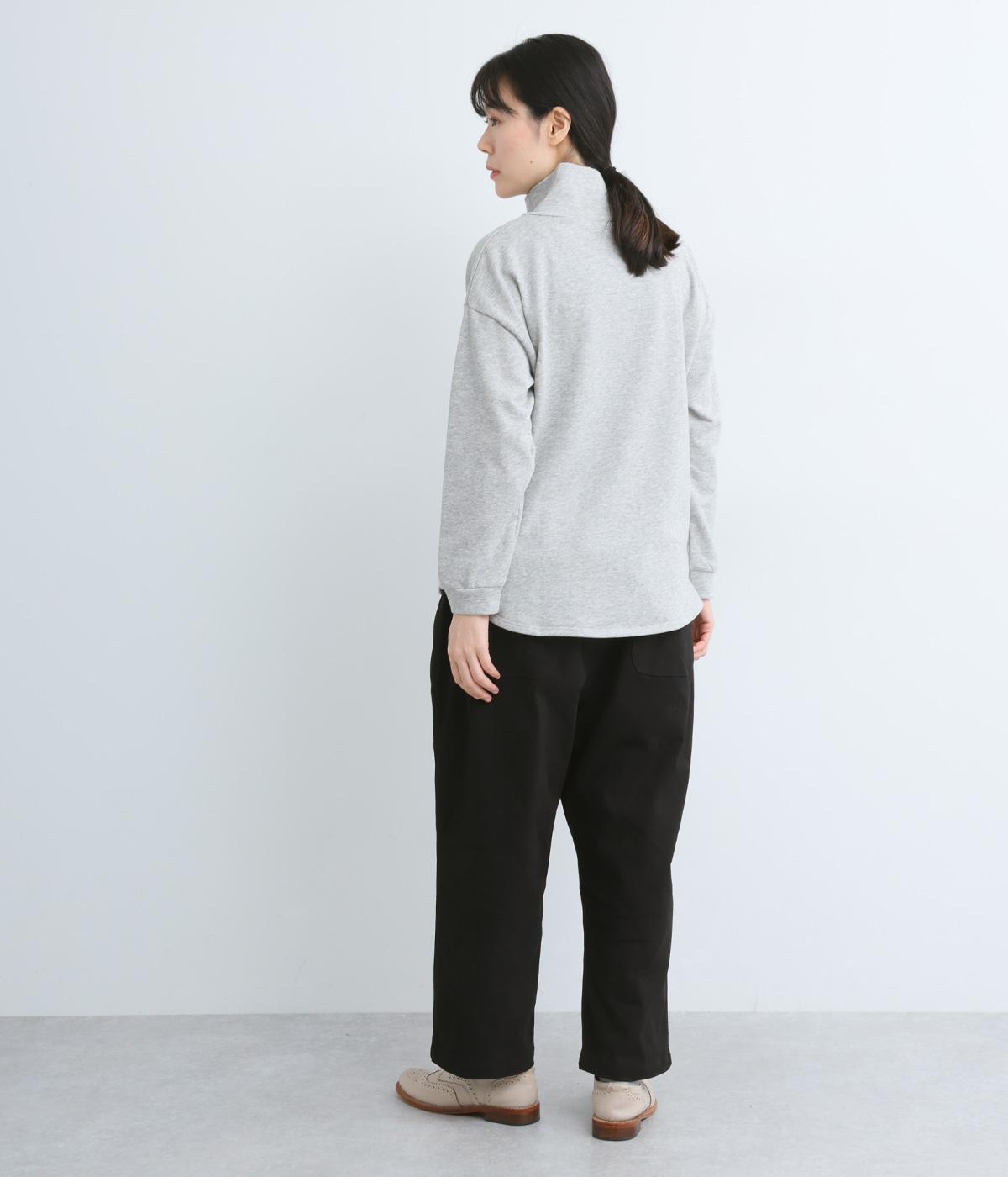裾にむかって緩やかに絞った、バランスのとりやすいテーパードシルエット。ウエストは幅広の総ゴム入り、全体にゆったりとしたつくりで、ストレスフリーのはき心地を叶えてくれます。ファスナー風のステッチつきで、動きやすさとすっきりとした見た目を両立。