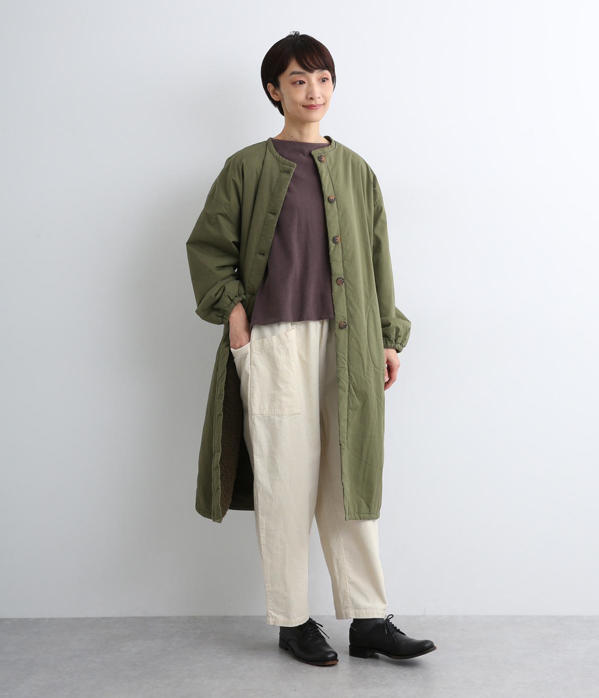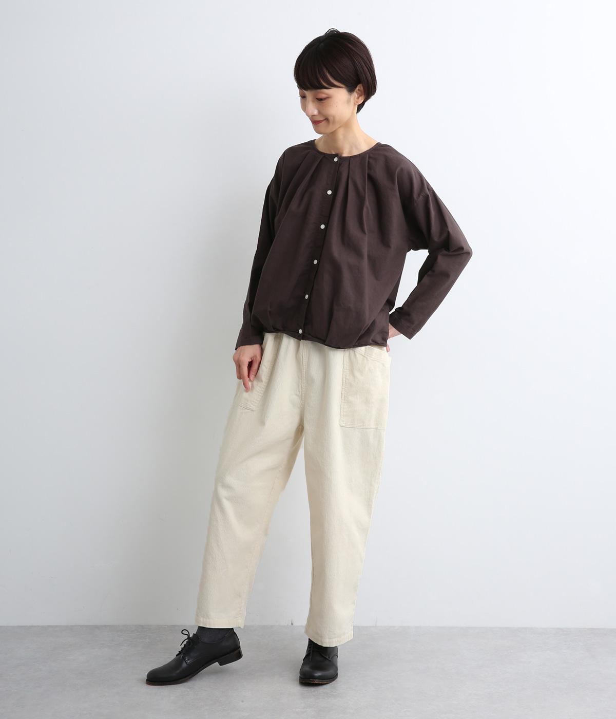縦方向の畝と起毛感が特徴のあたたかみのあるコーデュロイ生地を、落ち着きのあるカラーリングで仕上げました。ほどよいハリ感がシルエットをきれいにキープしてくれます。