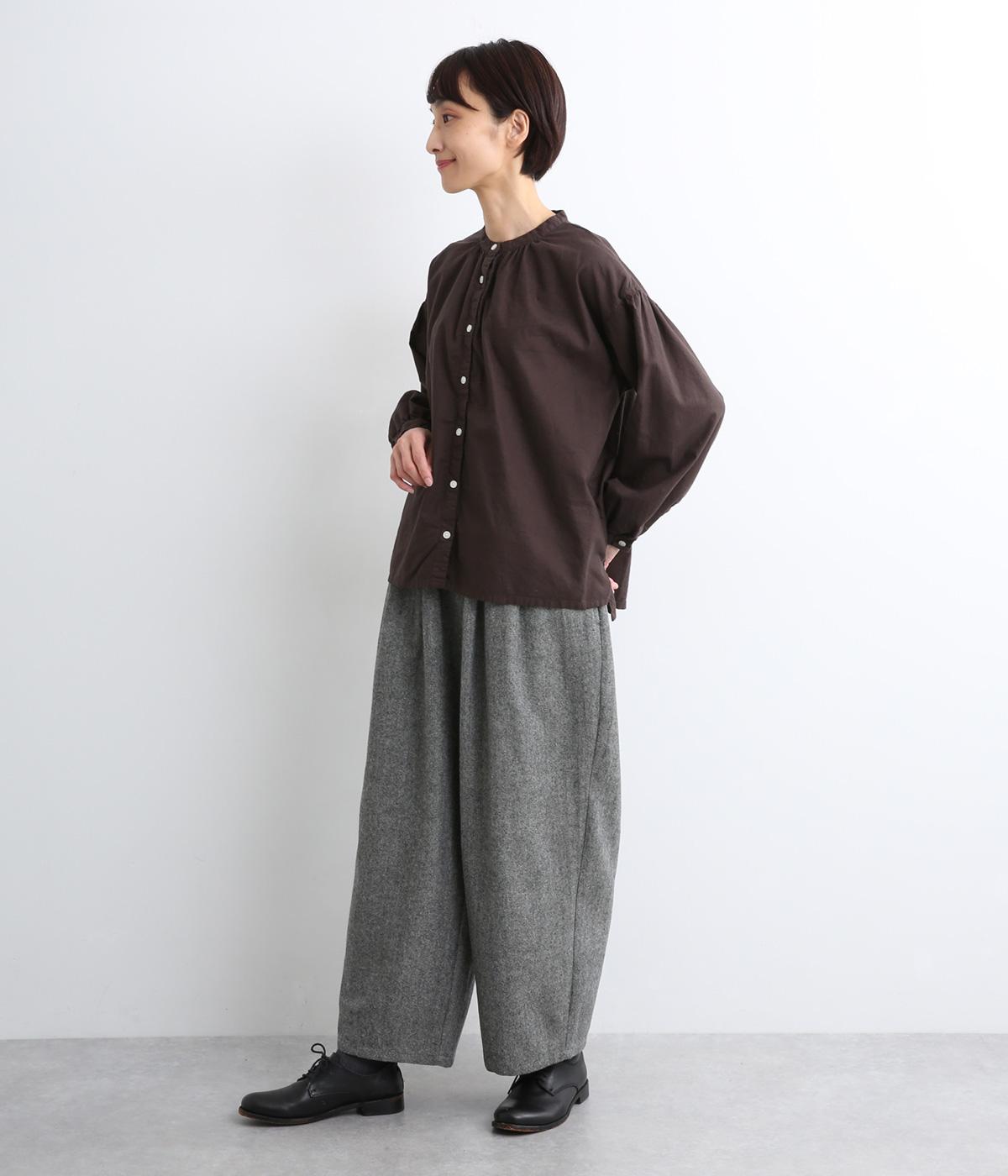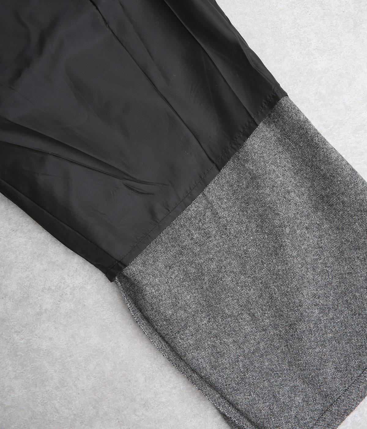 ウールを混紡して起毛感のあるあたたかな生地に仕上げました。適度なハリと柔らかさを持ちあわせた絶妙な風合いと、ツイードならではの素朴で上品な見た目が魅力。さらりとした裏地つきです。