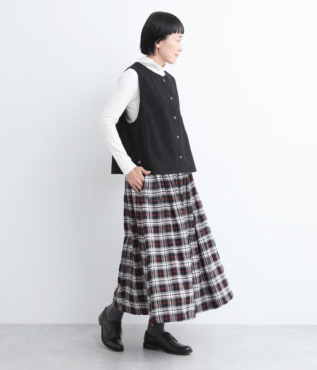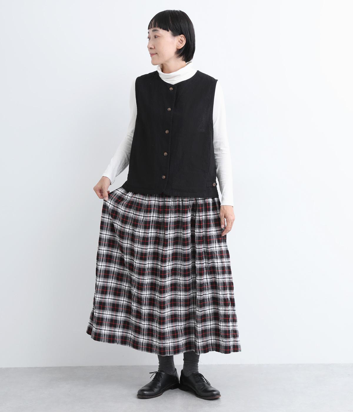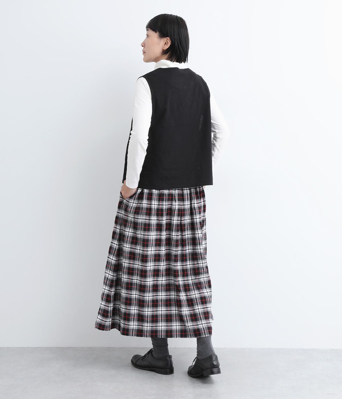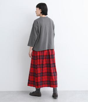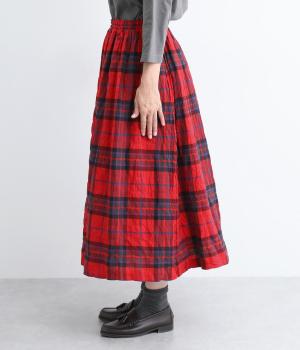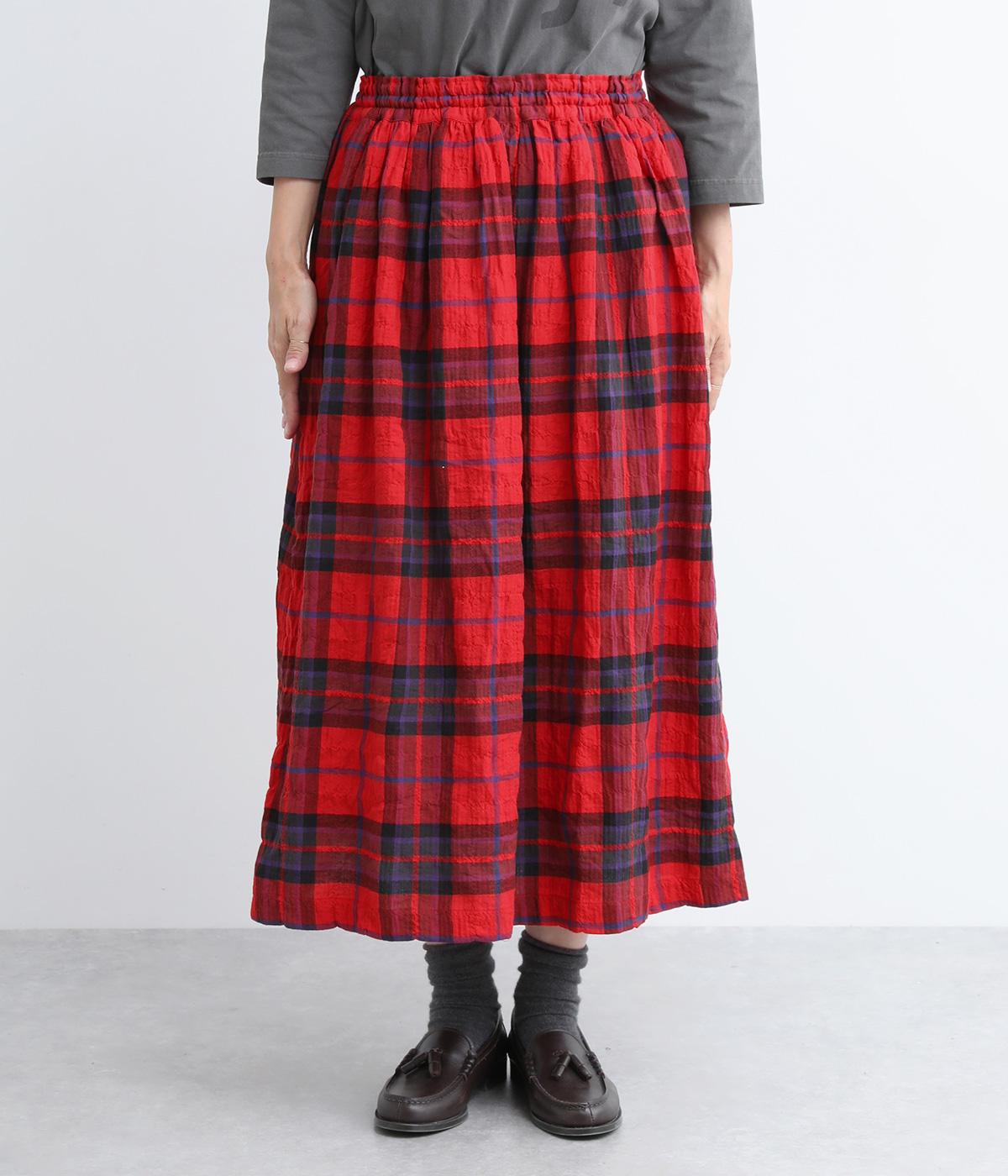 ウエストギャザーで動きのあるふんわりとしたシルエットに仕立てました。広がりすぎないロング丈で大人のカジュアルスタイルのワンポイントに活躍。ウエスト総ゴム仕様ではき心地も良く、内紐で微調整も可能です。