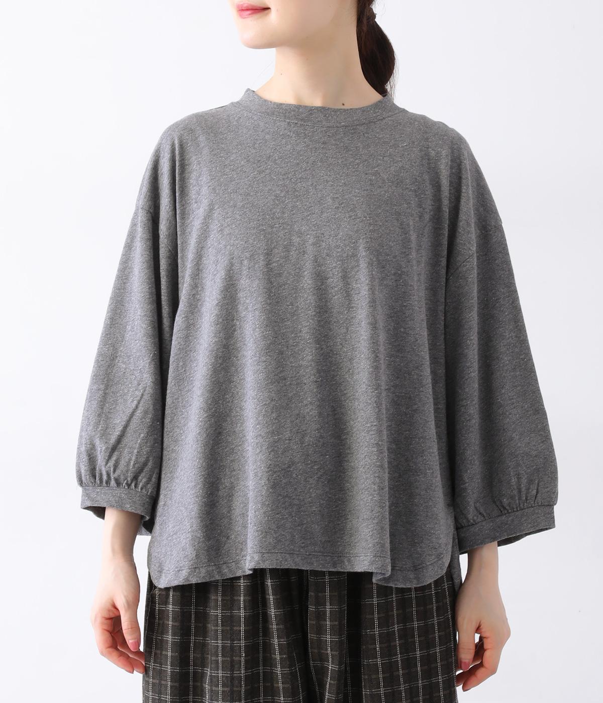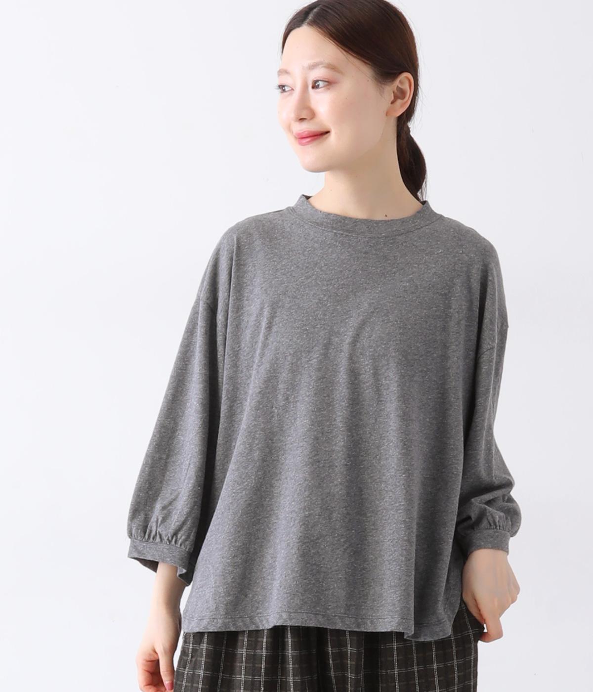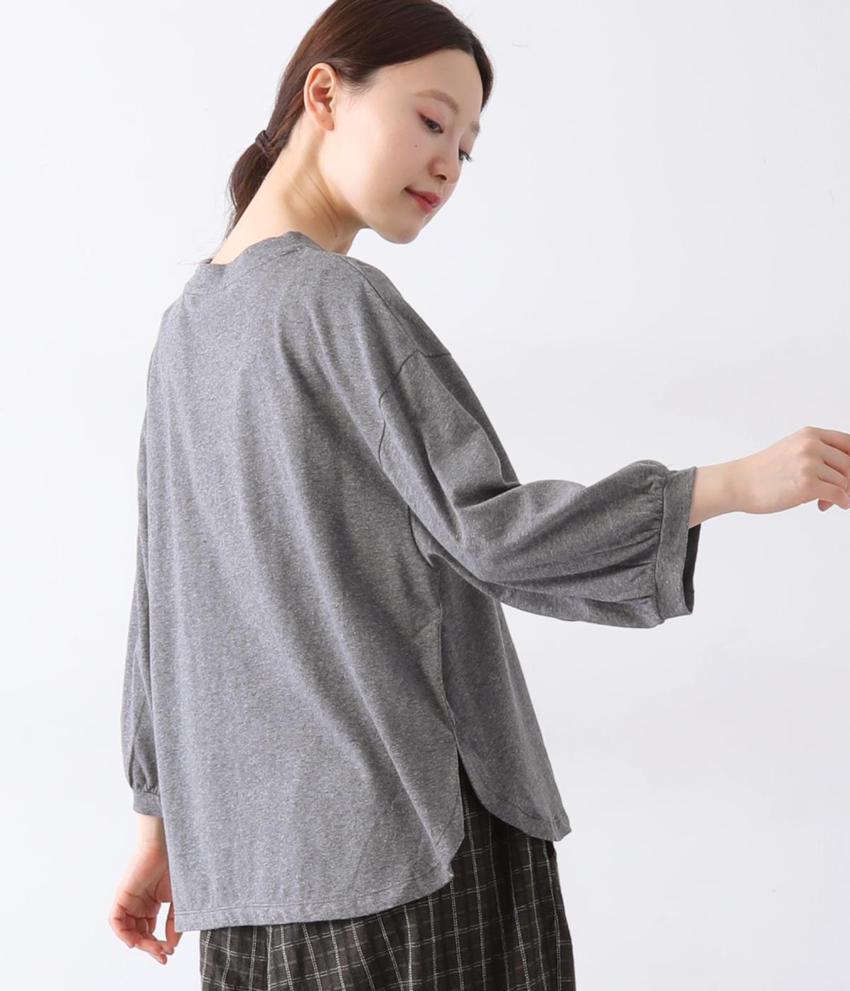 袖口に細かくギャザーを入れてふくらませたパフスリーブが愛らしいプルオーバー。身幅もほどよくゆとりを持たせ、リラクシーな着心地です。サイドに抜け感を与えるラウンドヘムで横姿も美しく。合わせるボトムスを選ばない汎用性の高さと、ほどよいデザイン性を兼ね備えたうれしい一枚です。