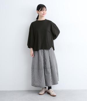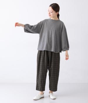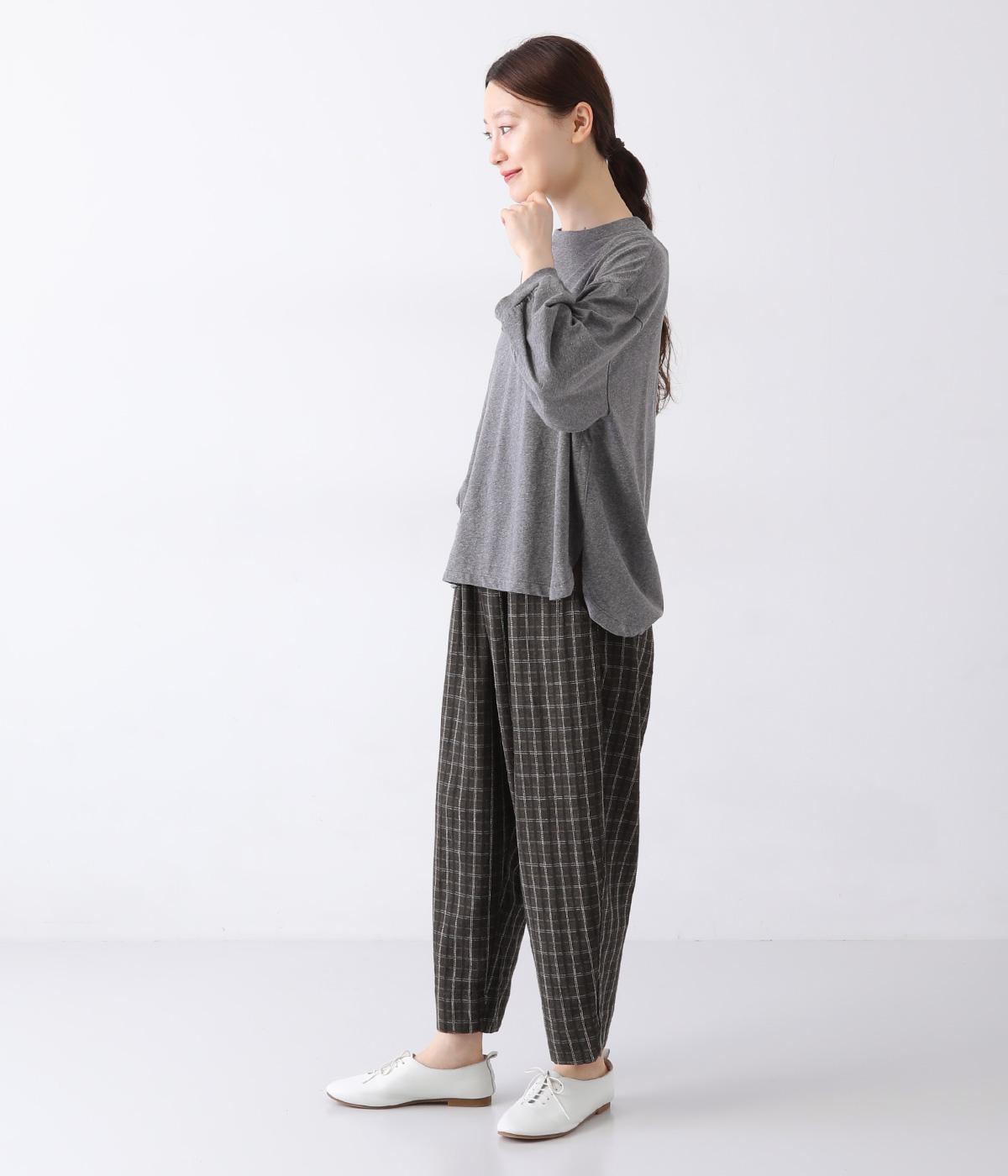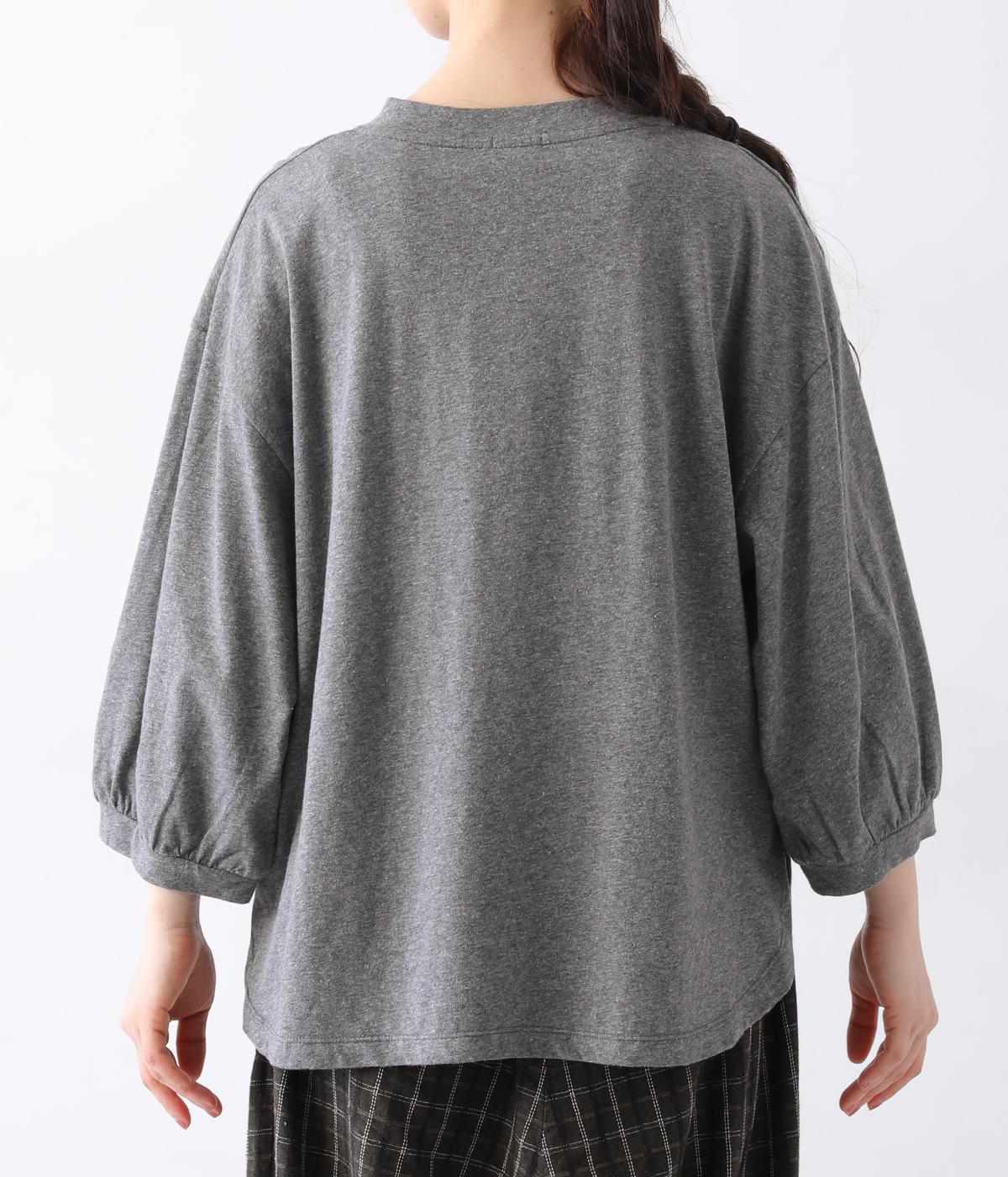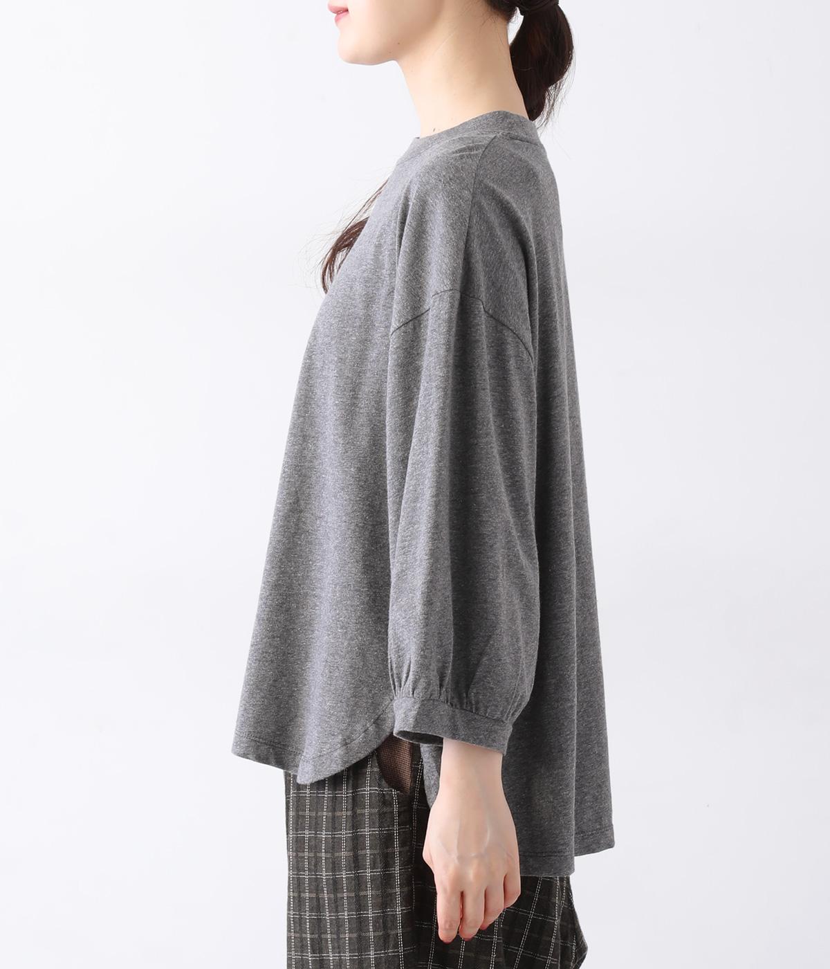袖口に細かくギャザーを入れてふくらませたパフスリーブが愛らしいプルオーバー。身幅もほどよくゆとりを持たせ、リラクシーな着心地です。サイドに抜け感を与えるラウンドヘムで横姿も美しく。合わせるボトムスを選ばない汎用性の高さと、ほどよいデザイン性を兼ね備えたうれしい一枚です。