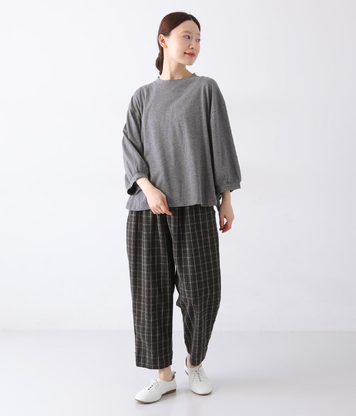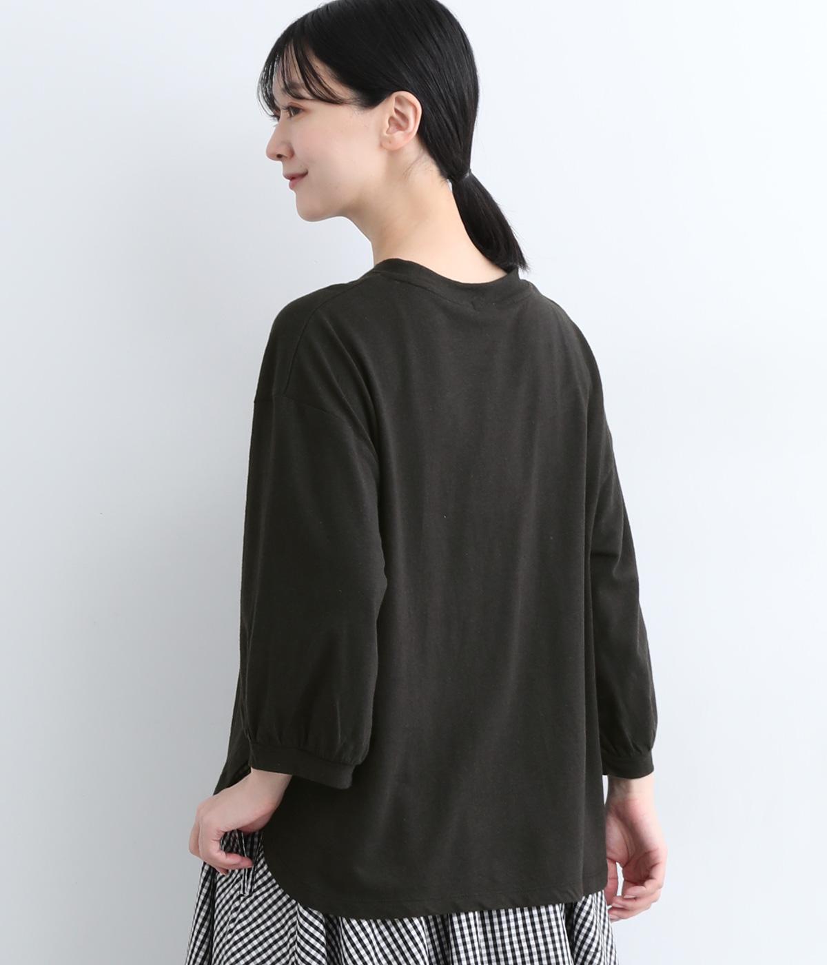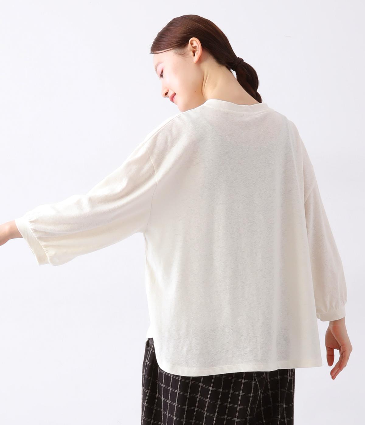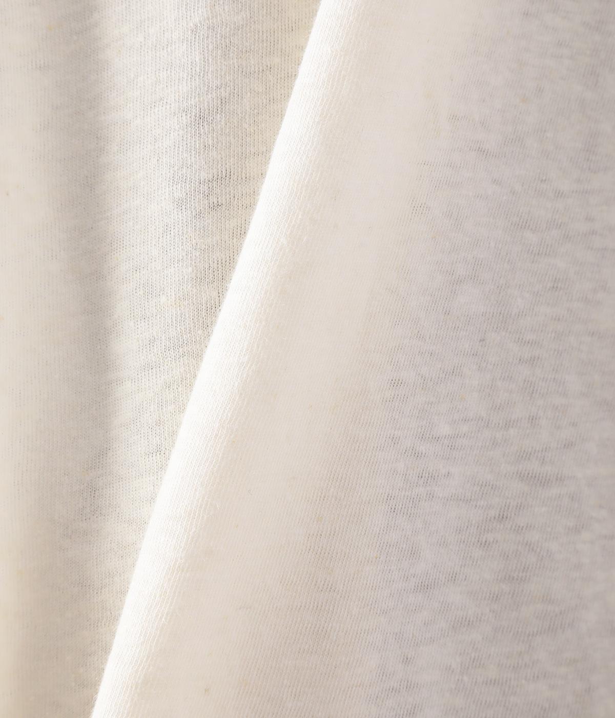 リネンのナチュラルな風合いと清涼感、コットンの肌に心地よくなじむやわらかさを持ちあわせた天竺生地。一枚着はもちろん、やや薄手なので半袖トップスとのレイヤードなどインナーとしても活躍します。