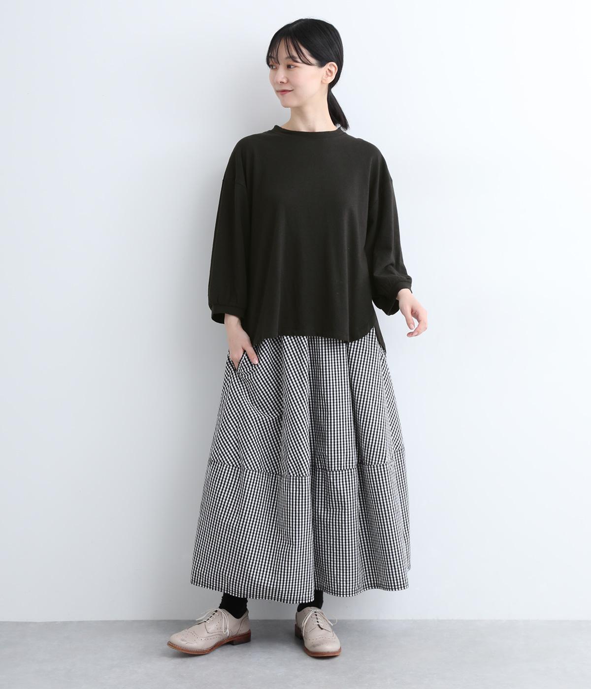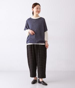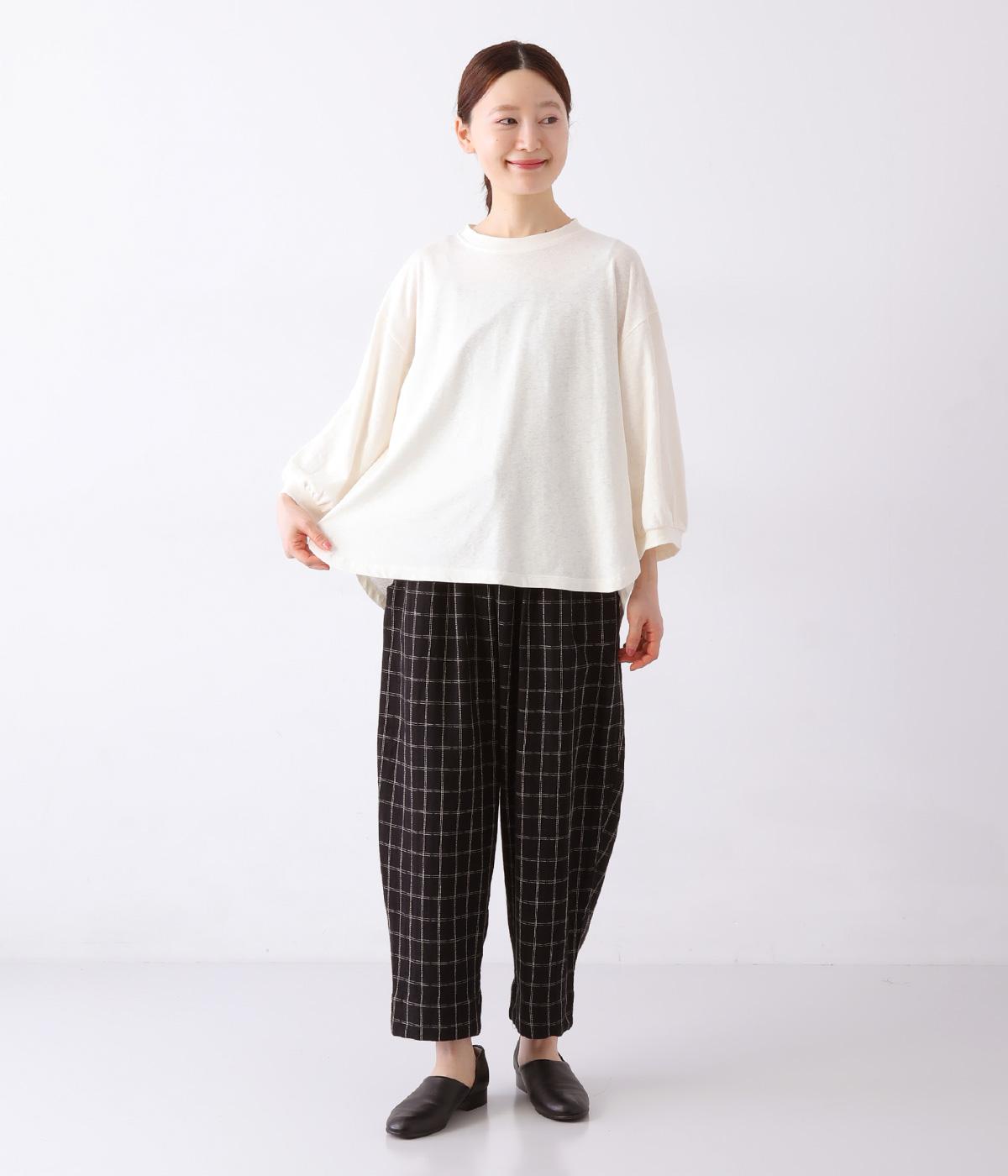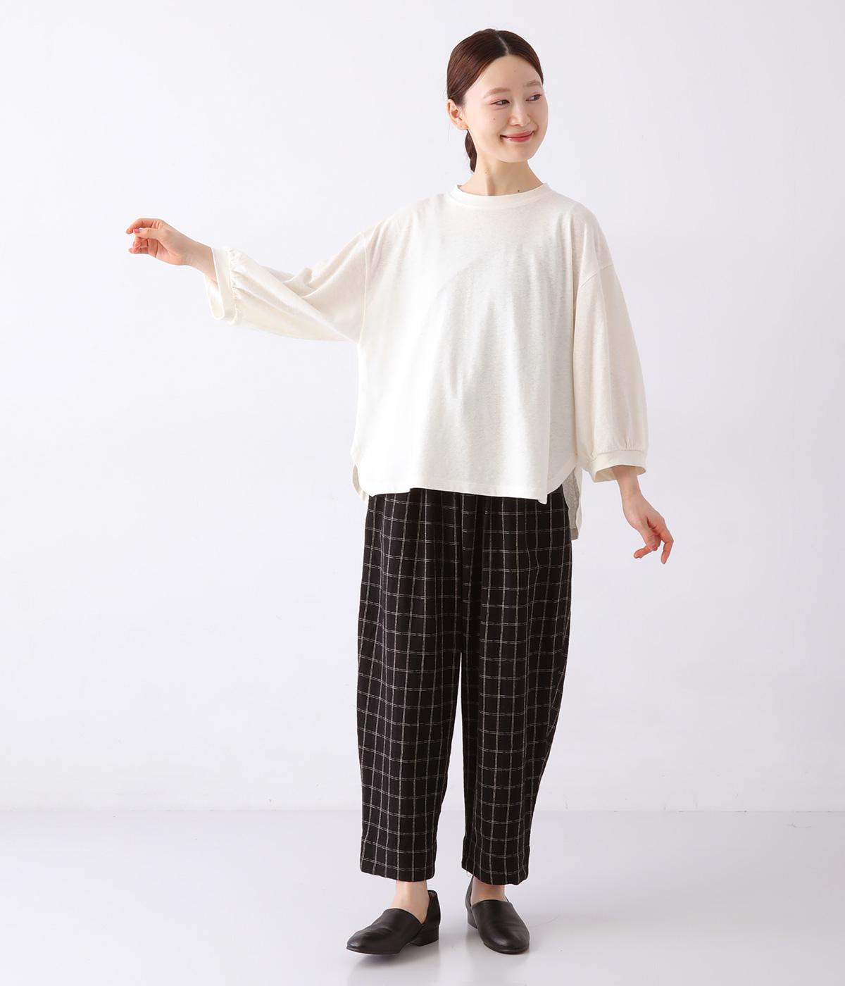 リネンのナチュラルな風合いと清涼感、コットンの肌に心地よくなじむやわらかさを持ちあわせた天竺生地。一枚着はもちろん、やや薄手なので半袖トップスとのレイヤードなどインナーとしても活躍します。