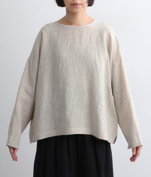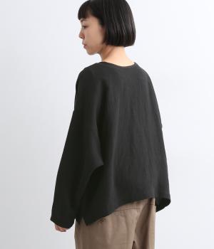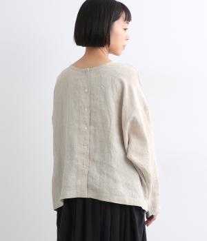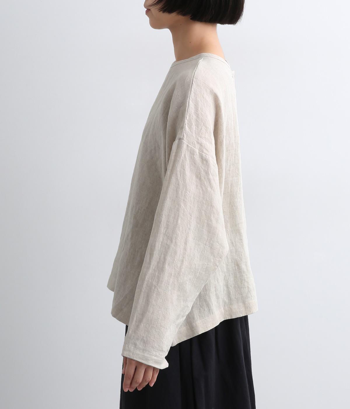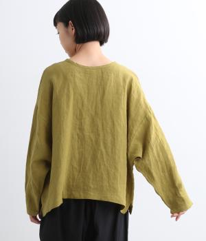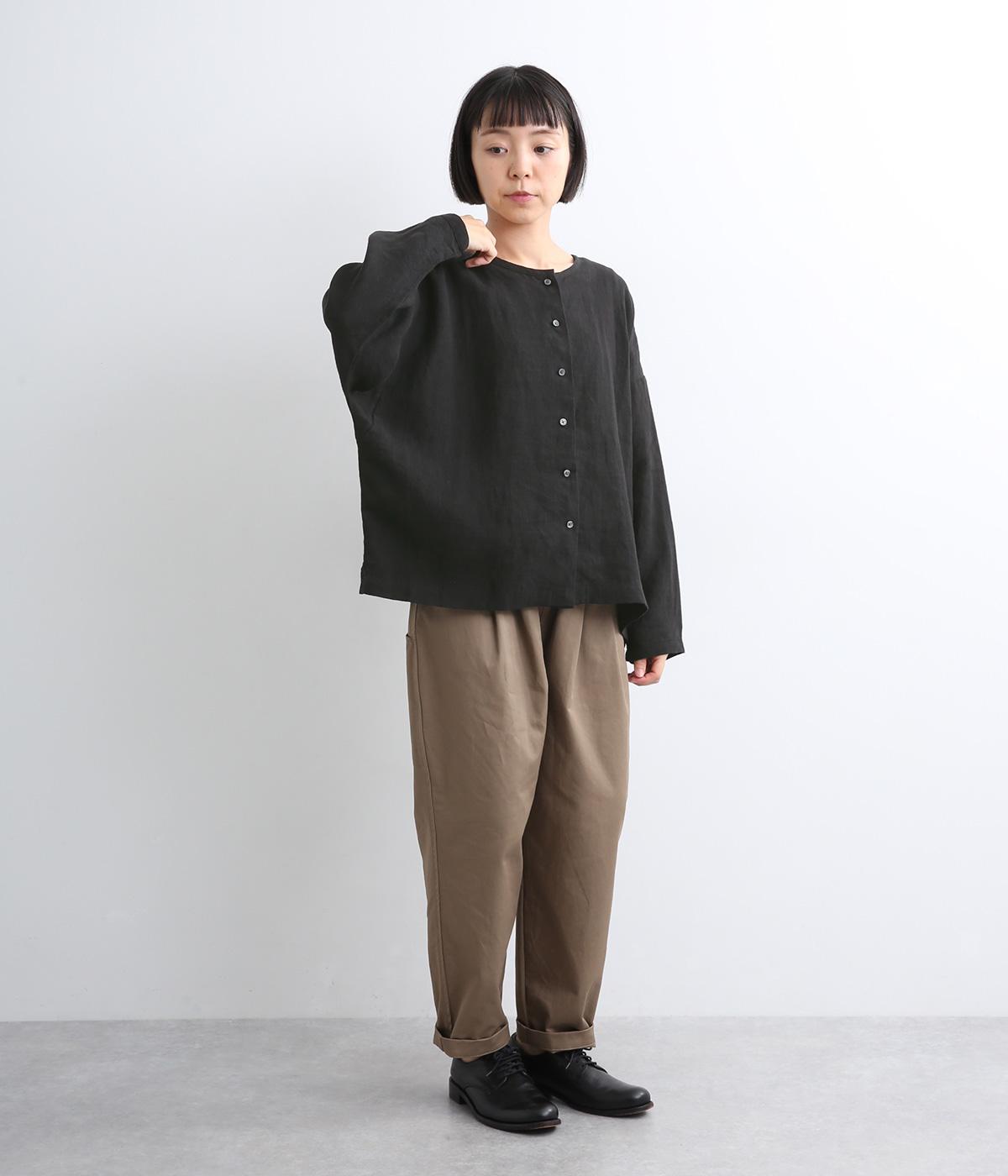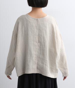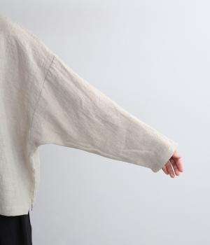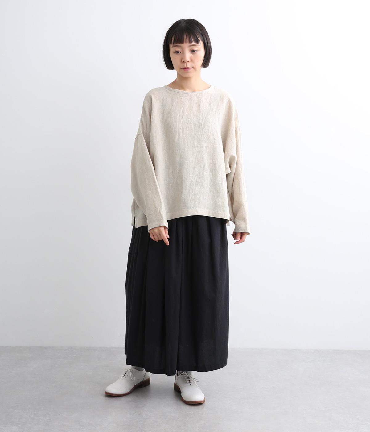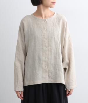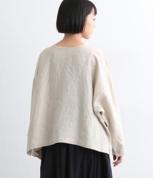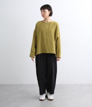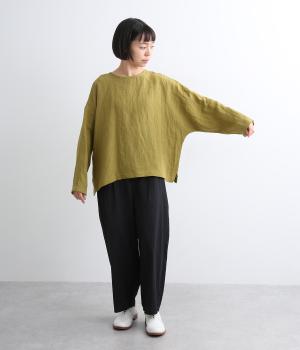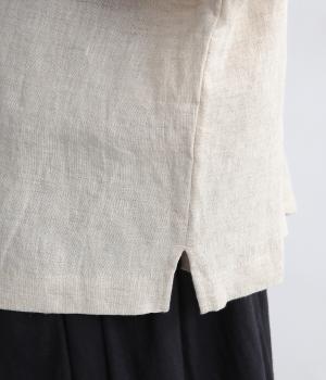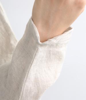 自然なシワ感がよりナチュラルな雰囲気を豊かにする、薄手のリネン生地を使用。アイロンいらずで風合いがたのしめ、肌離れもよくさらっとした気持ちのいい着心地です。