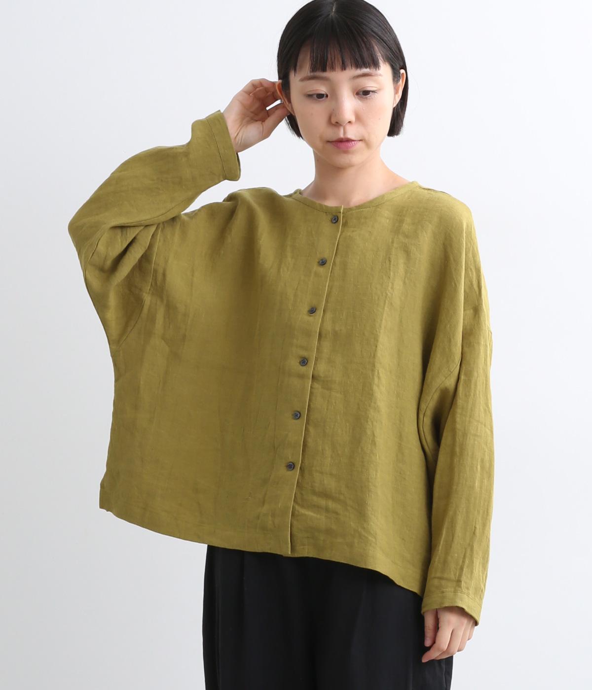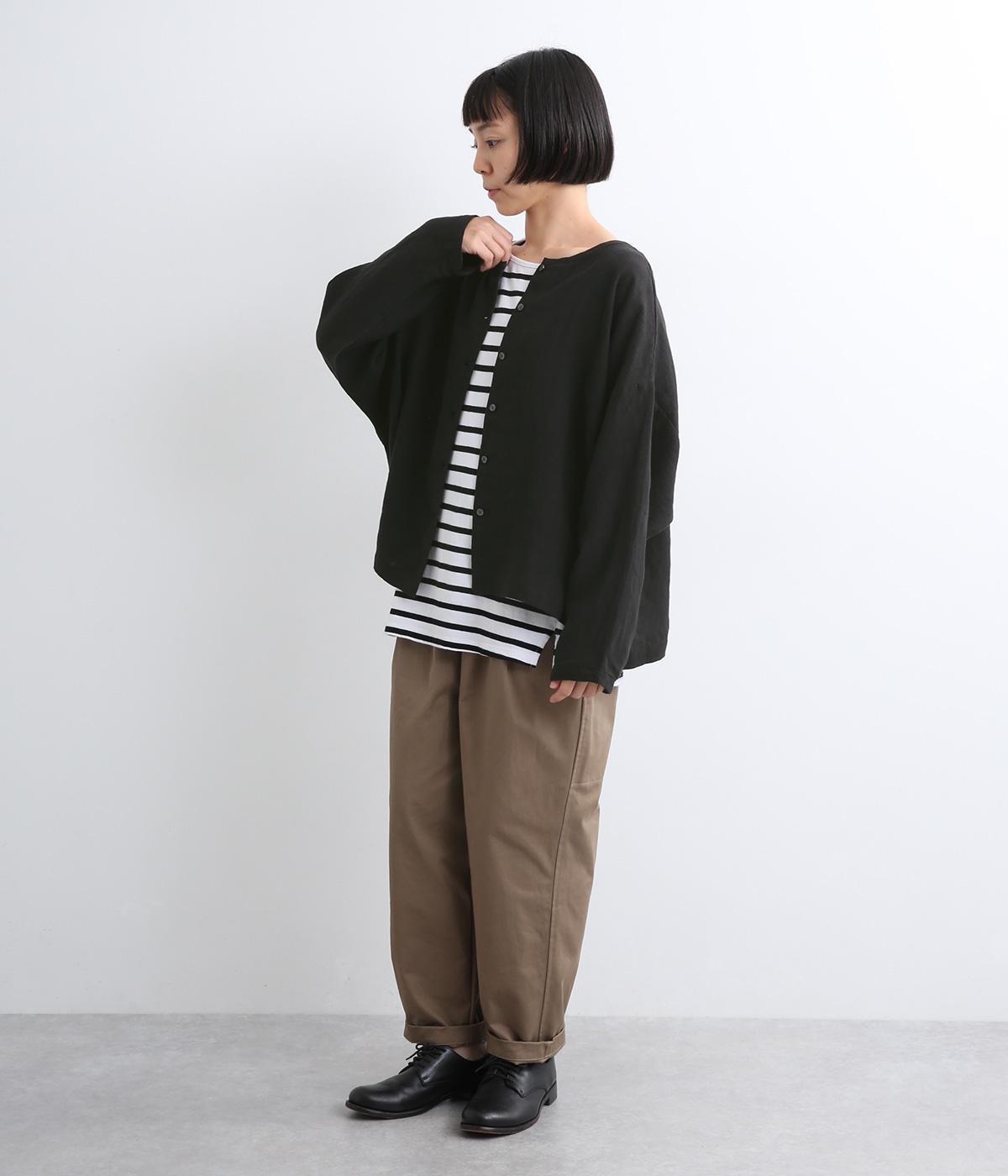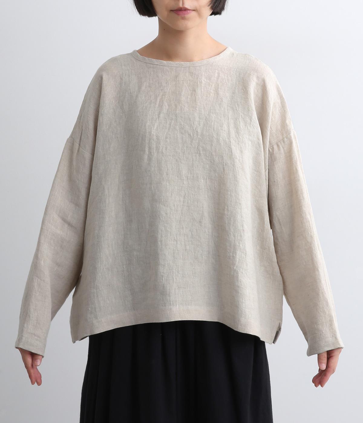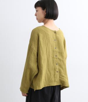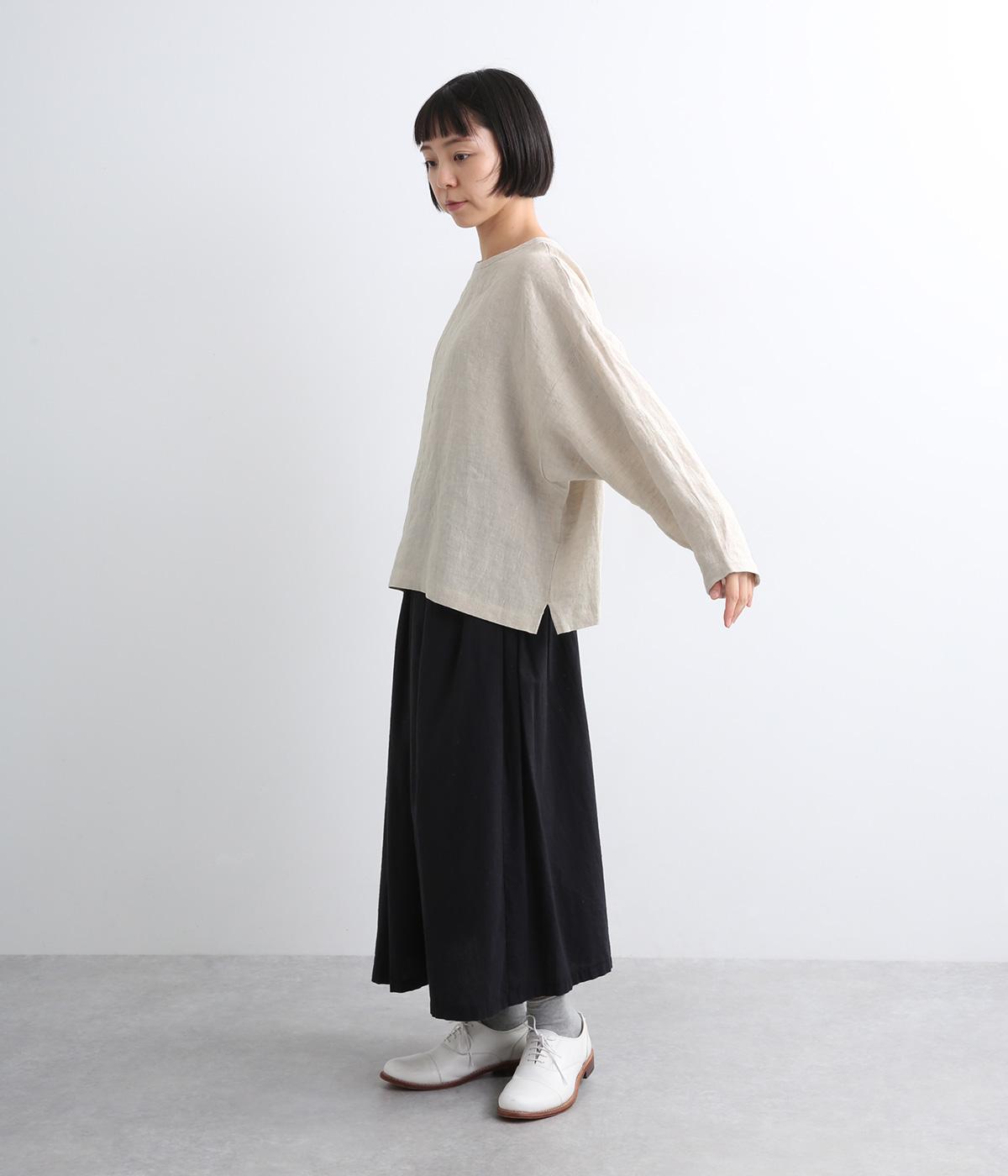 自然なシワ感がよりナチュラルな雰囲気を豊かにする、薄手のリネン生地を使用。アイロンいらずで風合いがたのしめ、肌離れもよくさらっとした気持ちのいい着心地です。