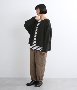 ドルマンタイプのゆったりとしたシルエットが特徴で、リラックス感のある着こなしがたのしめるプルオーバー。前後2way仕様で、前あきの羽織りにするなど着こなしの幅も広がります。サイドに少しスリットを入れているので横姿も◎。