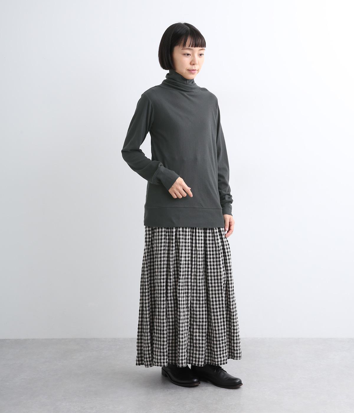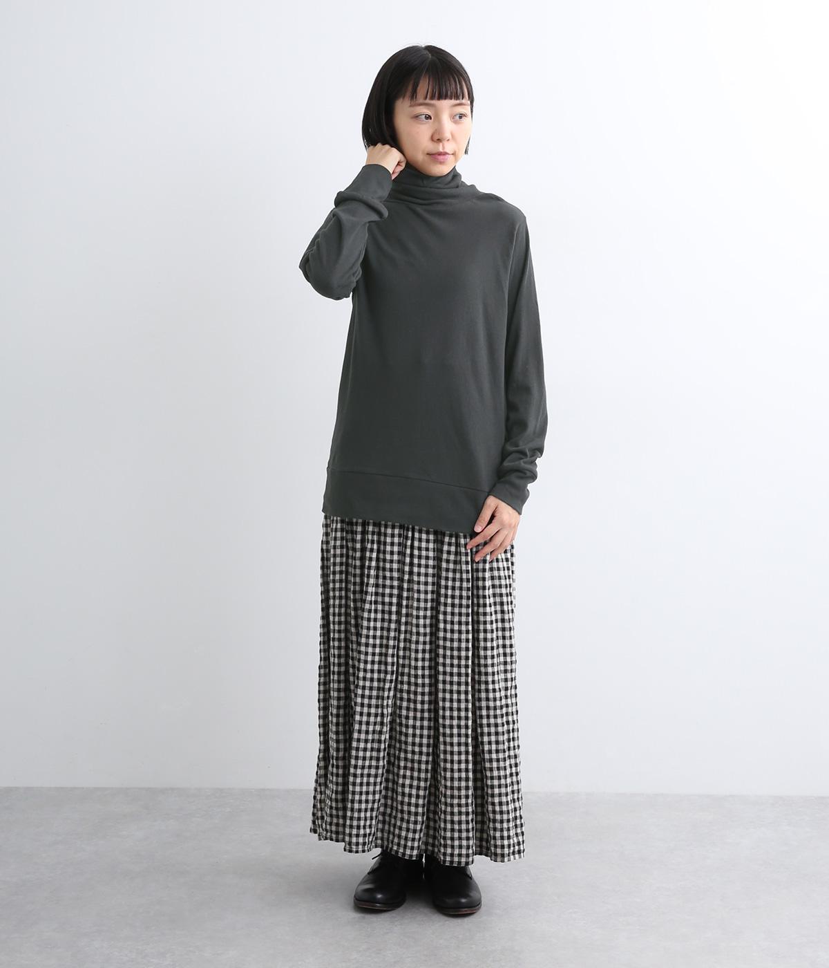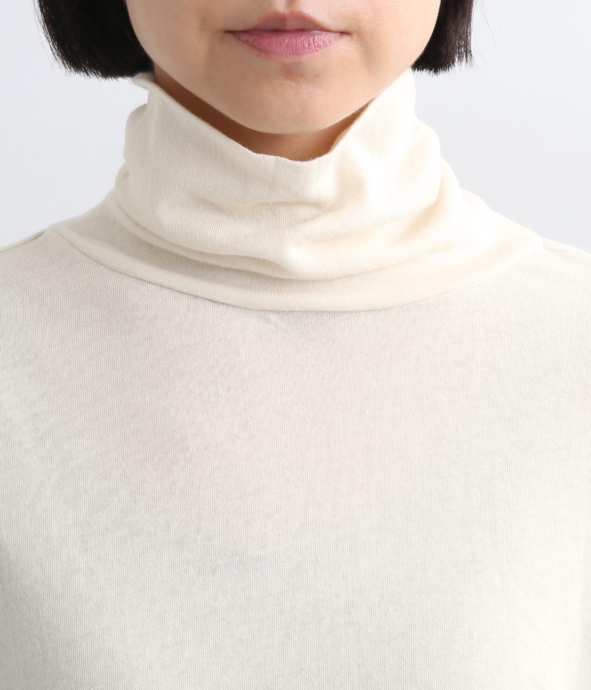 ふわりとやわらかな肌触りが極上の着心地を生む、甘く編んだコットンガーゼ天竺を使用。適度な肉感があり、使い勝手のいい薄手なのでインナーにするなど着まわしのきく生地感です。