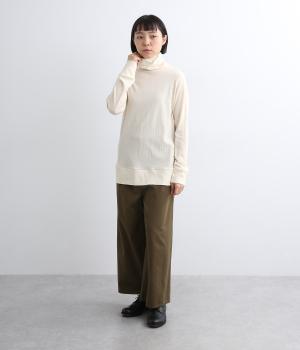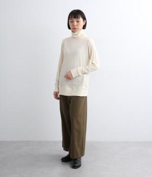 首元をしっかりカバーしてくれるあたたかみのあるタートルネックプルオーバー。すっきりとしたベーシックなデザインで、メインからインナーまで着まわしがききます。袖と裾部分は二重仕立てでメリハリをつけ、お腹まわりを覆う長めの着丈で冷え防止にも◎。