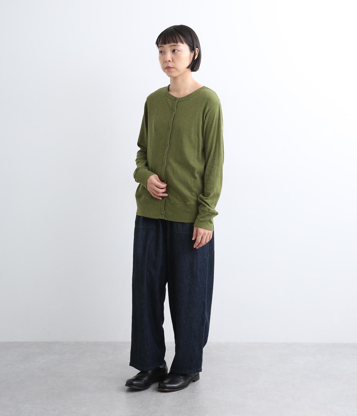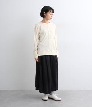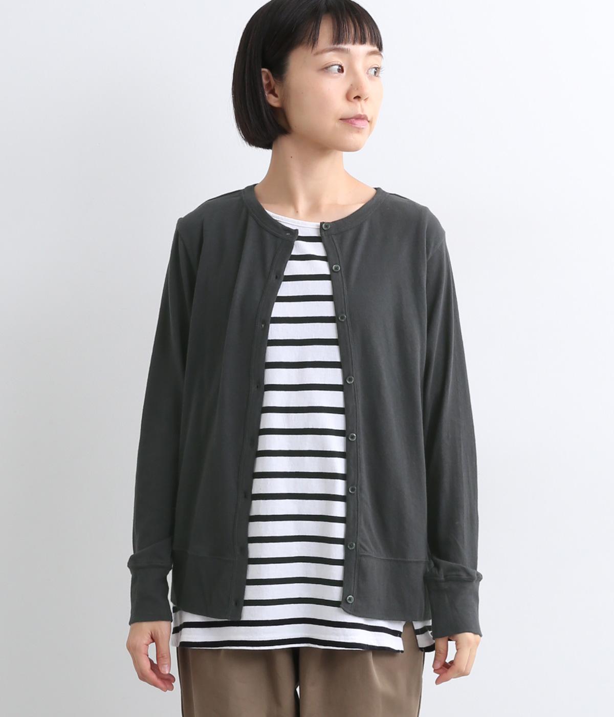 シンプルなデザインでさまざまなコーディネートに合わせやすく、さっと気軽に羽織りやすいカーディガン。シワも気になりにくい素材で軽量のため持ち歩きしやすく、空調対策や体温調節にも最適です。袖と裾は長めの二枚仕立てでポイントに。