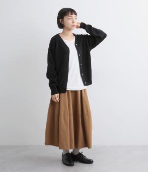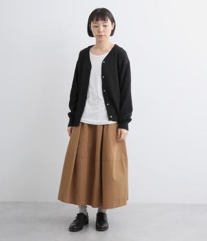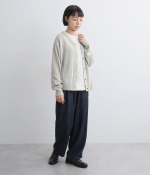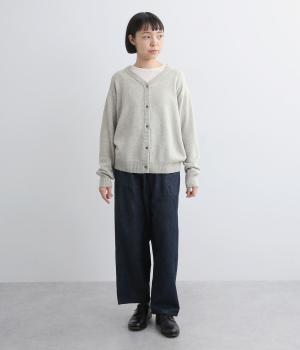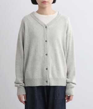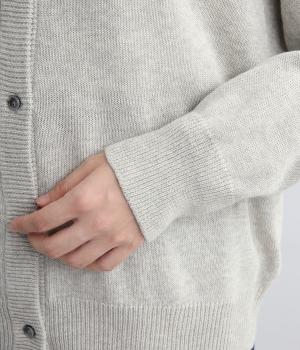 シンプルでベーシックなデザインが使い勝手のいいニットカーディガン。体のラインを拾いすぎない適度なゆとりに、浅めのVネックで抜け感をプラス。リブ編みのトリミングでさりげなくメリハリをつけ、前あきでラフに羽織ってもさまになります。