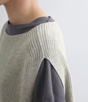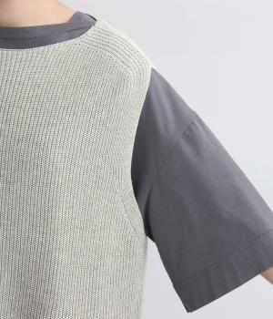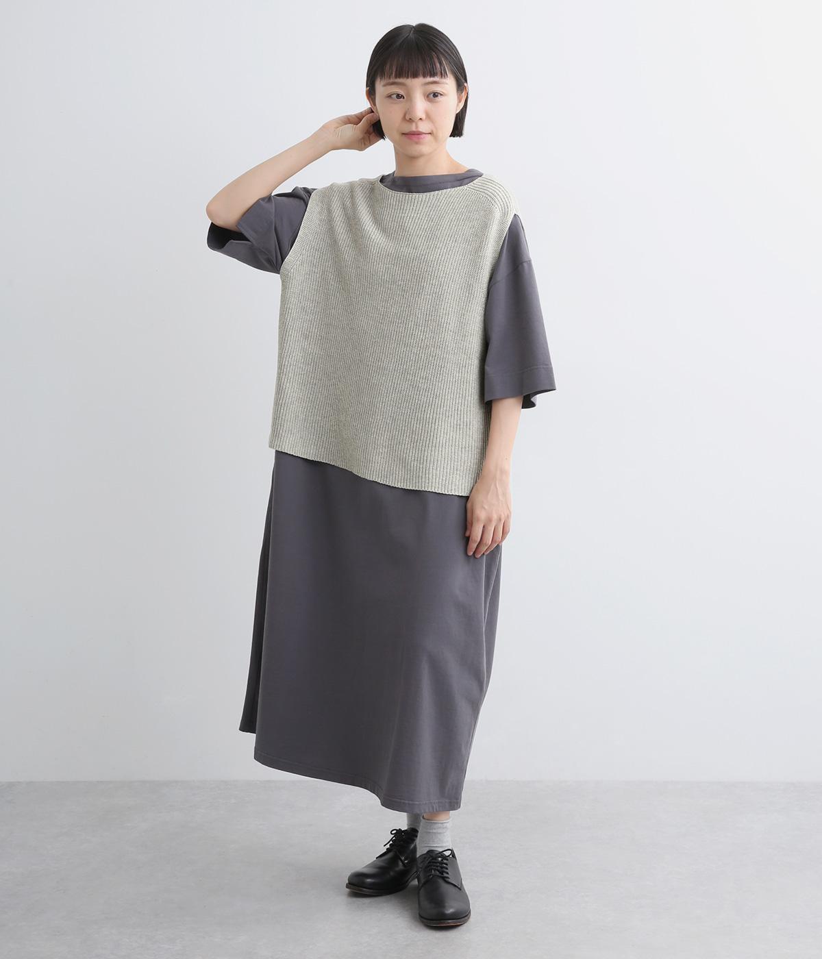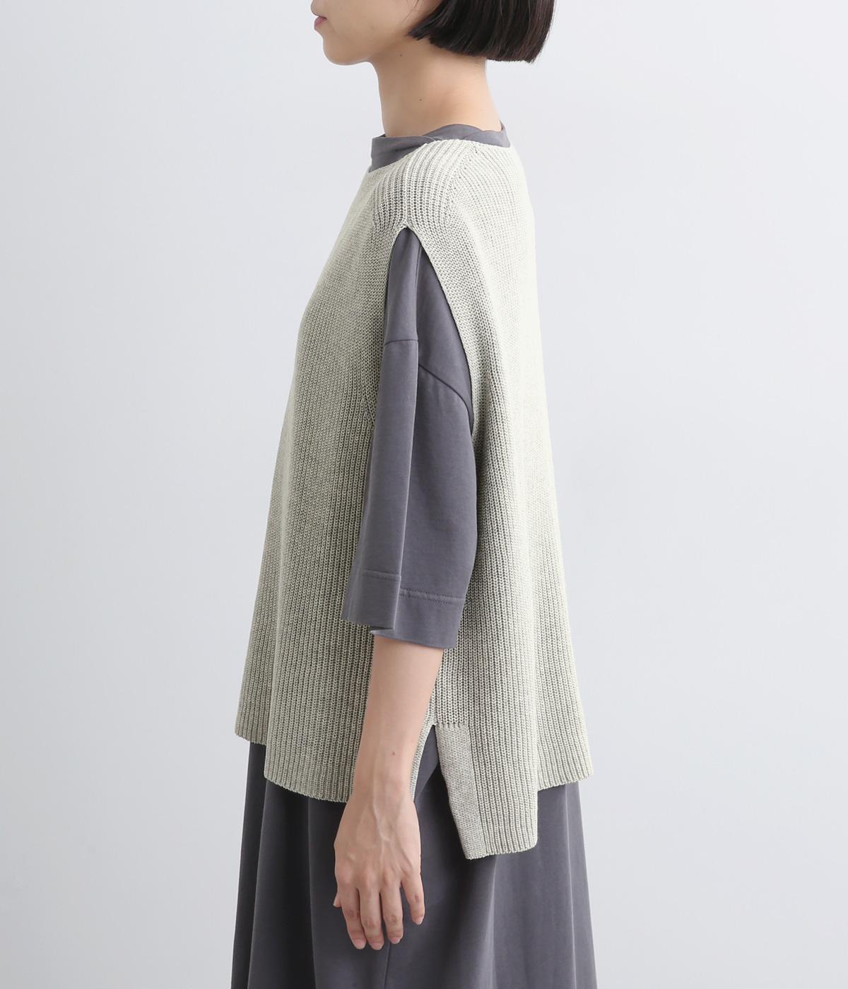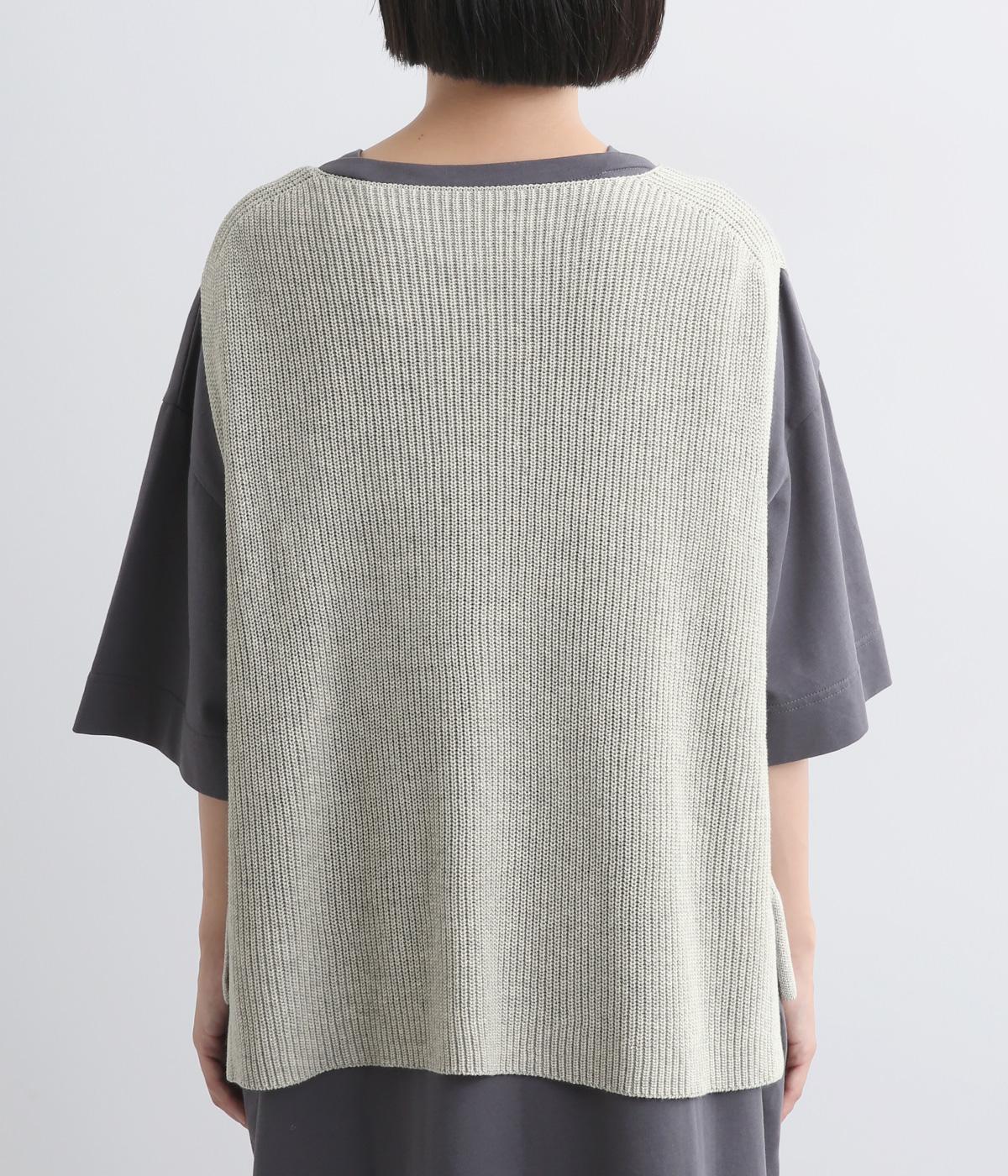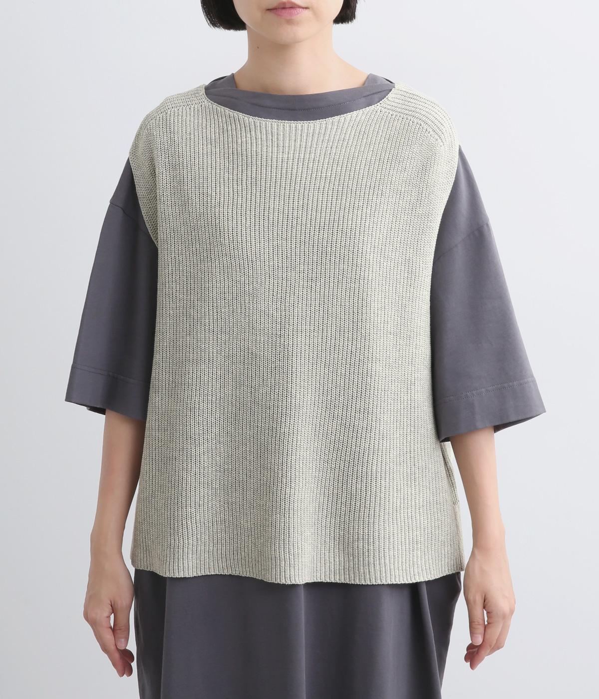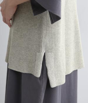 ボックス型シルエットが特徴的なプルオーバータイプのベストです。横に広く開いたボートネックはインナーのチラ見せにも◎。着丈は前後差をつけスリットを入れることで、ボトム合わせもすっきり決まります。