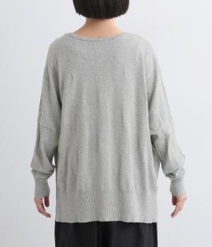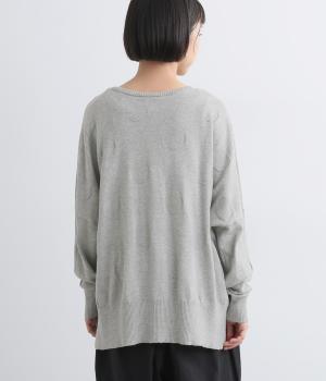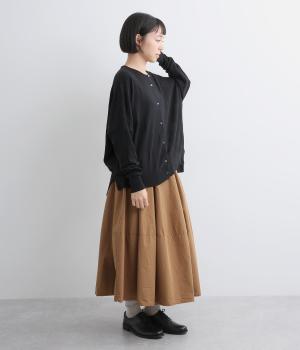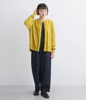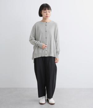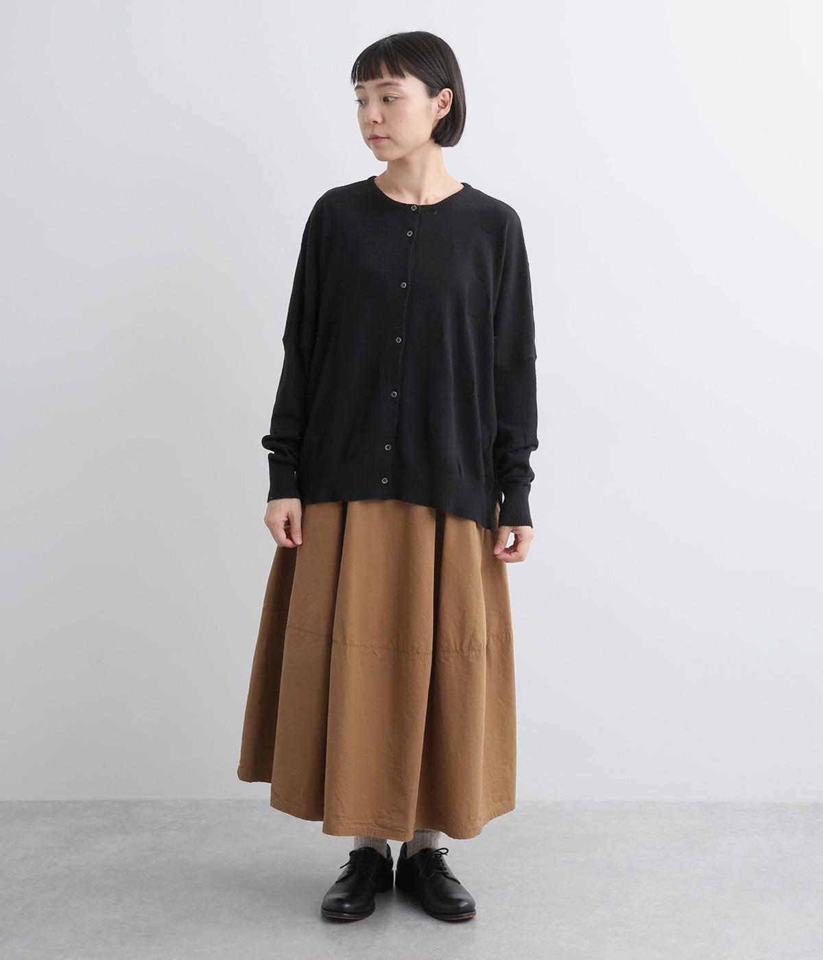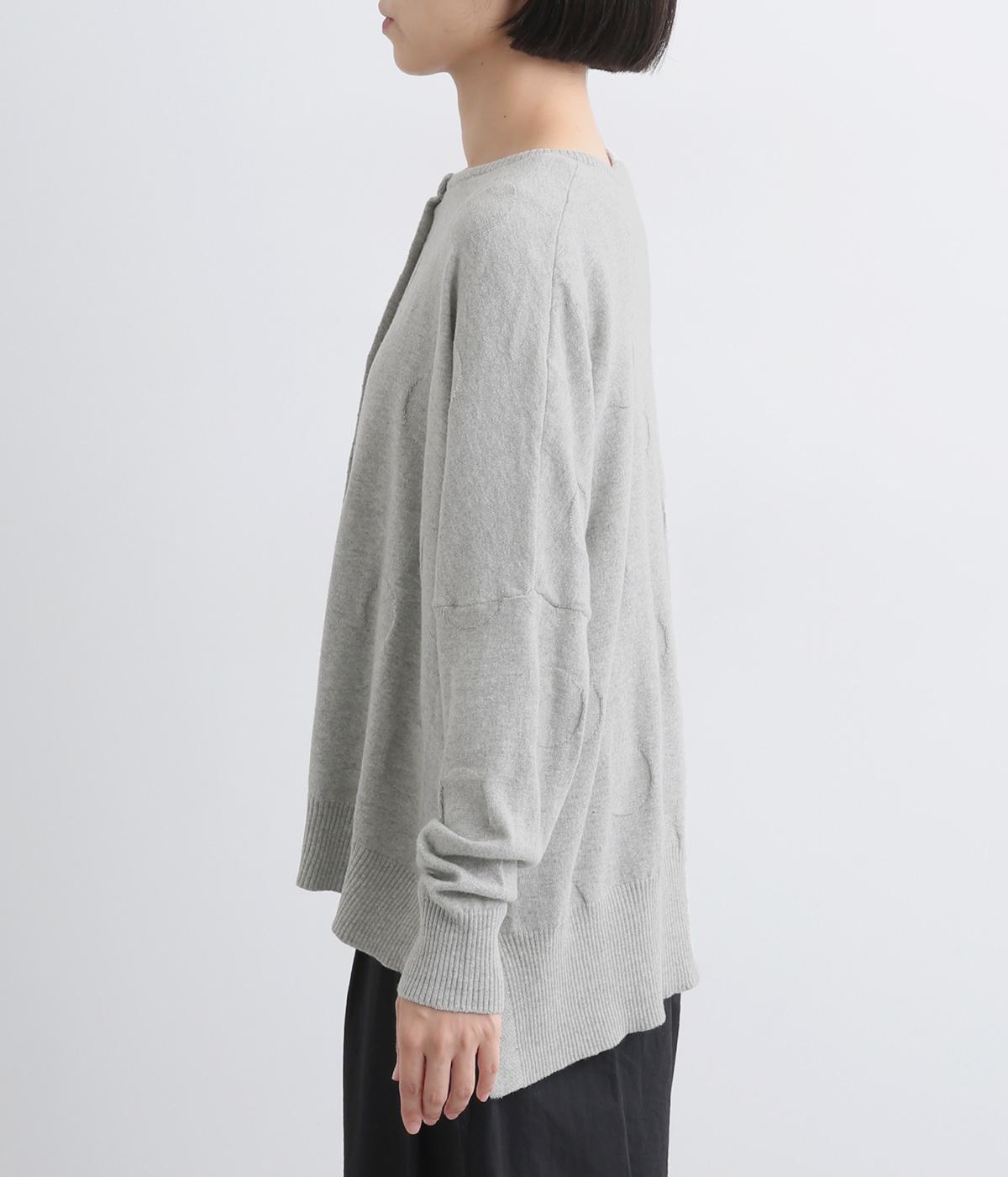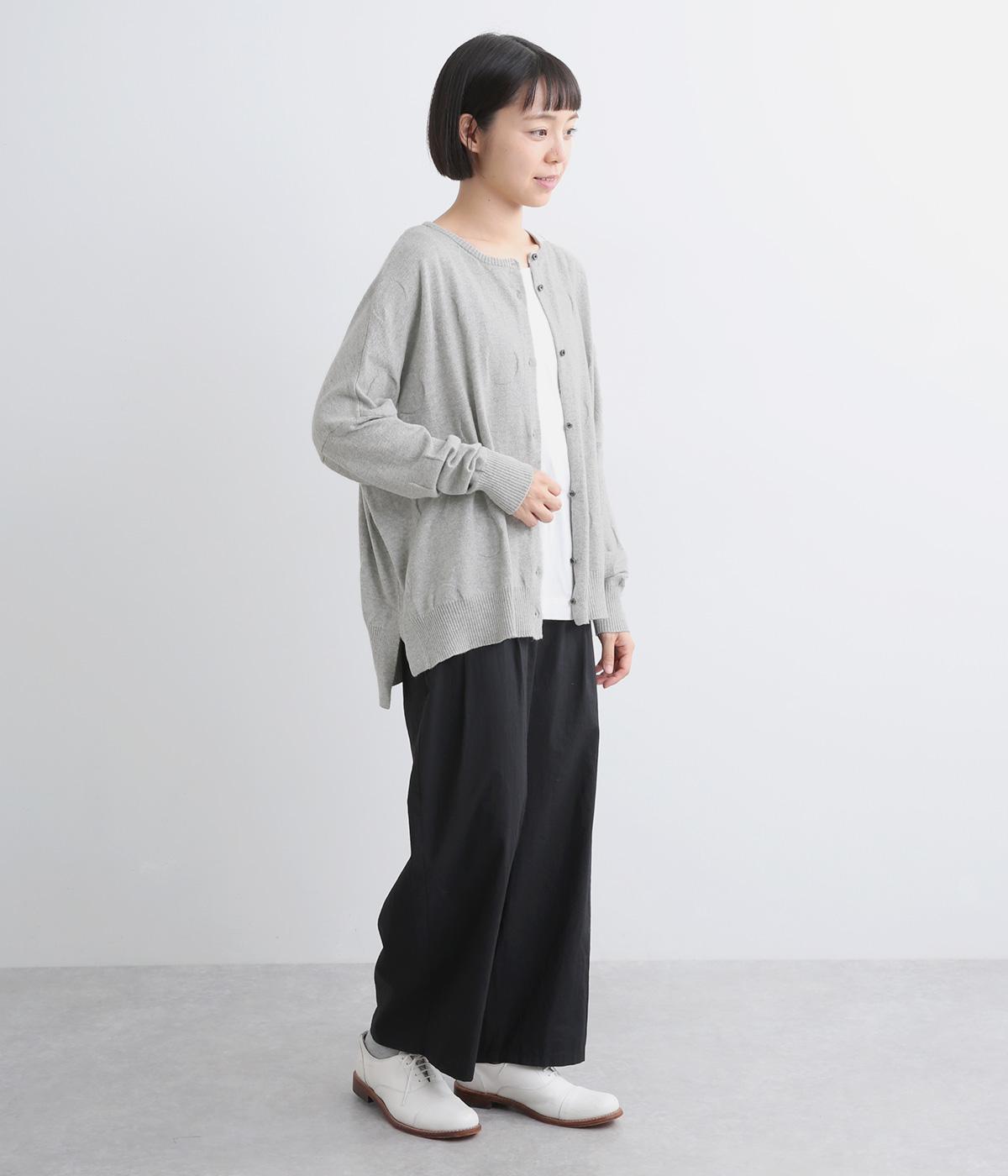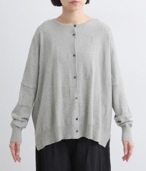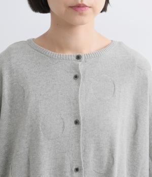ゆったりしていてラフに羽織りやすいニットカーディガンは、ドットジャカードを活かしてベーシックにまとめました。袖口と裾は長めのリブ編みで適度にメリハリを。小さめのラウンドネックでプルオーバーのようなメイン使いも◎。