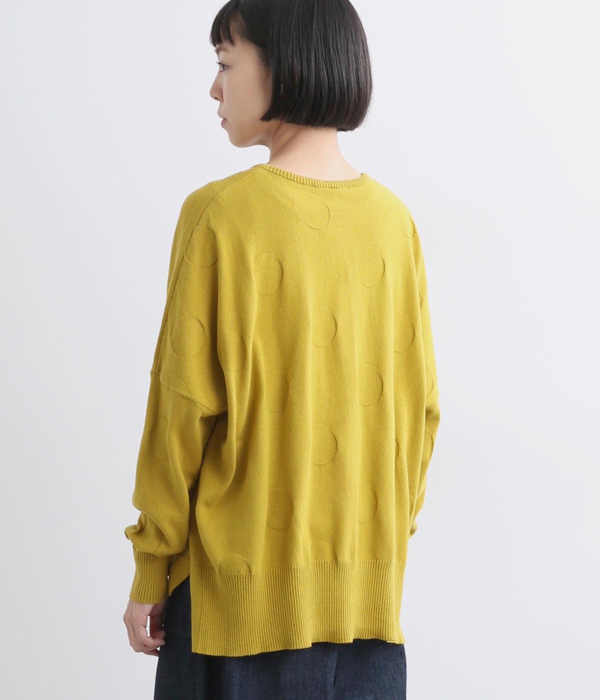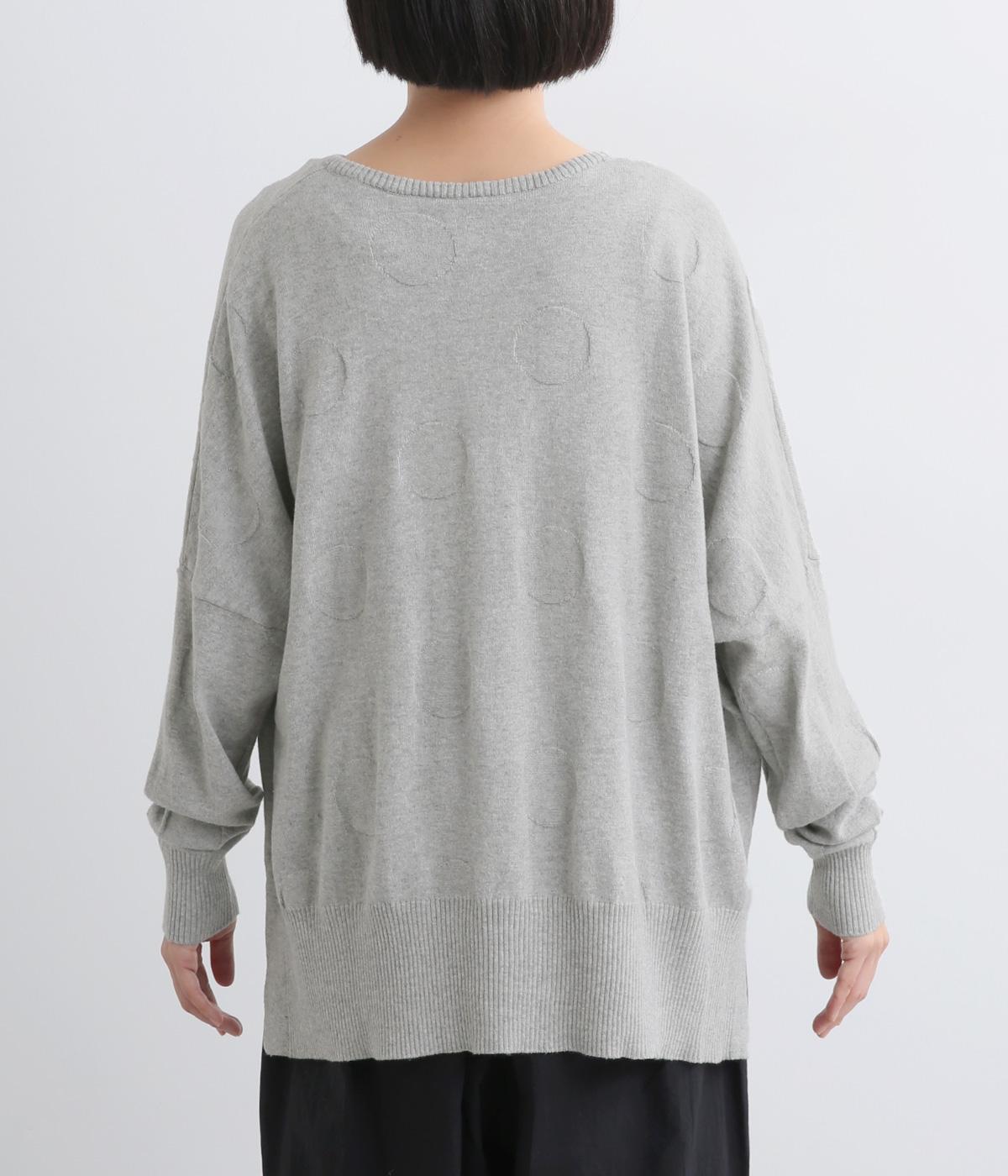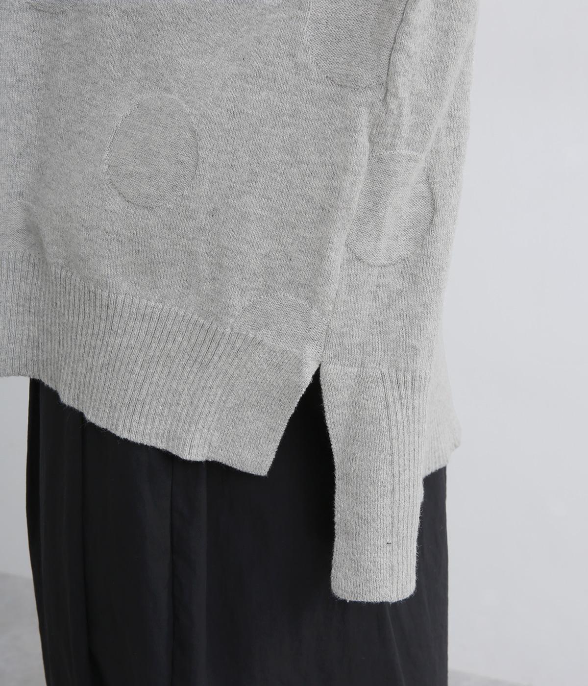 生地そのものに柄を織り込んだ、ドットジャカードを使用しています。さらっとしたタッチにソフトな肌触りのコットンニットで着心地よく仕上げました。