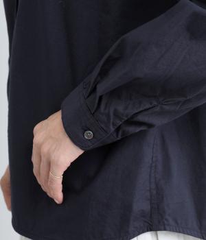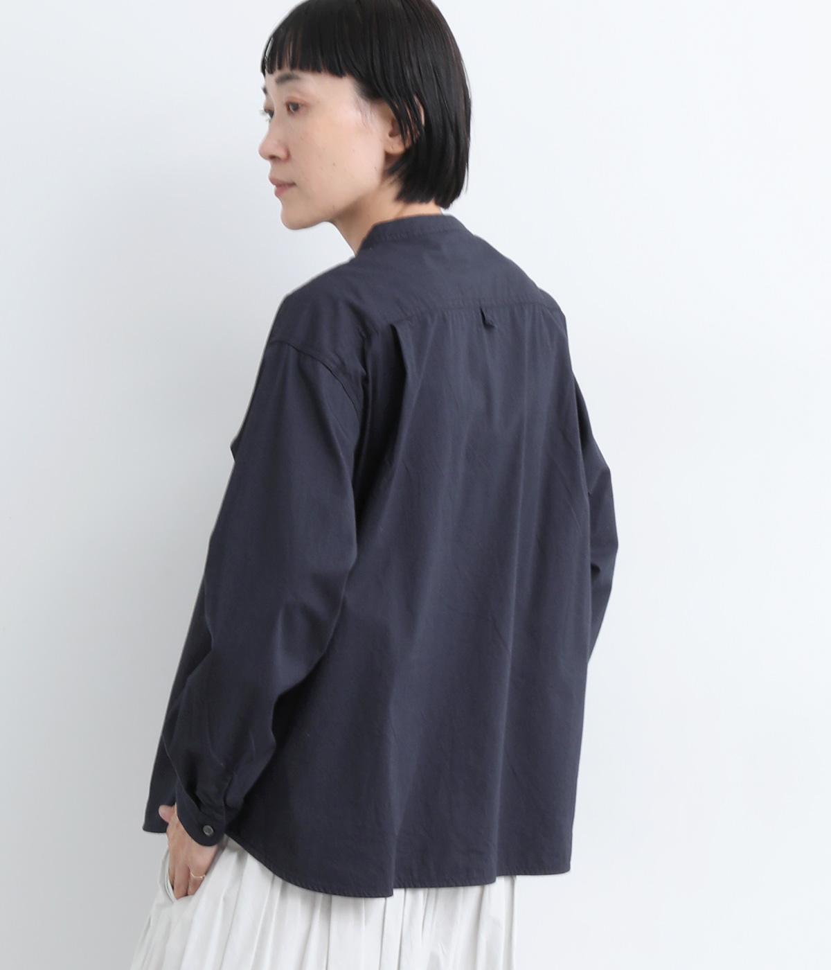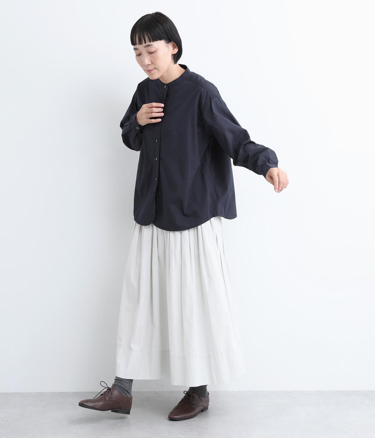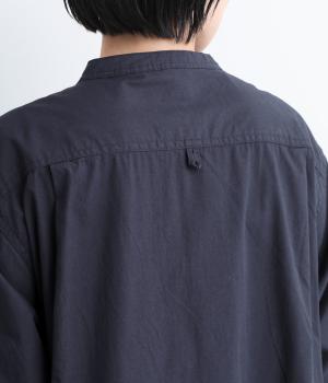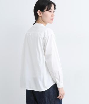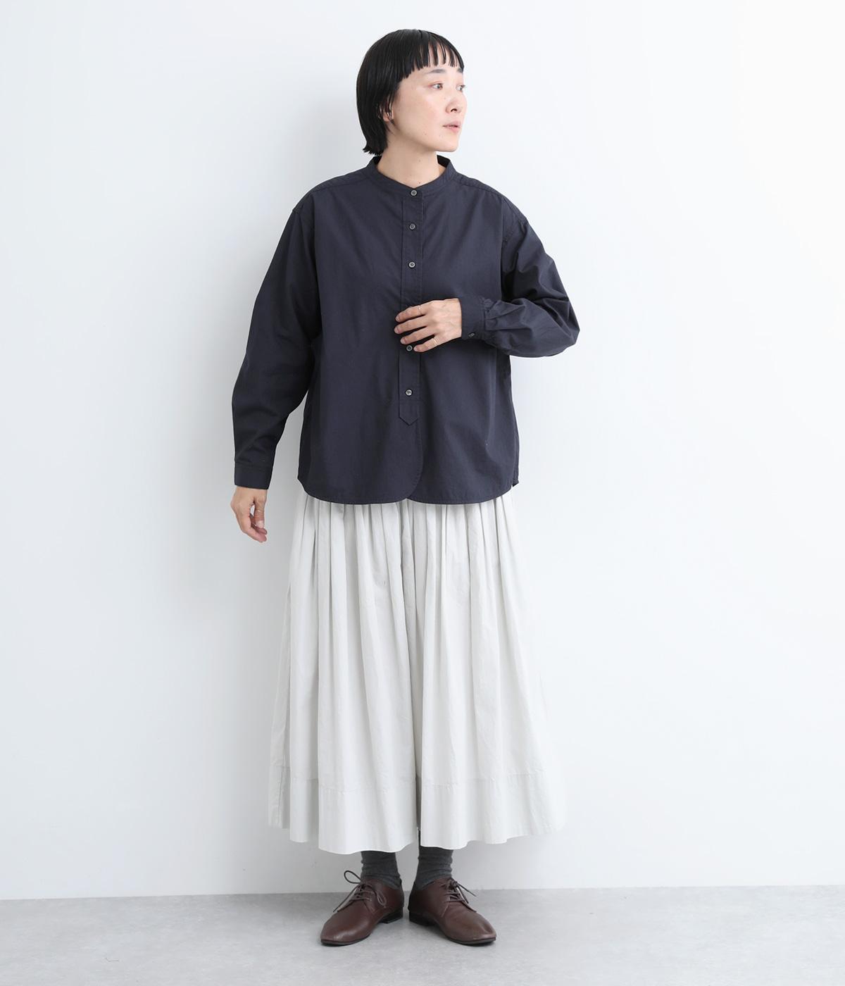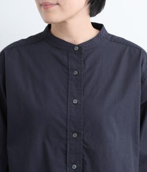 すっきりとしたバンドカラーが上品な印象のシャツは、ラウンドしたヘムラインでやわらかなシルエットに仕立てました。シンプルながらもこなれた雰囲気を楽しめる一枚で、羽織りスタイルもさまになります。