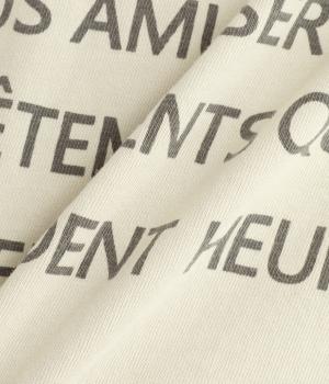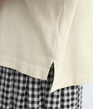 裾に前後差をつけたスリットが動きのあるシルエットを演出するプルオーバーです。ドロップショルダーで肩のラインをやわらかく見せています。さりげないロゴプリントで大人のカジュアルスタイルになじみやすい一枚。