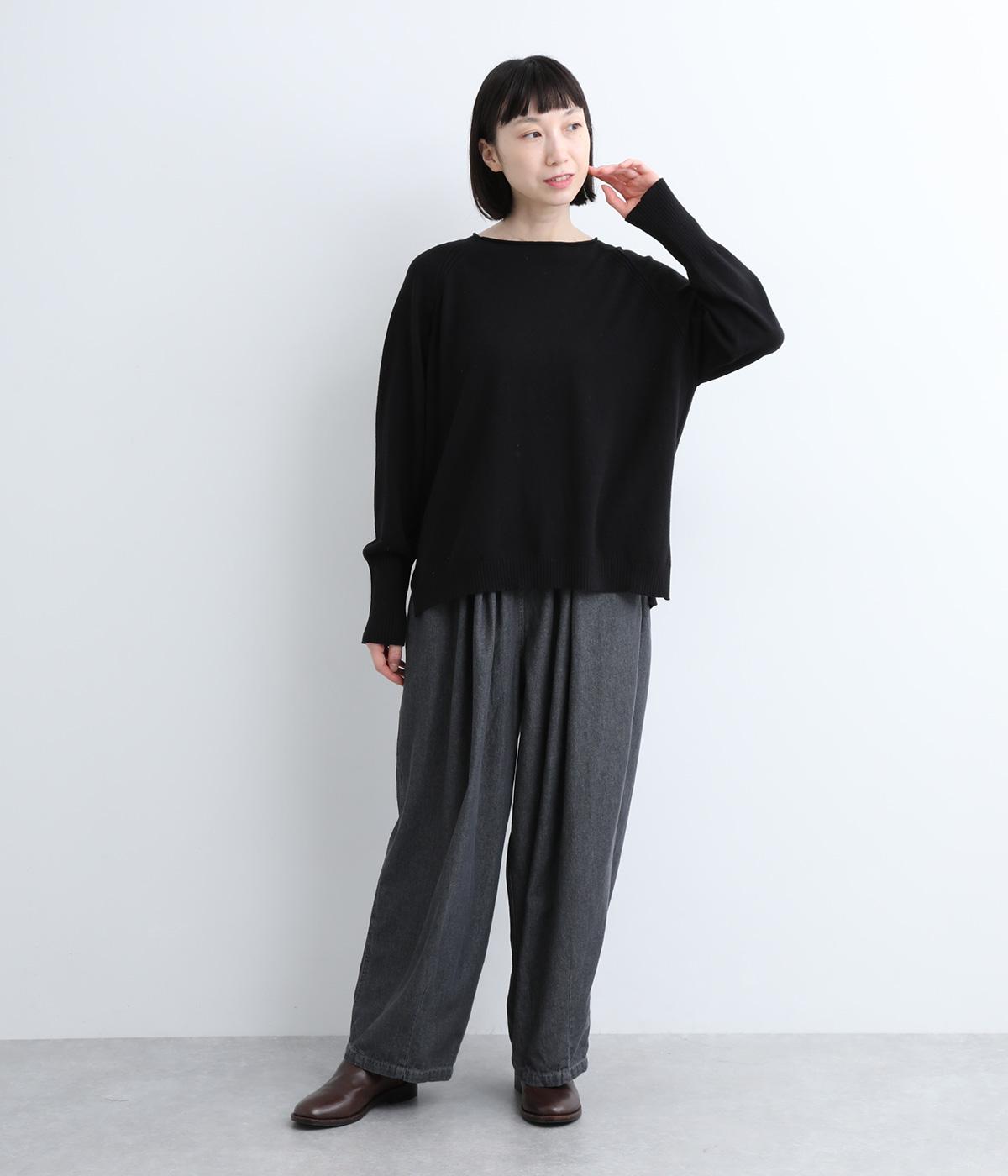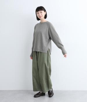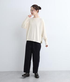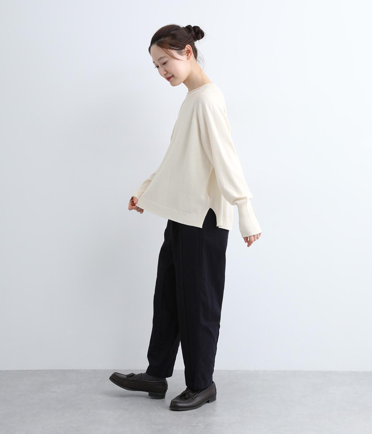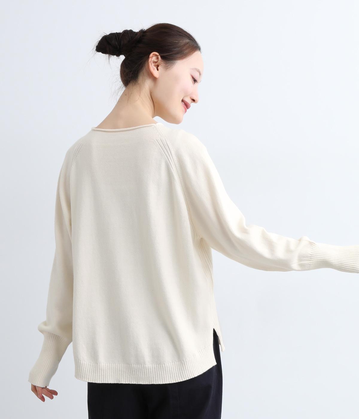 肩や腕を動かしやすいラグランスリーブが、繊細なニットの質感にカジュアルな一面を添えるデザイン性。前後差のある裾が、どんなアイテムを合わせてもこなれた印象に仕上げてくれます。ゆとりがあるので、リラックスして着用できるのも◎。