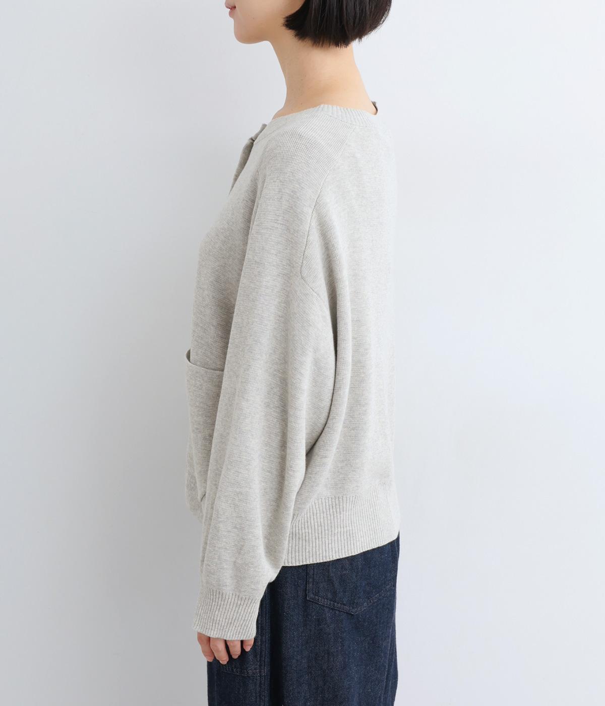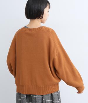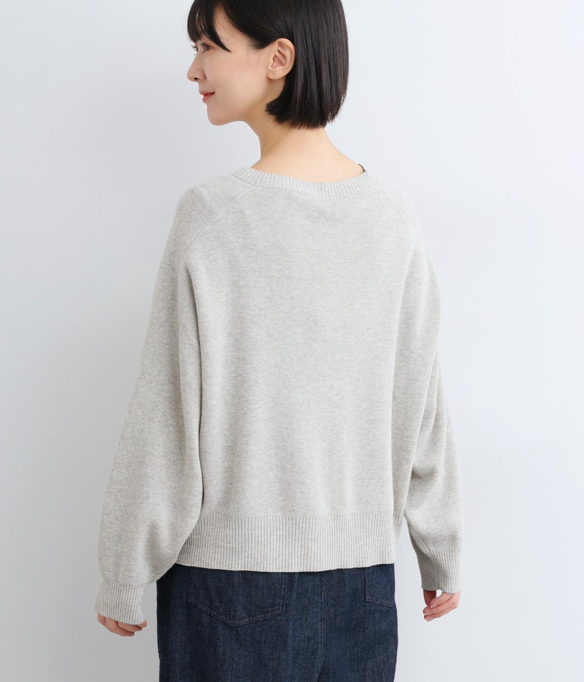 目が詰まりしっかりとした編みが特徴のコットンニット素材です。ふっくらと柔らかな風合いととろんとした肌当たりは、心地よさ抜群。つい手にとってしまうような気持ちいい素材感です。