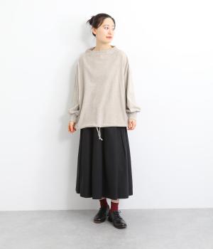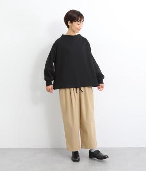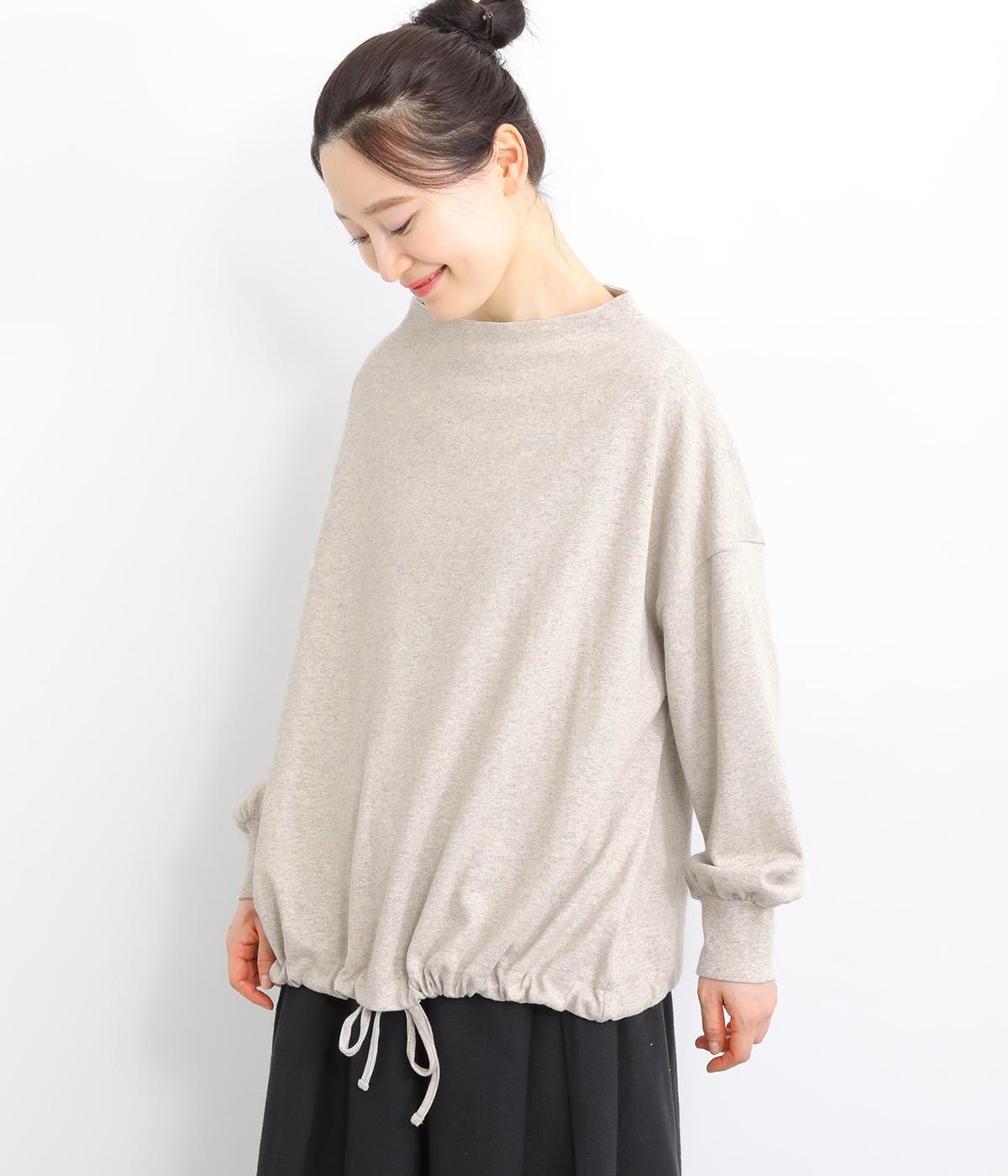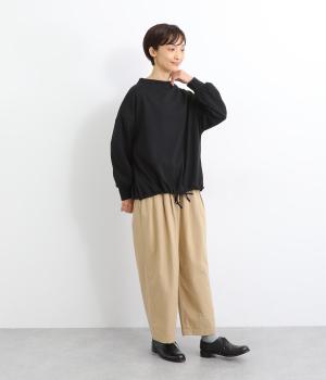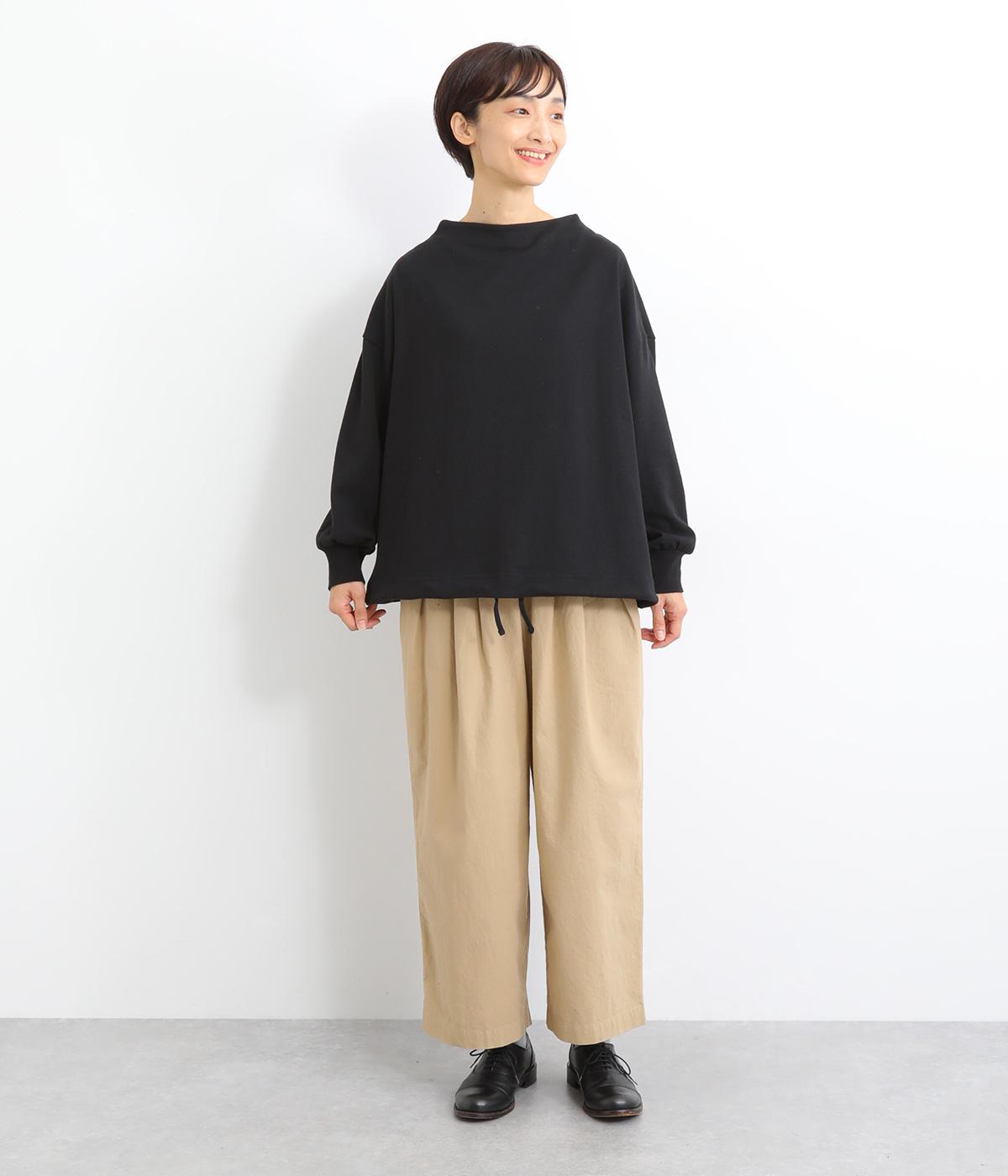 首元を女性らしく上品に見せるボトルネックのプルオーバー。リラックス感のあるシルエットを、袖口のリブですっきりと引き締めました。裾のドローコードを絞れば丸みのあるシルエットにアレンジ可能。ラフな着用感ながらも手抜き感の出ない、細かなディテールにこだわったアイテムです。