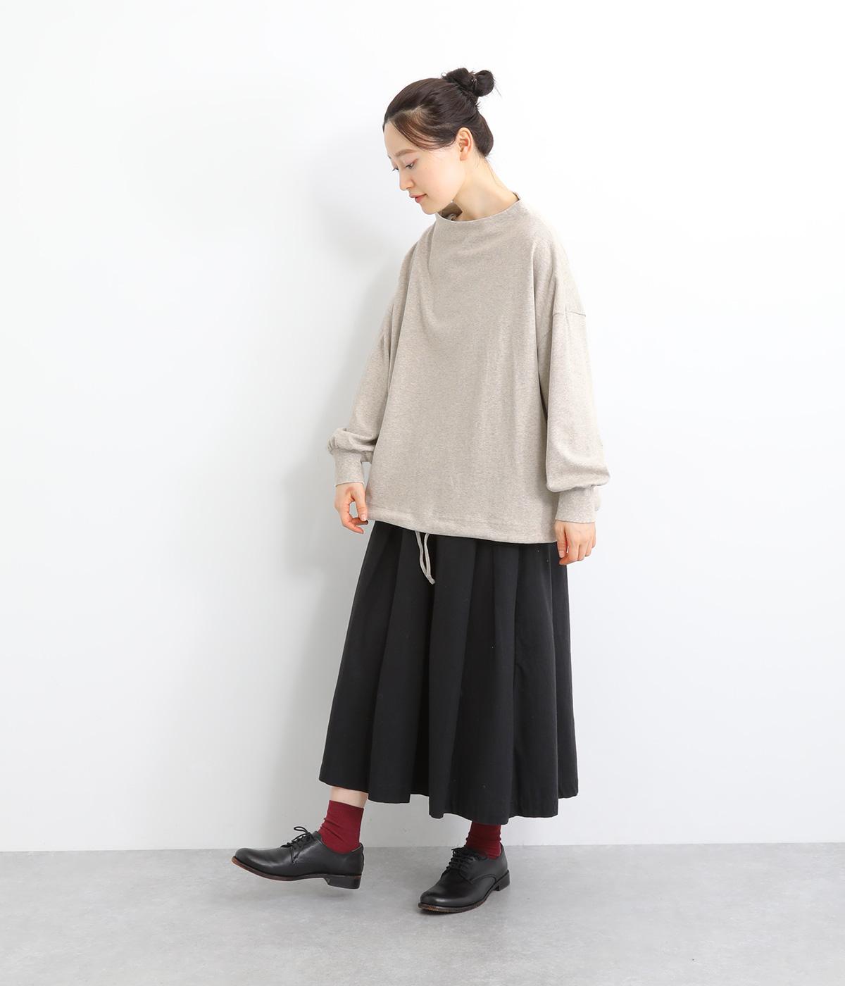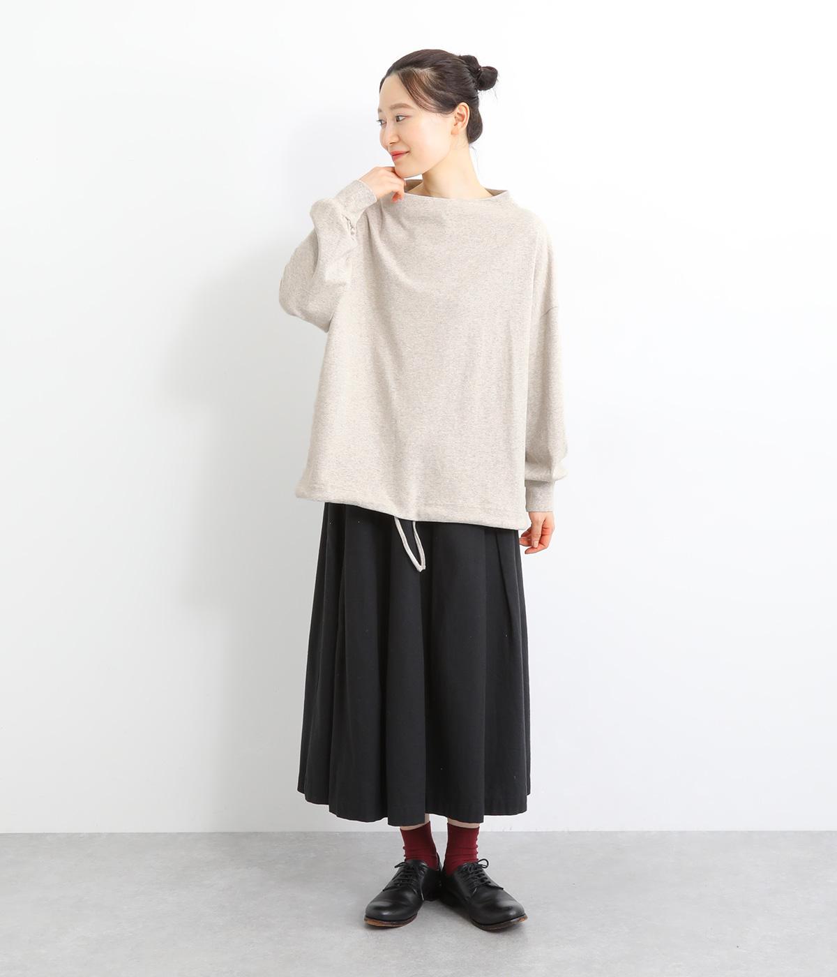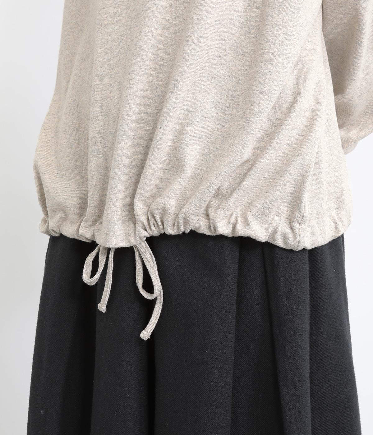 首元を女性らしく上品に見せるボトルネックのプルオーバー。リラックス感のあるシルエットを、袖口のリブですっきりと引き締めました。裾のドローコードを絞れば丸みのあるシルエットにアレンジ可能。ラフな着用感ながらも手抜き感の出ない、細かなディテールにこだわったアイテムです。
