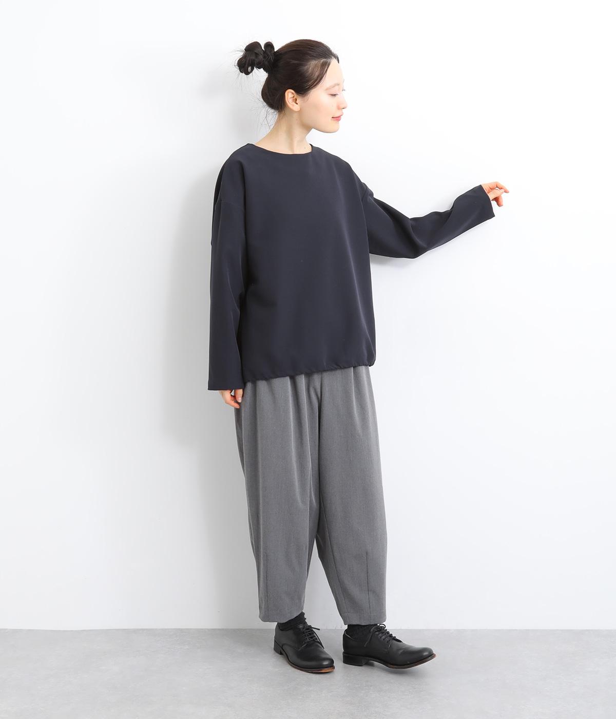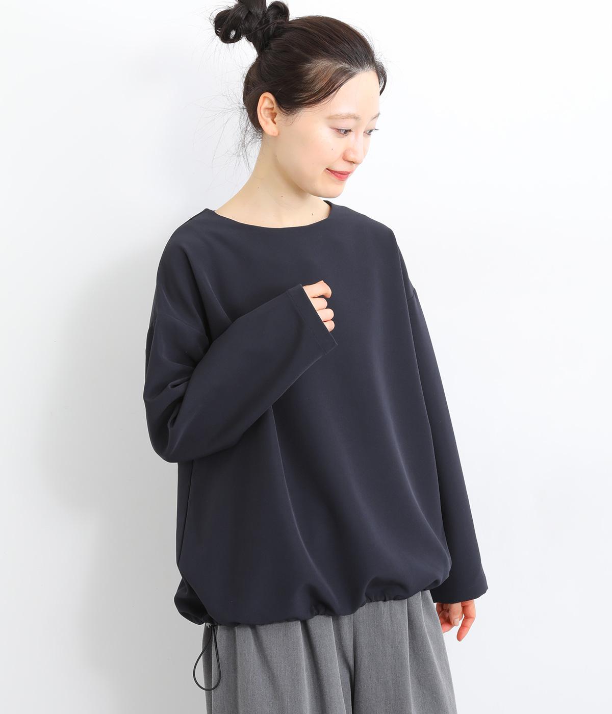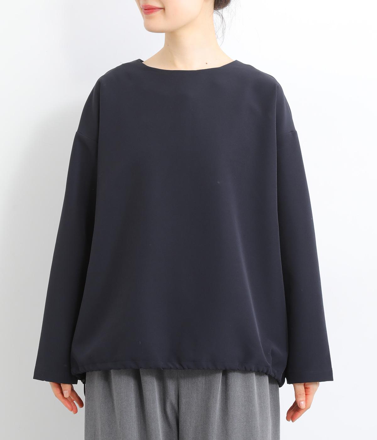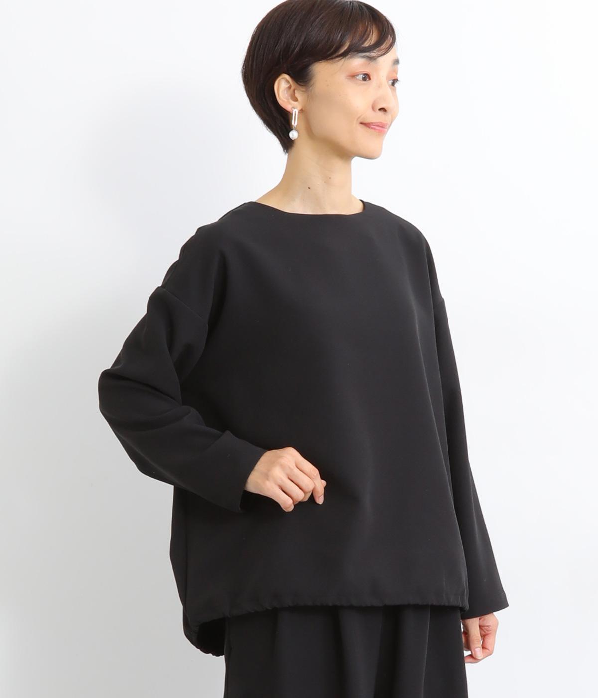 ドロップショルダーとワイドなシルエットで、シンプルながらもこなれ感のあるプルオーバーです。浅めのネックラインが顔まわりを上品に印象づけ。裾にドローコードを通しているので、シルエットを自由に調整できスタイリングの幅が広がります。