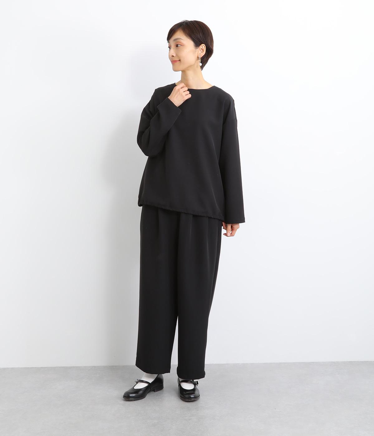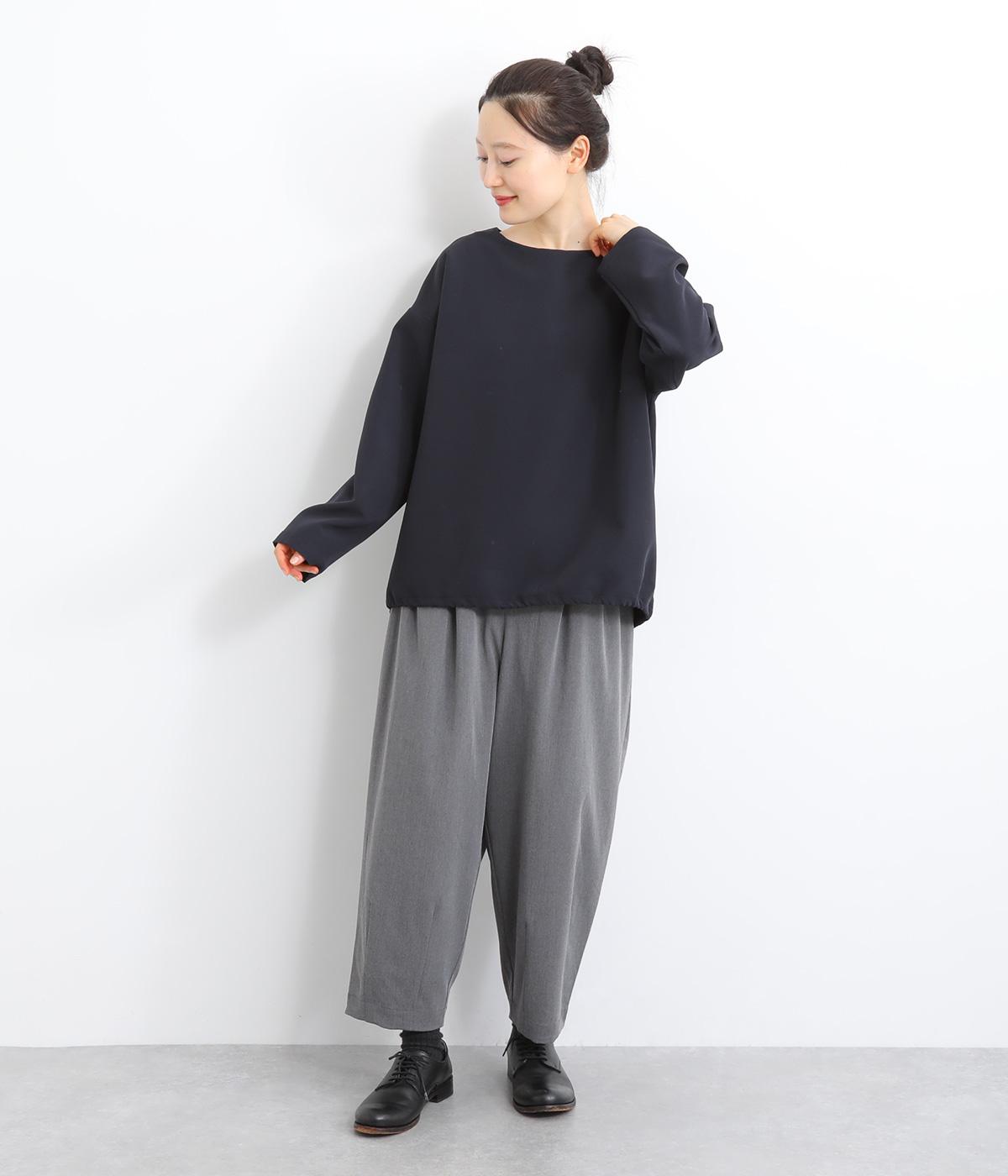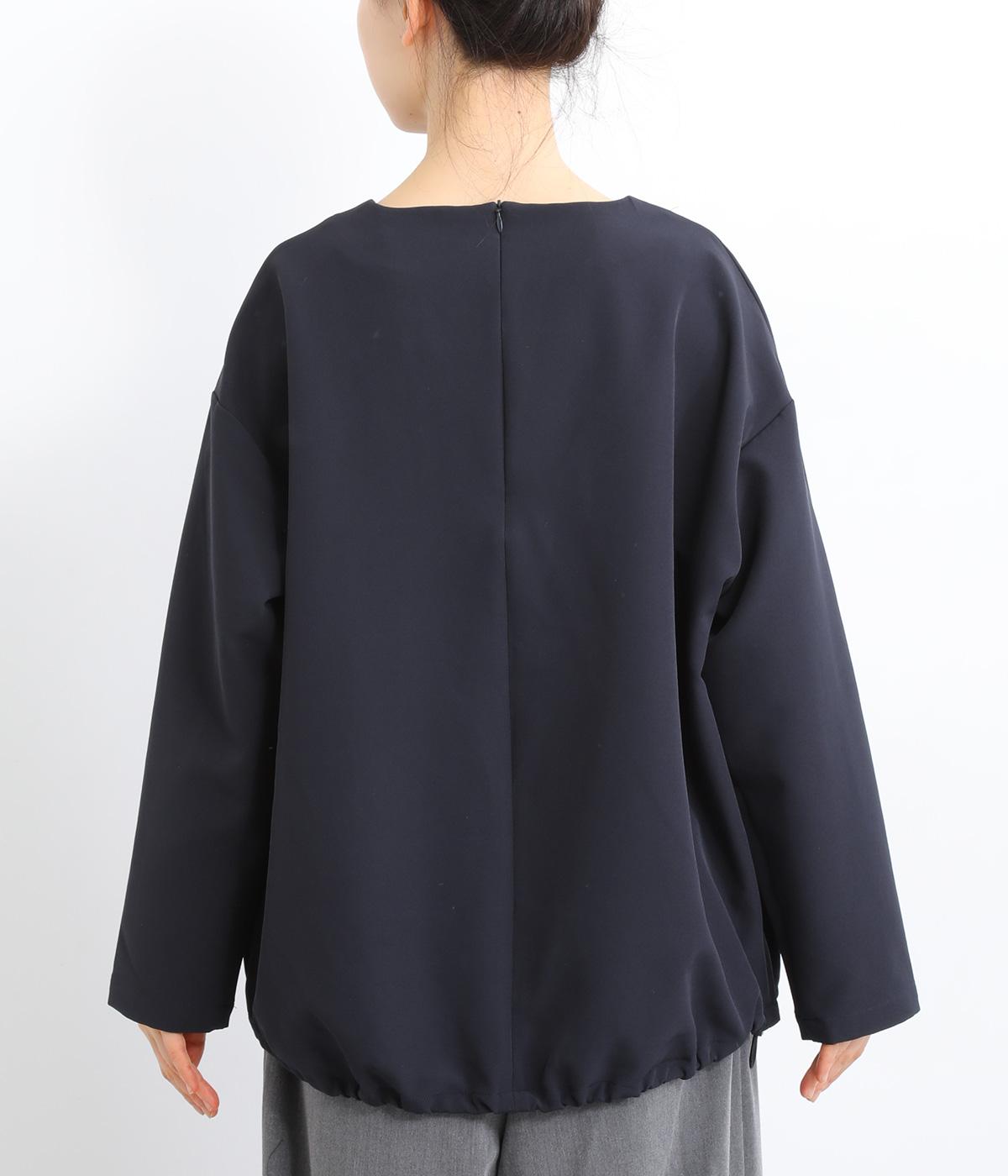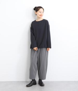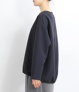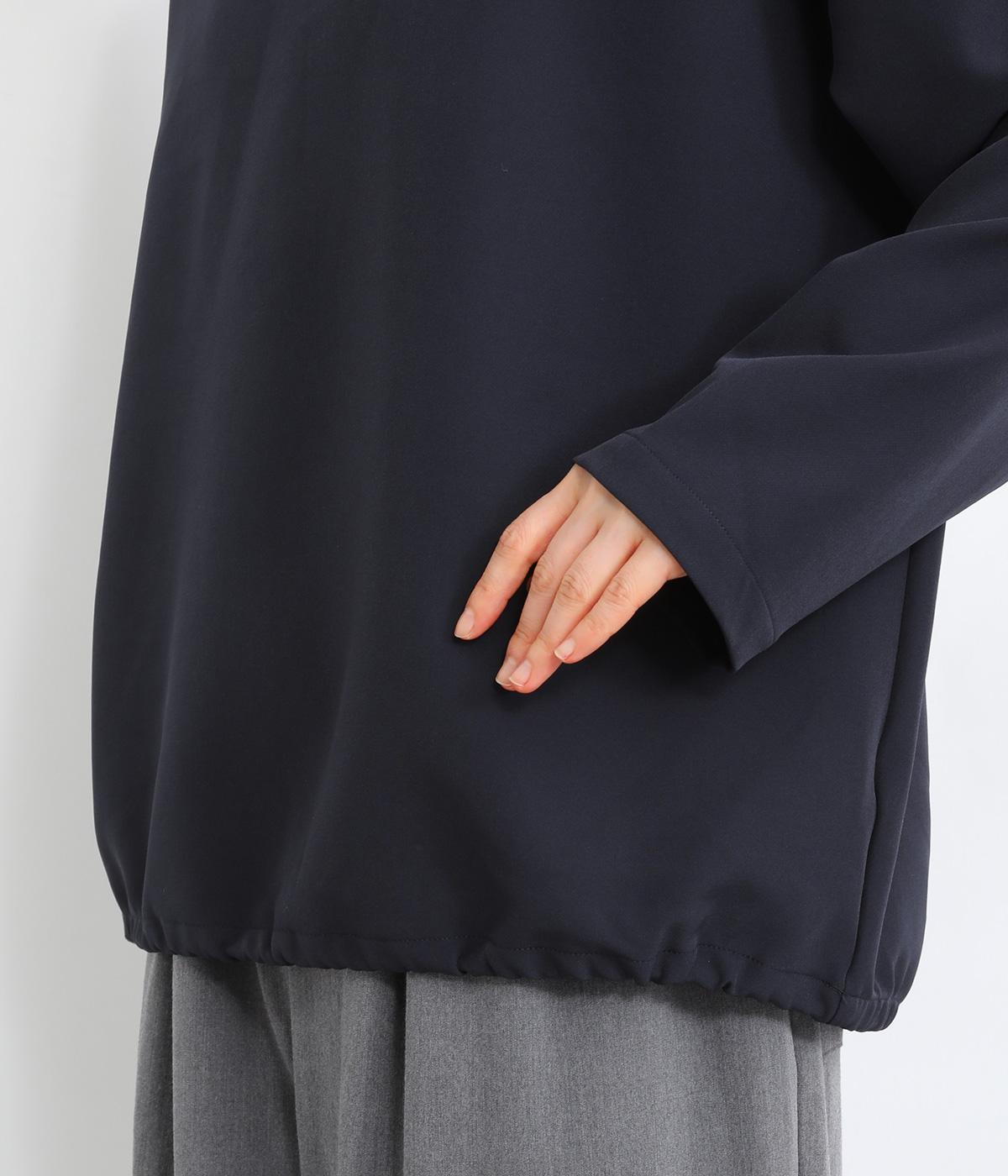 ドロップショルダーとワイドなシルエットで、シンプルながらもこなれ感のあるプルオーバーです。浅めのネックラインが顔まわりを上品に印象づけ。裾にドローコードを通しているので、シルエットを自由に調整できスタイリングの幅が広がります。