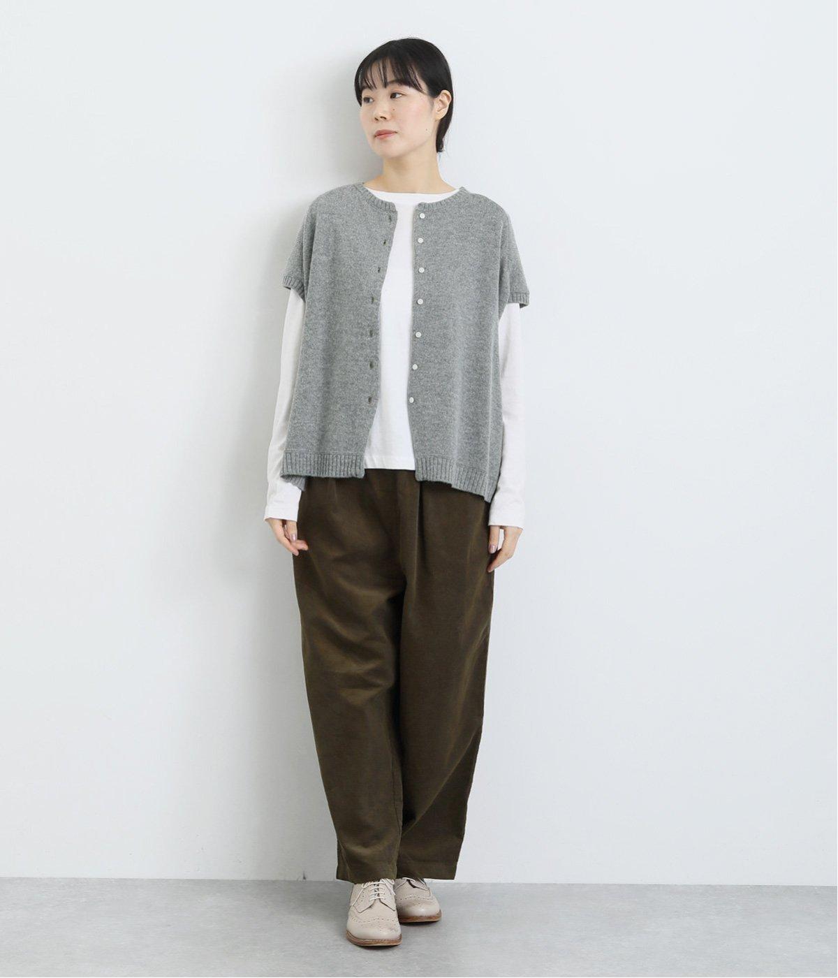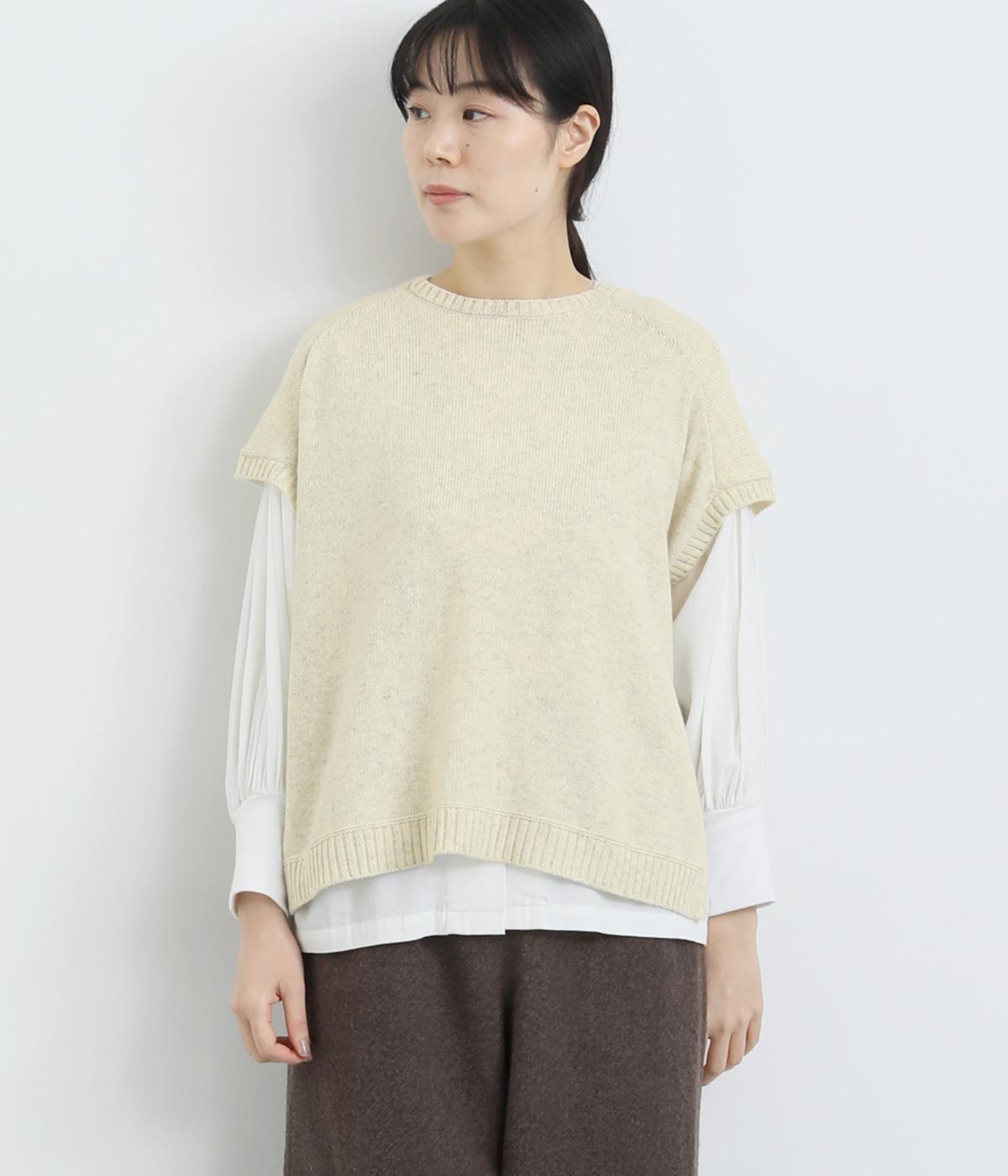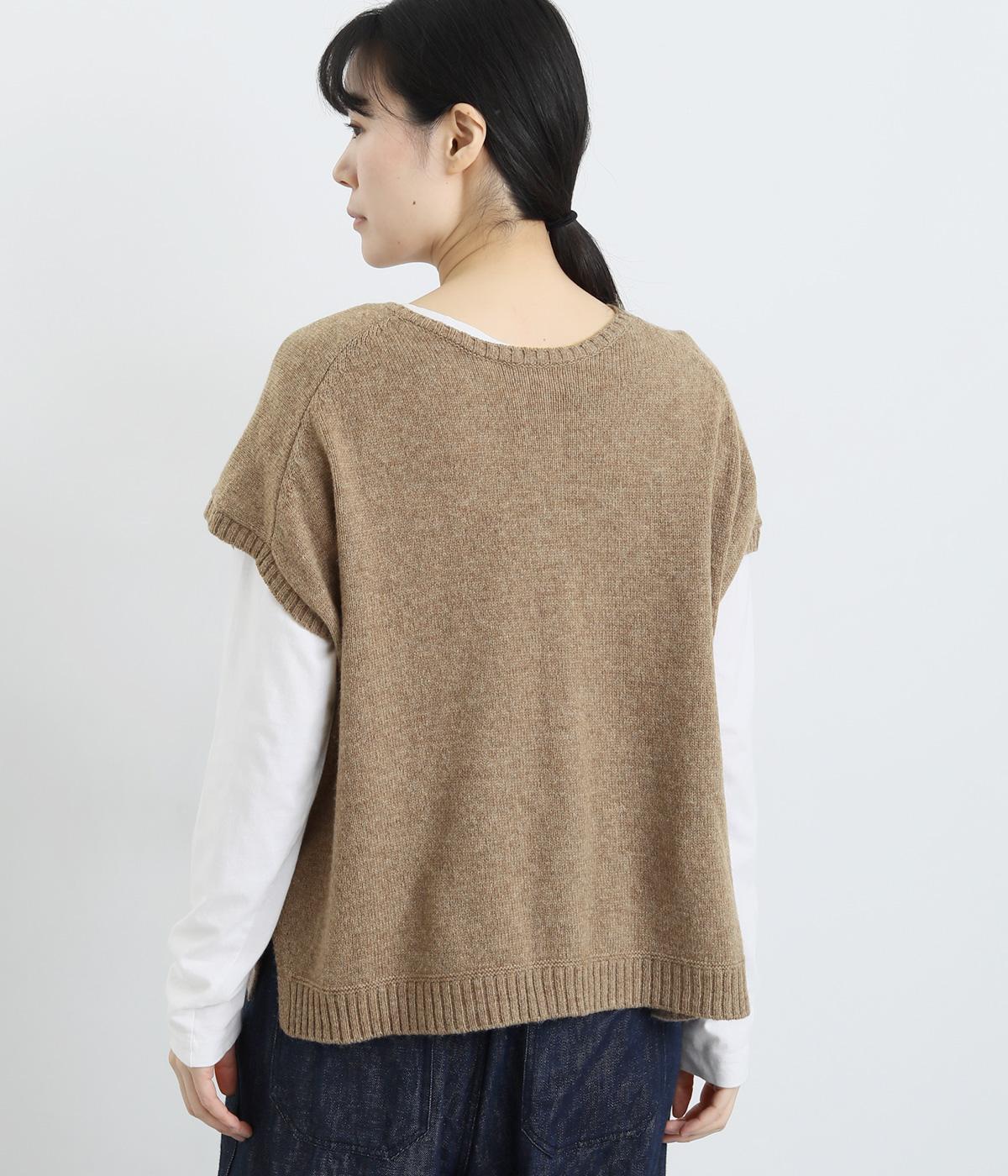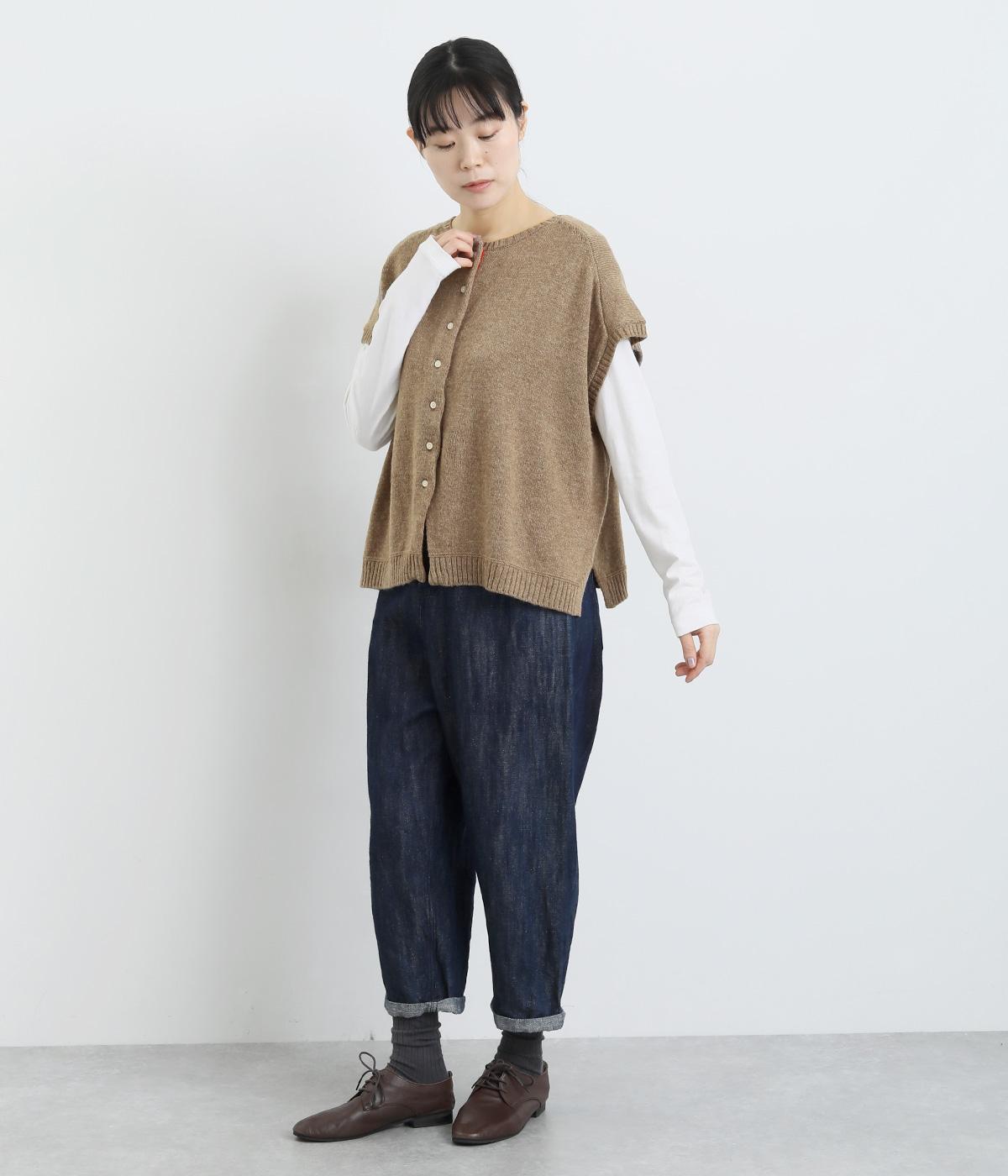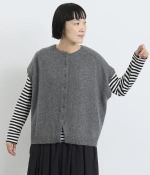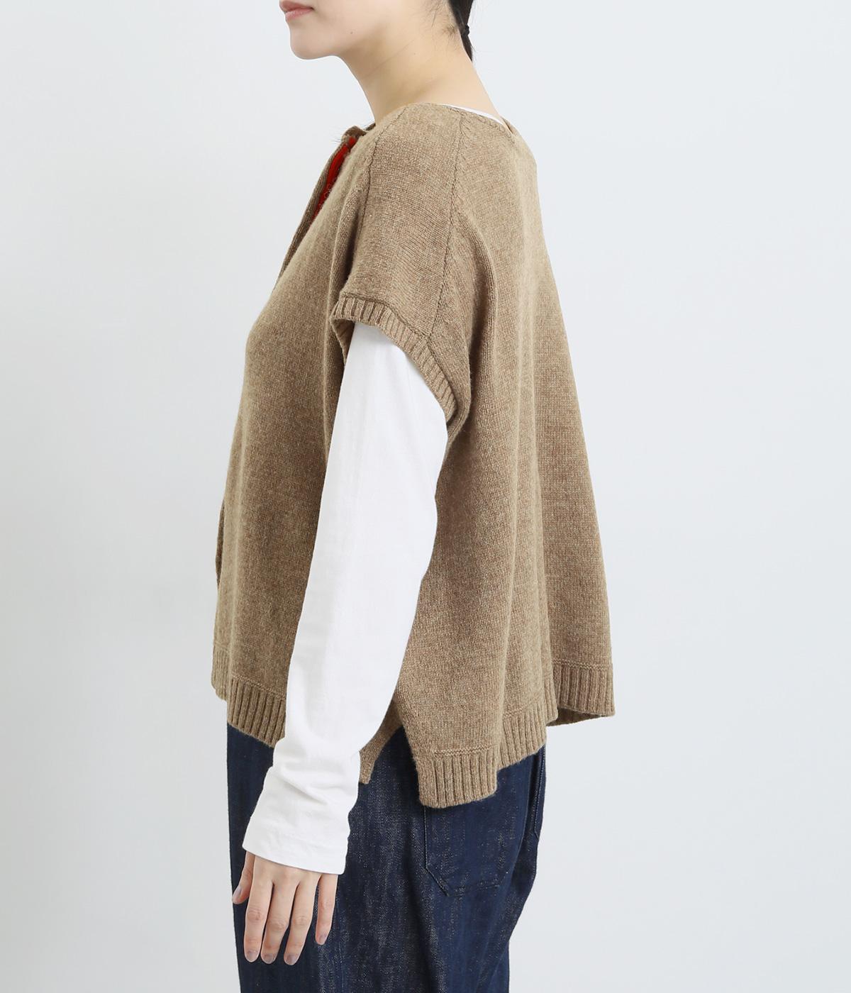 前後2way仕様で幅広い着こなしに対応できるベストです。レイヤードするインナーとのコントラストがたのしめるワイドシルエットで、裾スリットも入っているのでボトム合わせもイージー。前あきでラフに羽織っても◎。