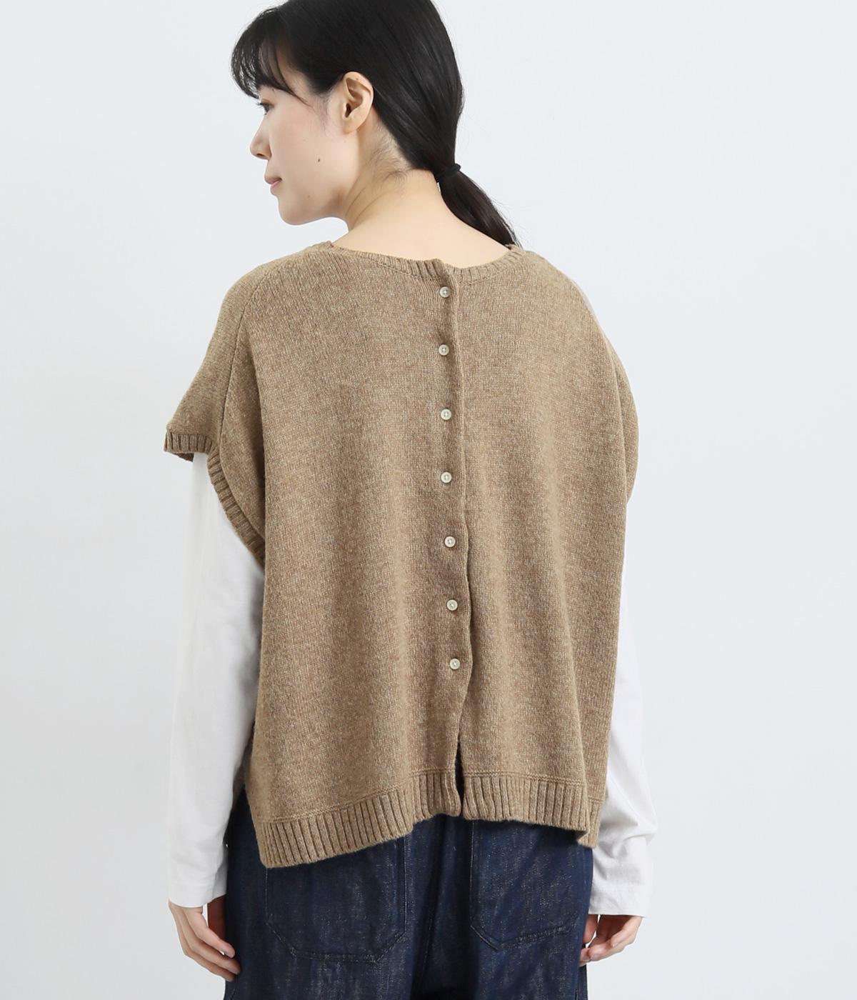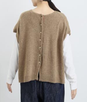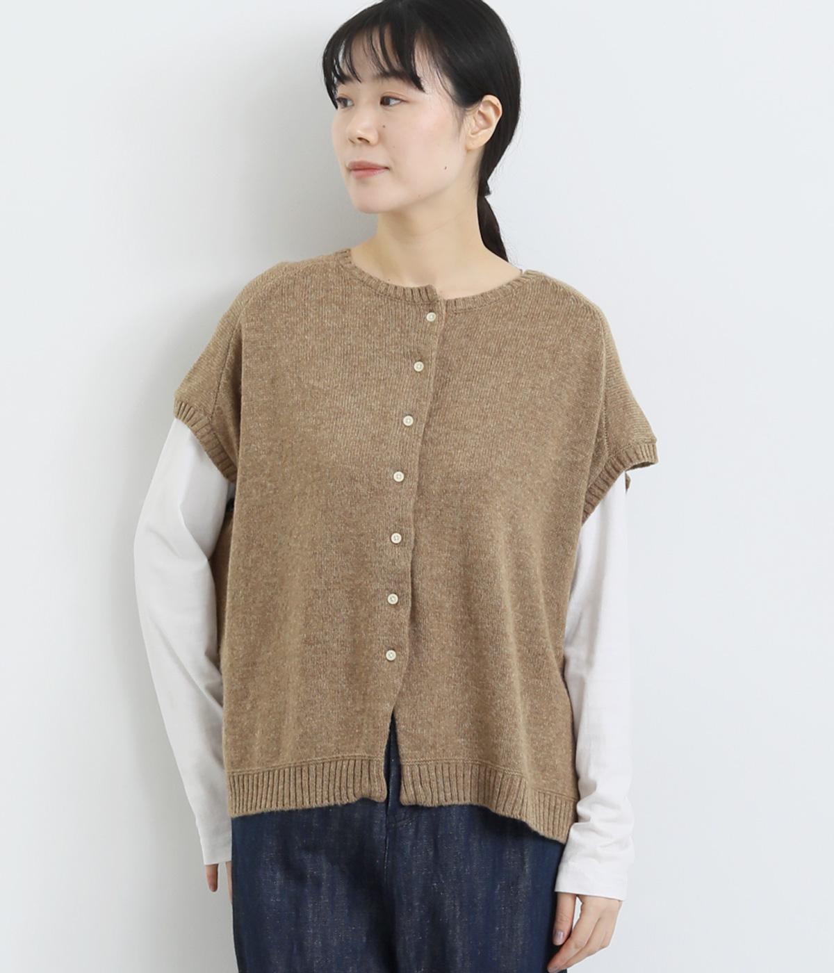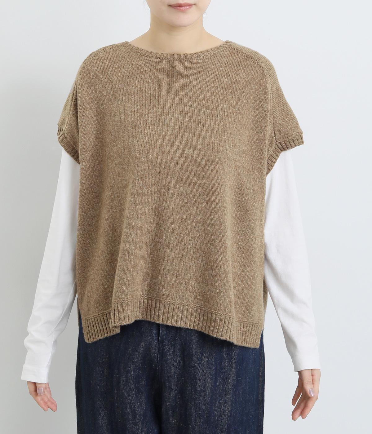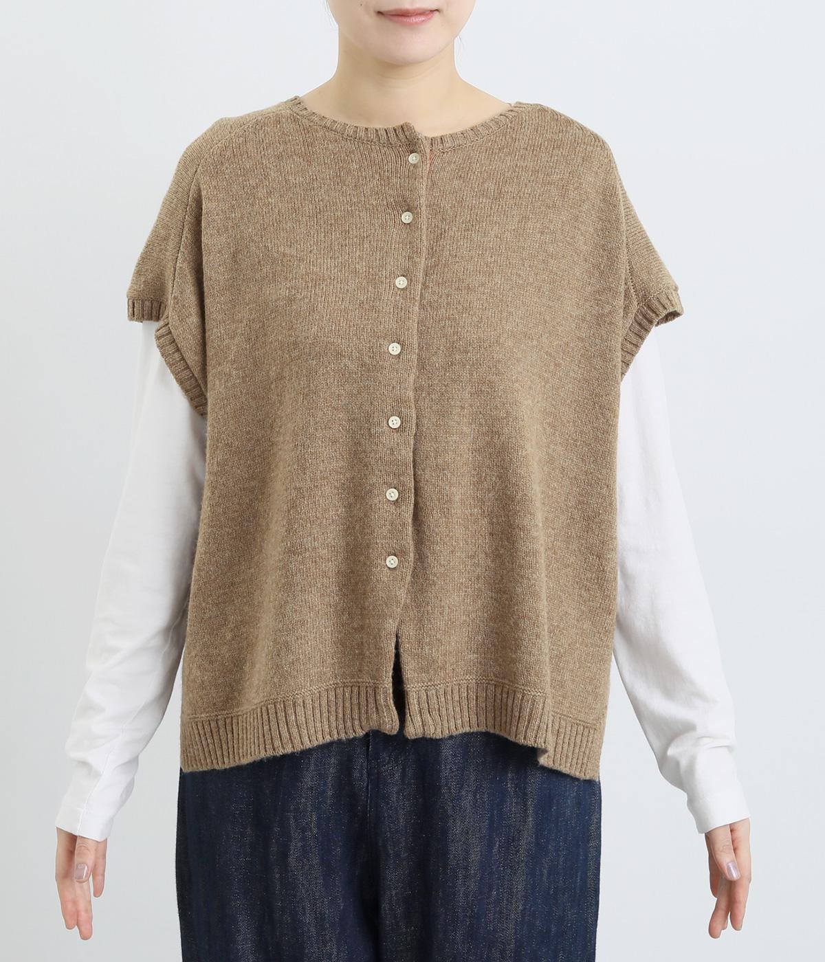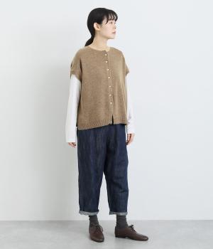 前後2way仕様で幅広い着こなしに対応できるベストです。レイヤードするインナーとのコントラストがたのしめるワイドシルエットで、裾スリットも入っているのでボトム合わせもイージー。前あきでラフに羽織っても◎。