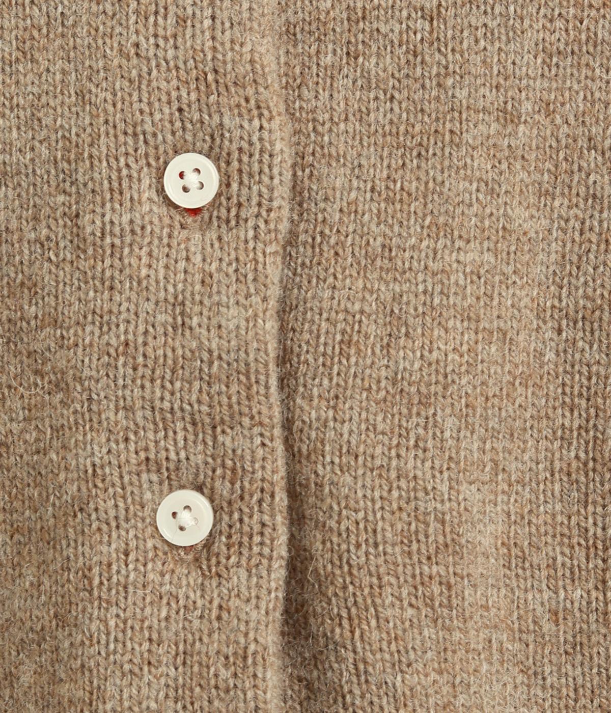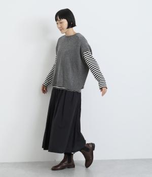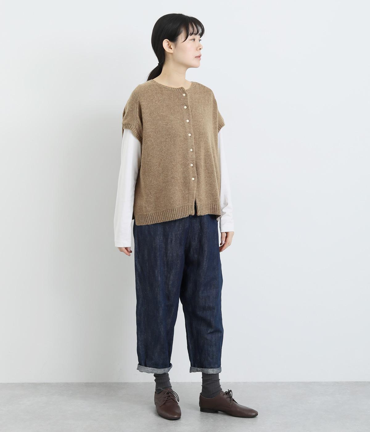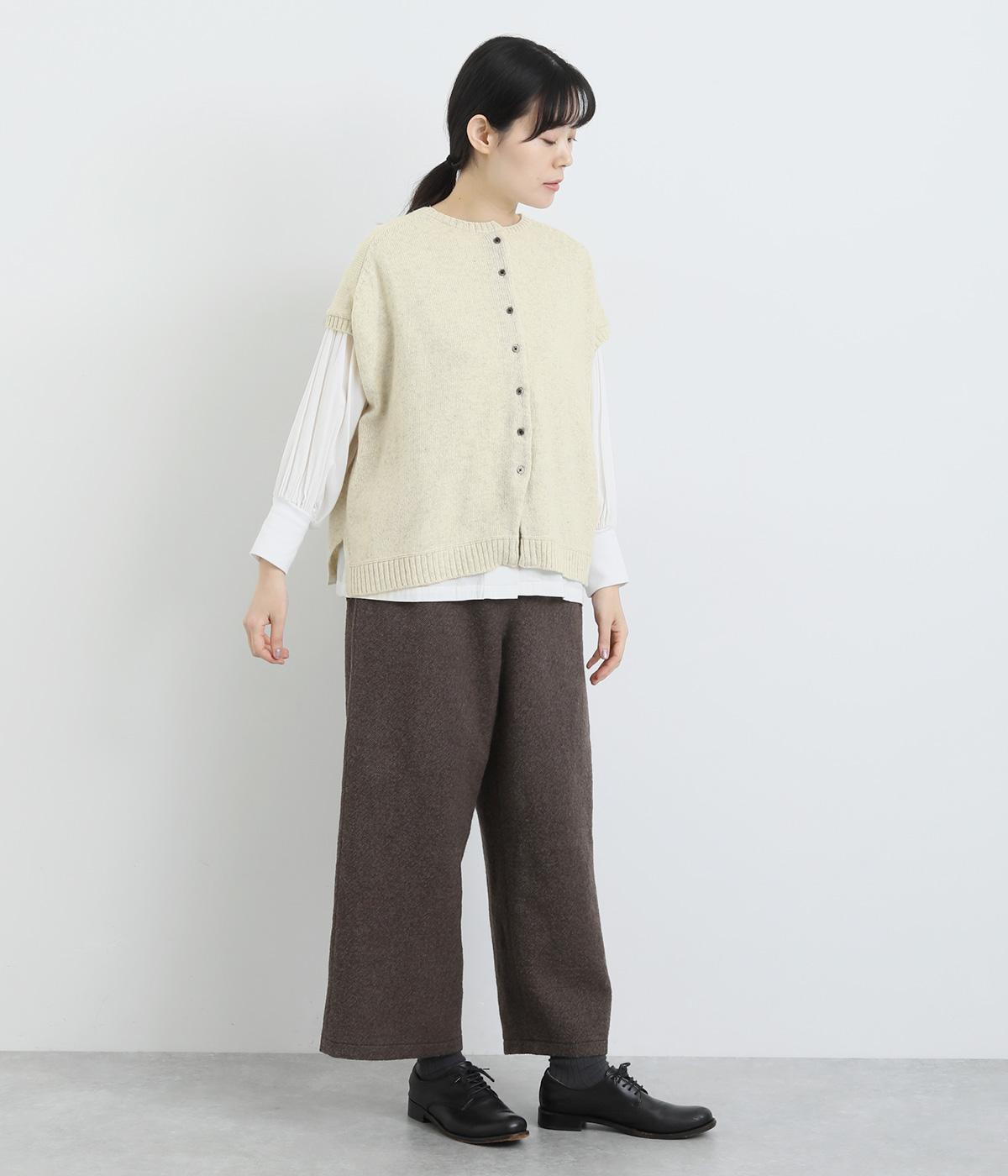 あたたかくてやわらかなラムウールとナイロンの混紡糸で編み立てました。ふんわりとしたあたたかみとやわらかな生地感が特徴で、適度に軽く仕上がっています。