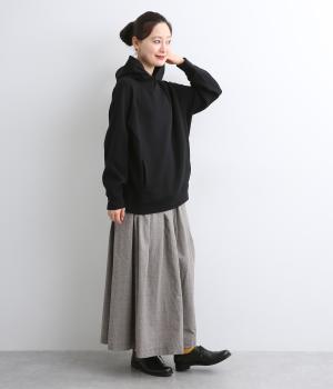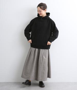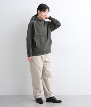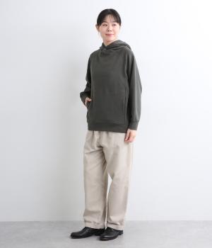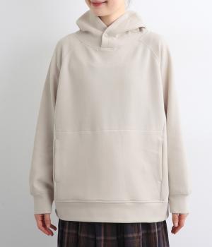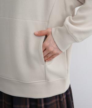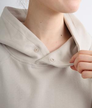 デイリーに使えるフードつきプルオーバー。フードの立ち上がりやフロントの隠しポケットなど、洗練されたデザインにこだわりました。首元にはスナップボタンつきで、閉じると防寒になるだけでなくスタイリッシュな表情になります。
