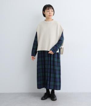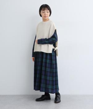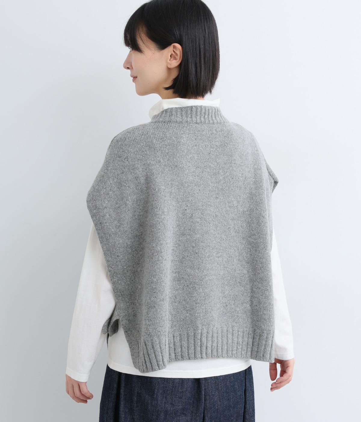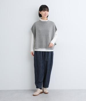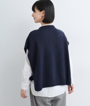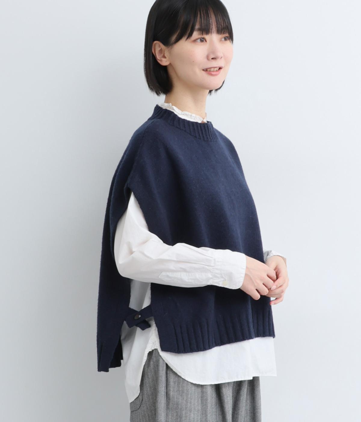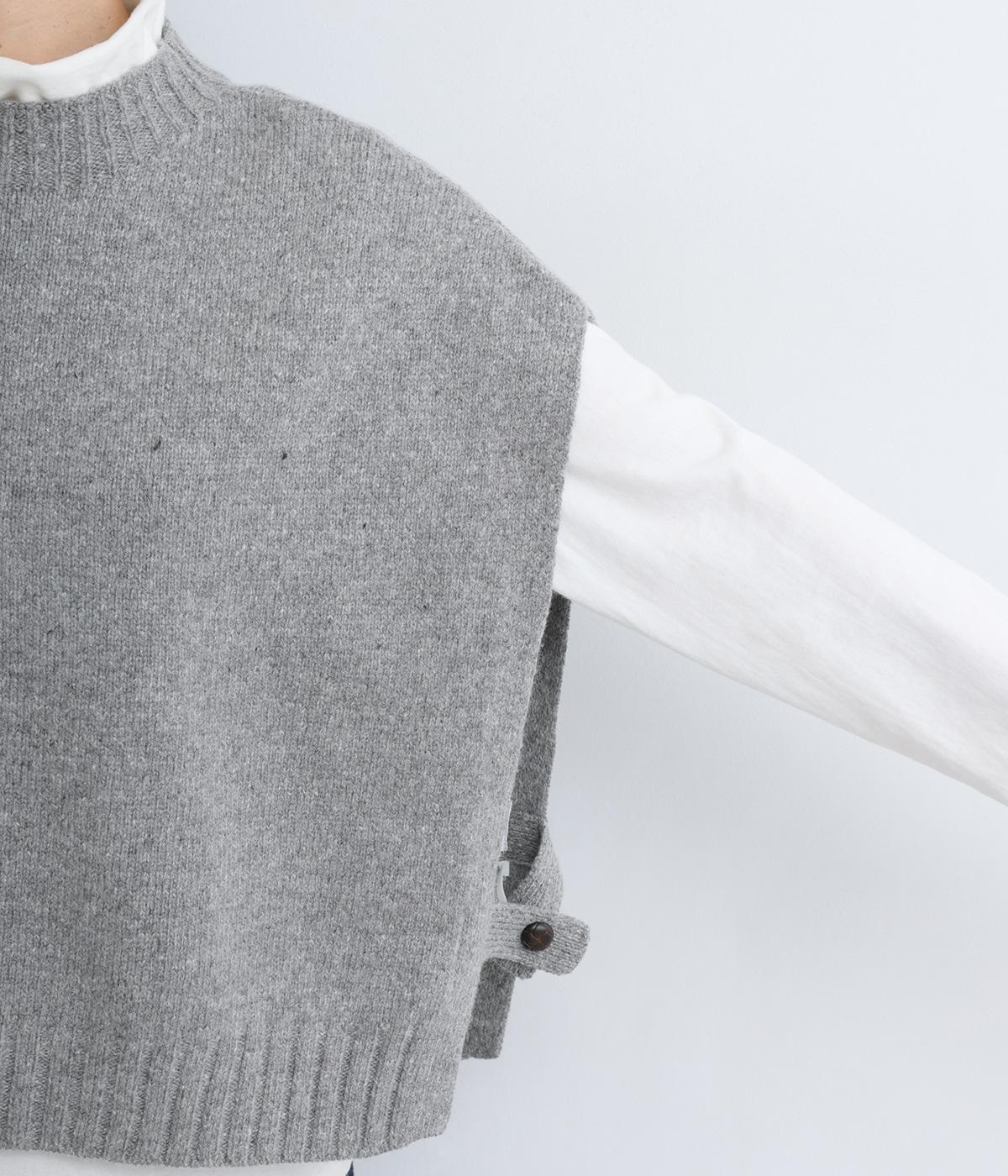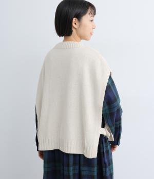 ニットのソフトな風合いが映えるシンプルなベスト。横に張り出した身頃が気になる二の腕をカバーしてくれます。サイドはボタンで留める仕様になっており、抜け感のある横姿が◎。コンパクトな着丈でボリュームのあるボトムスとも好相性です。