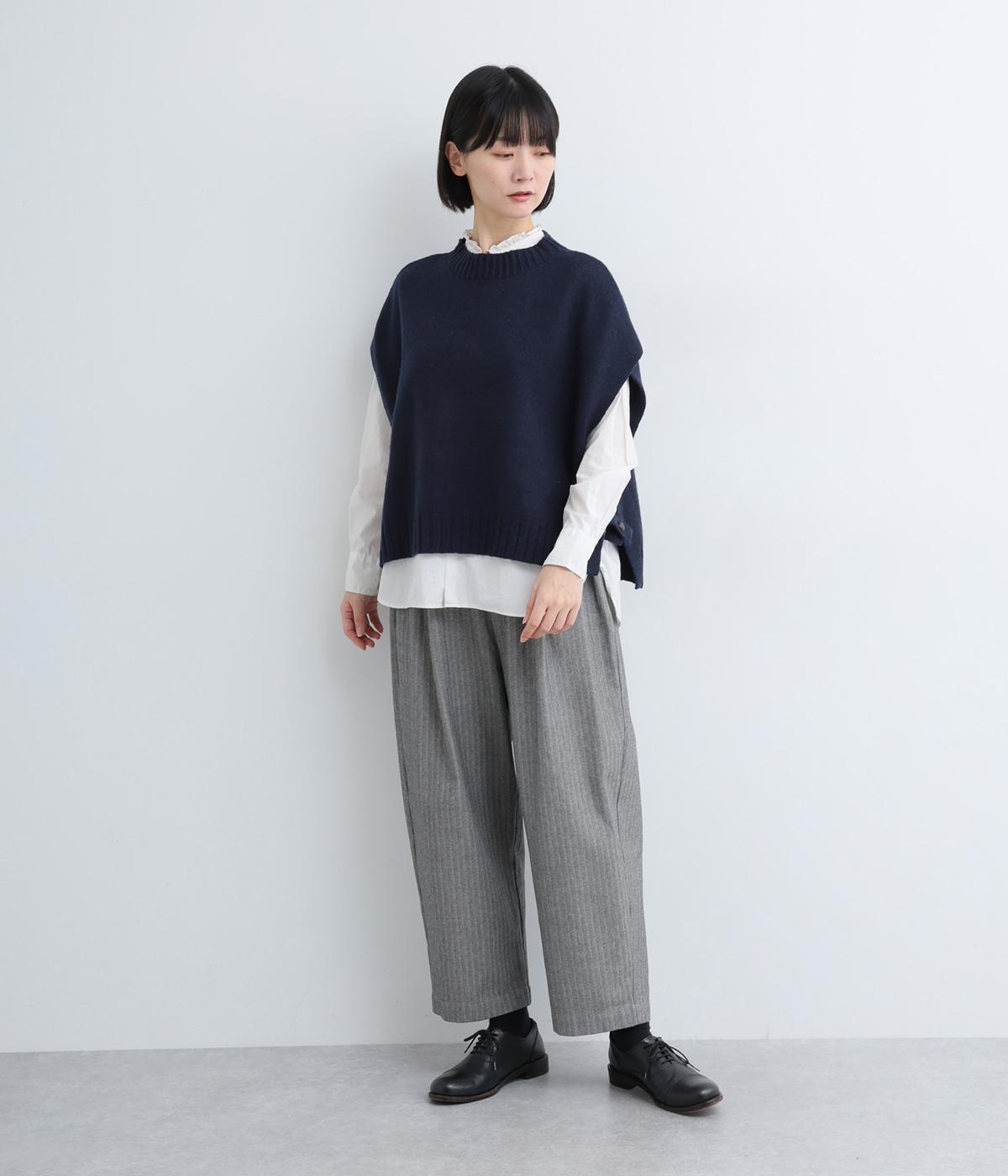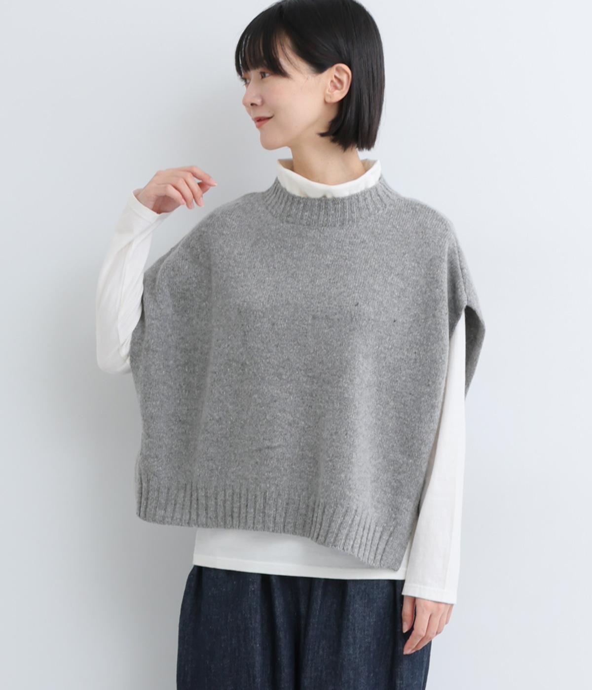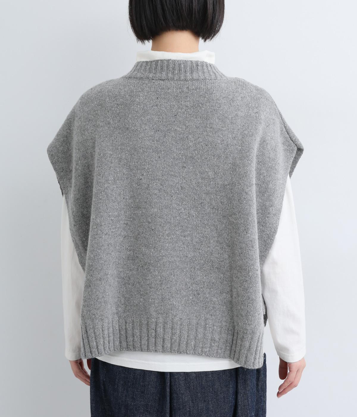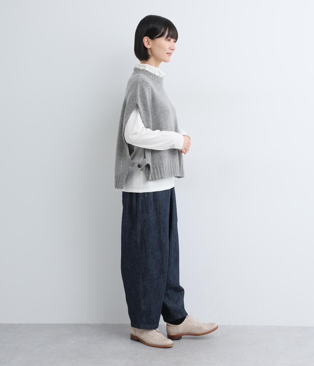 ニットのソフトな風合いが映えるシンプルなベスト。横に張り出した身頃が気になる二の腕をカバーしてくれます。サイドはボタンで留める仕様になっており、抜け感のある横姿が◎。コンパクトな着丈でボリュームのあるボトムスとも好相性です。