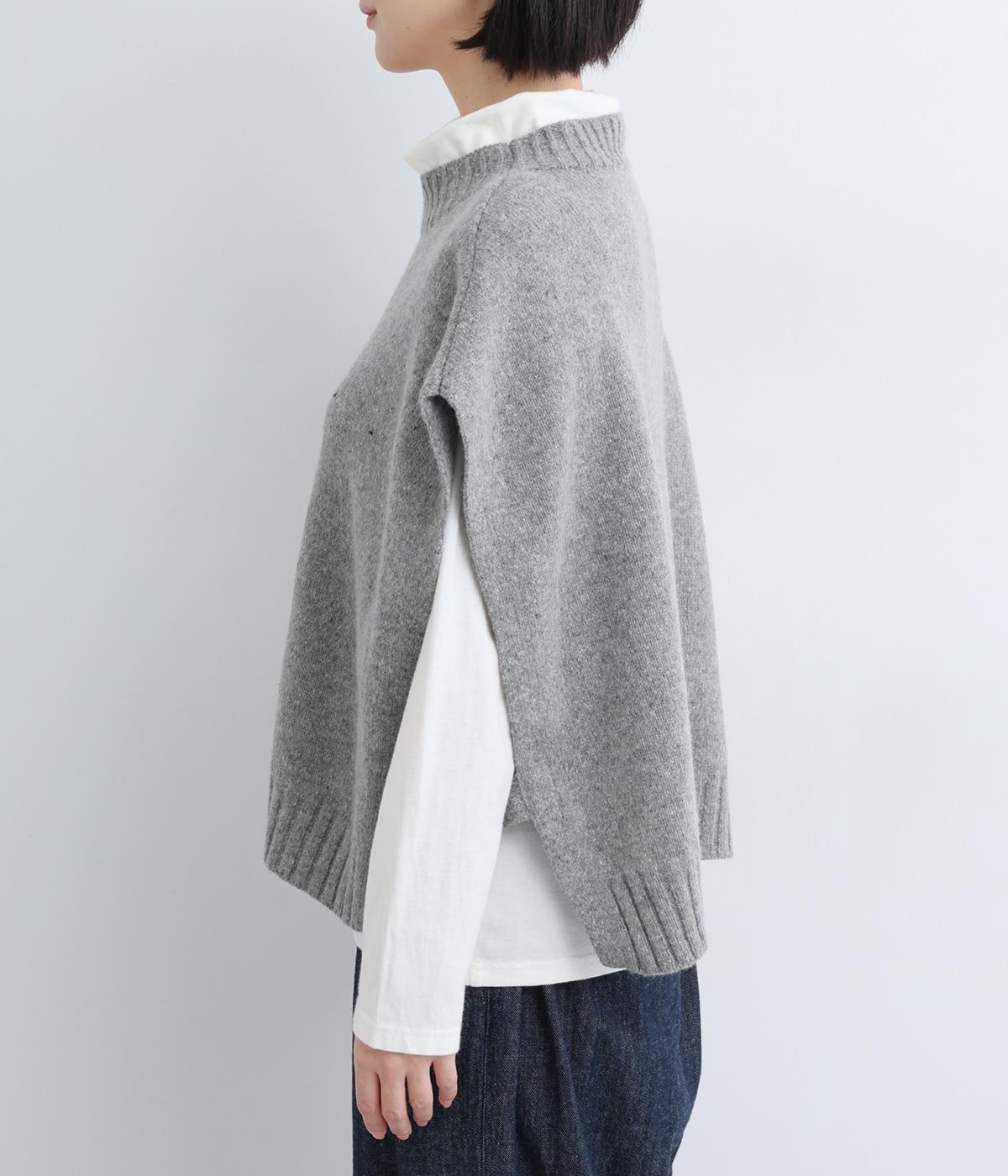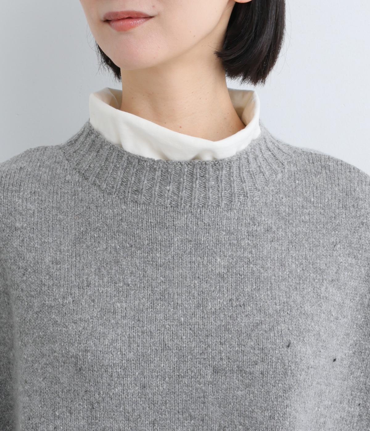 ふっくらとしたやわらかな風合いとあたたかな着用感を叶えるラムウールを混紡したニット生地です。厚みをおさえた軽い生地感で、重ね着スタイルをストレスフリーにたのしめます。
