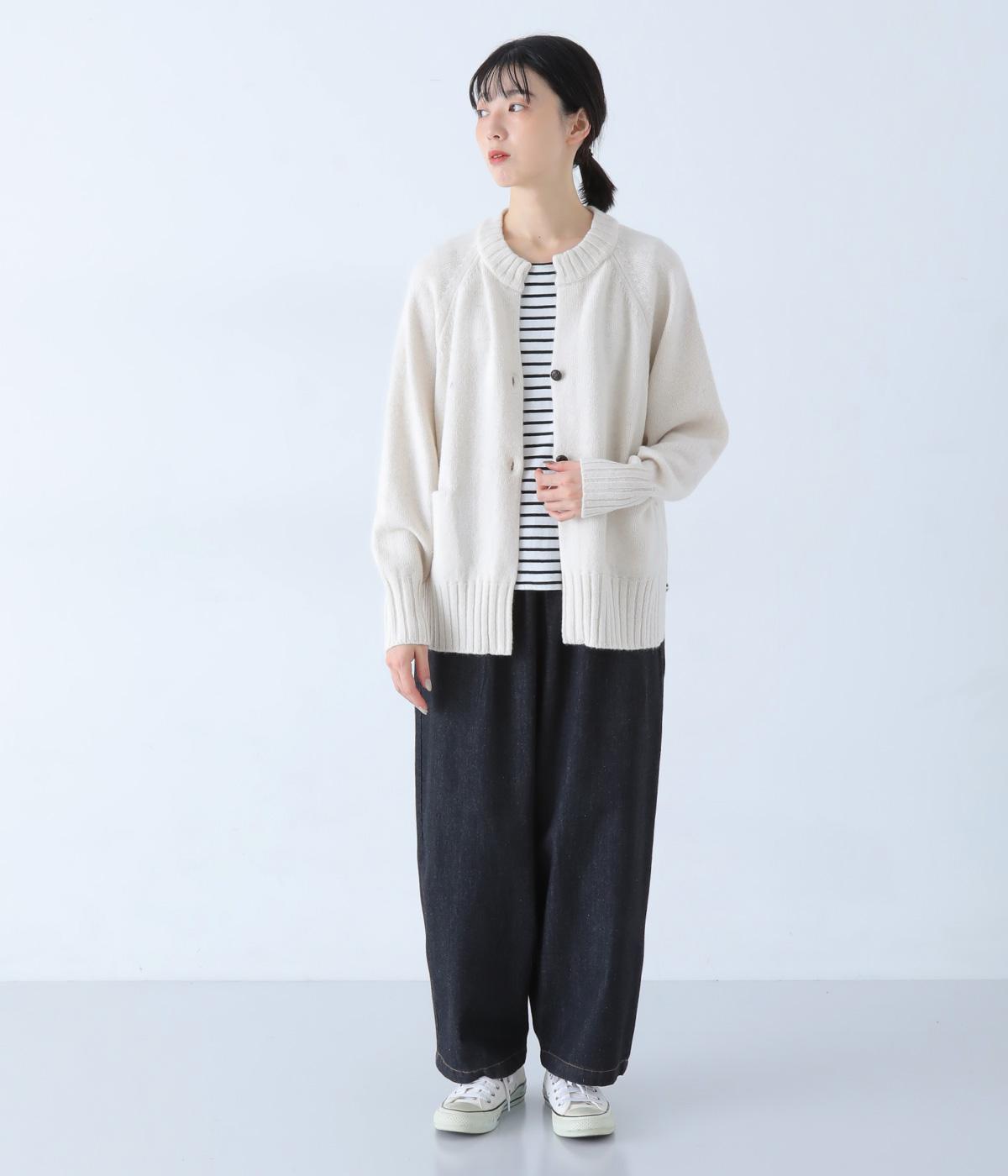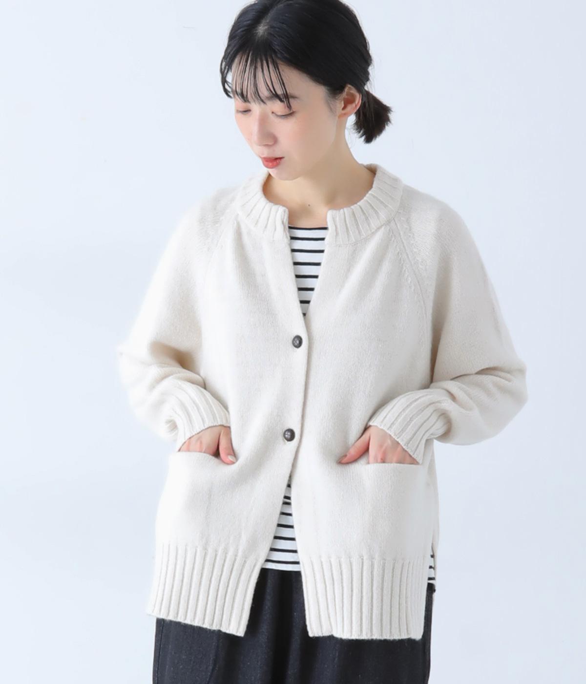 丈にほんのりと前後差をつけ、サイドは重ねスリット仕様に。レイヤードしても動きやすいラグランスリーブで、インナーがもたつきにくく快適に着こなせます。