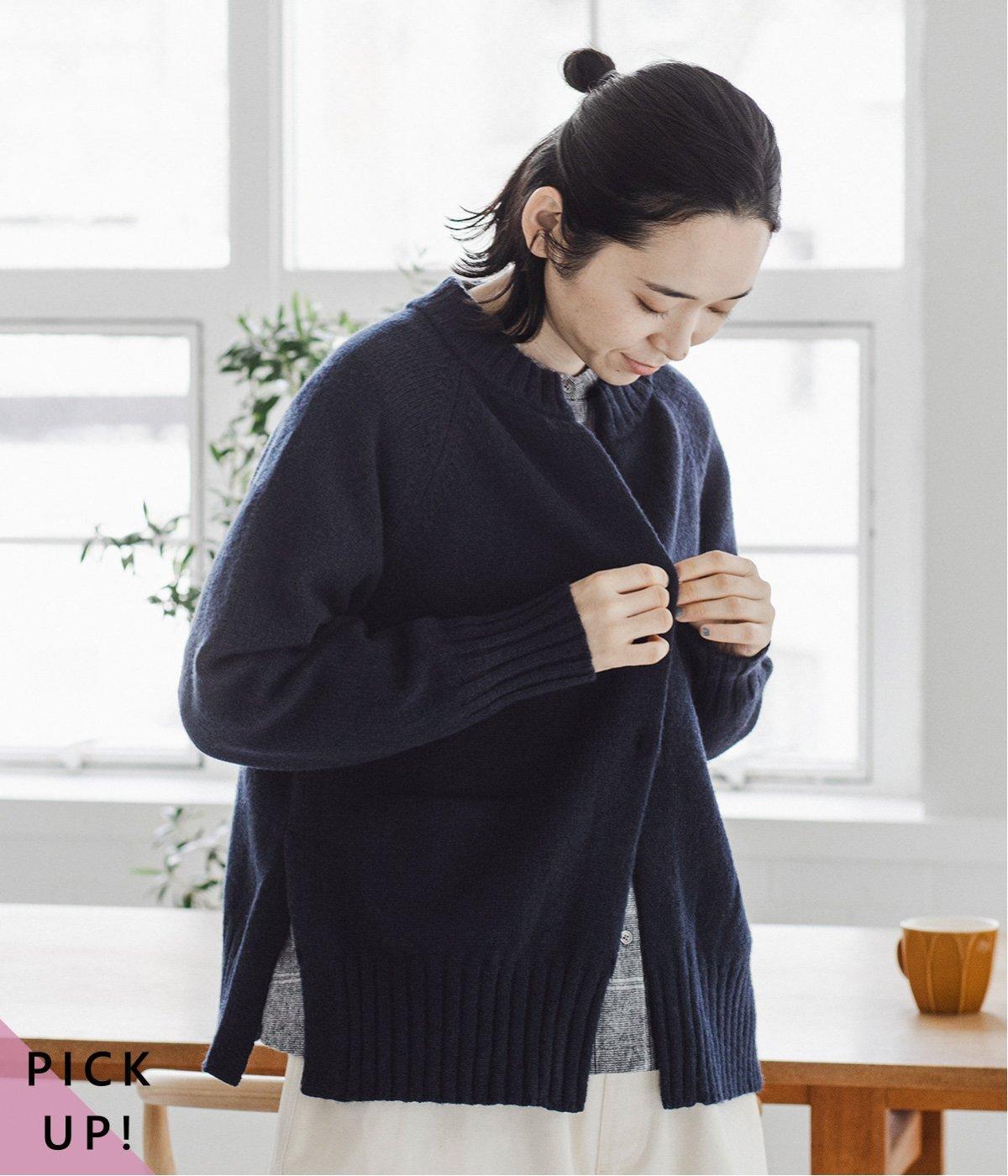 ゆったりと着られる、ほどよい肉感のニットカーディガン。2ボタン仕様やサイドスリットなど、装いを洗練させるディテールが随所に散りばめられています。