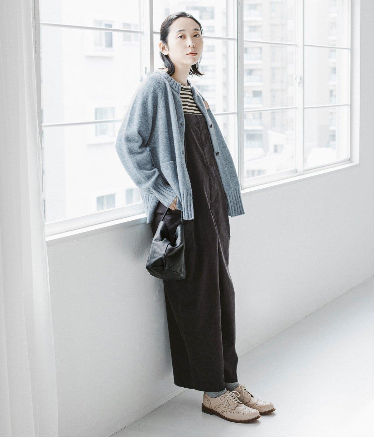 淡く青みがかった色味ながら、どこか温もりのある<杢グレーサックス>は、冬の装いに映えるカラー。ボーダーTシャツとサロペットをワントーンでまとめ、ニットを差し色に遊び心をプラスしました。