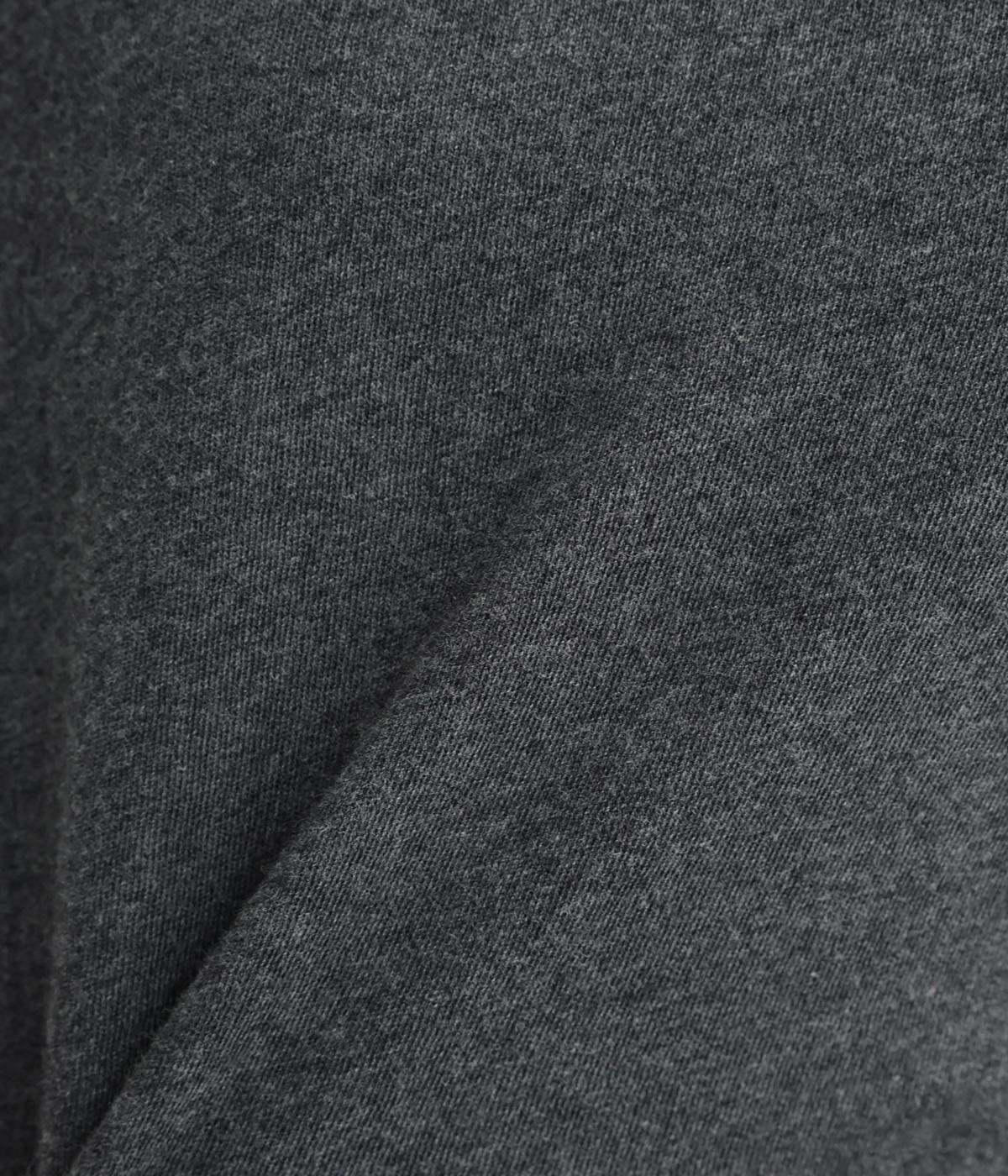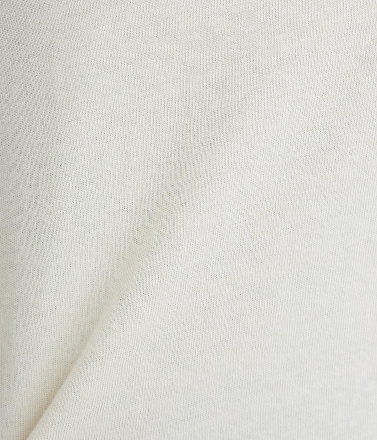 落ち綿を再利用して作られるラフィー糸で編まれた生地。表面にややメランジ感のあるナチュラルな風合いで、最初から肌になじんだような快適な着心地です。
