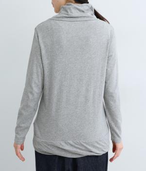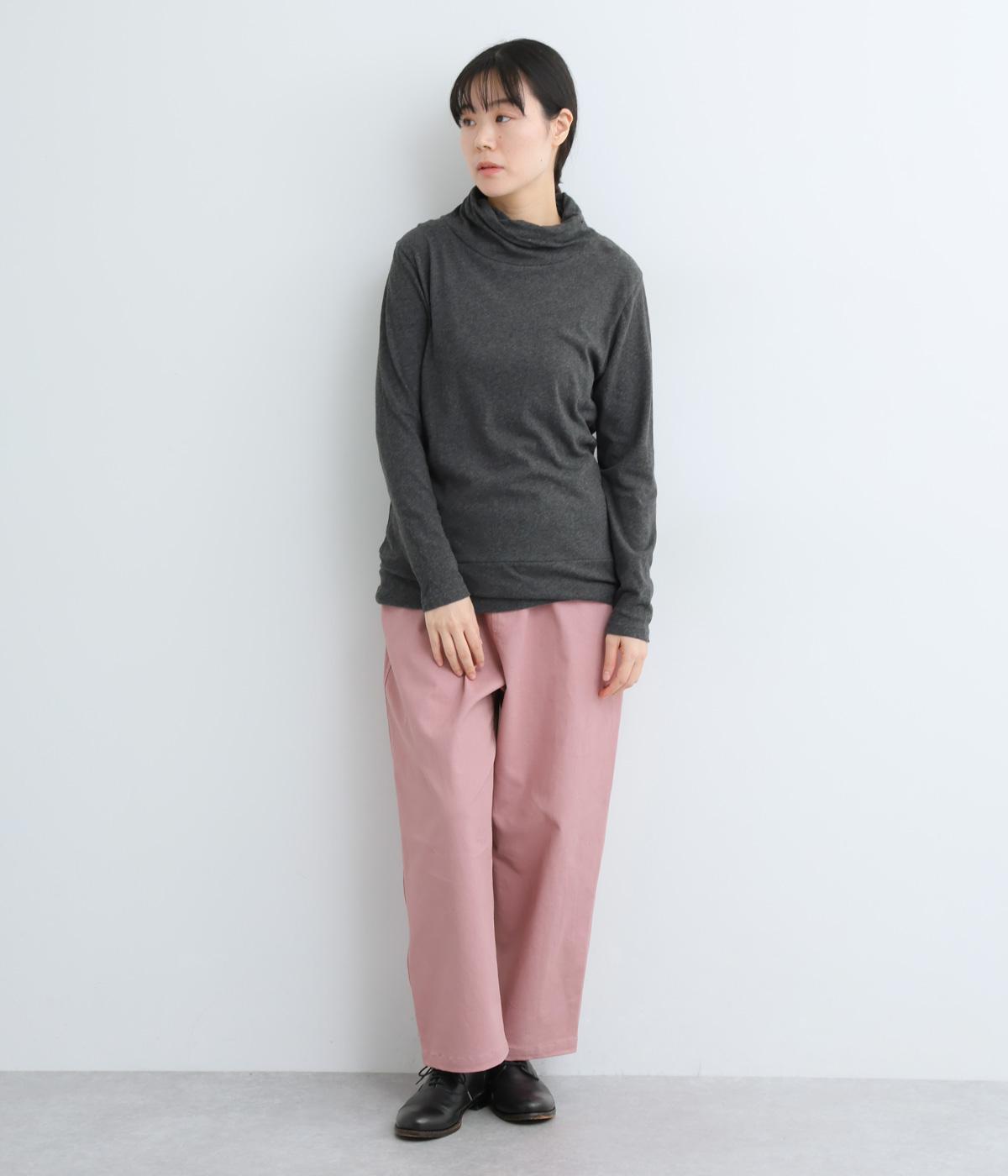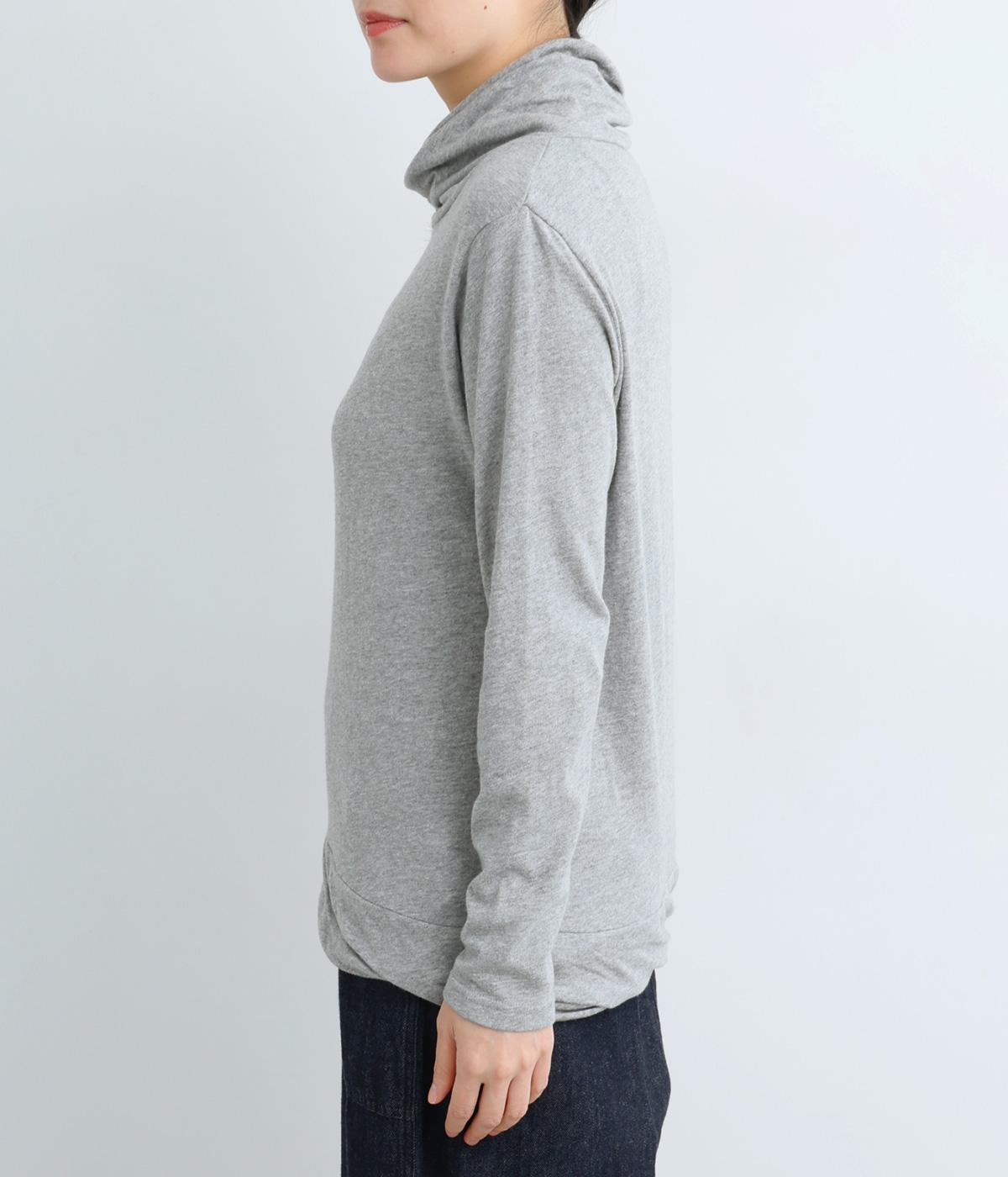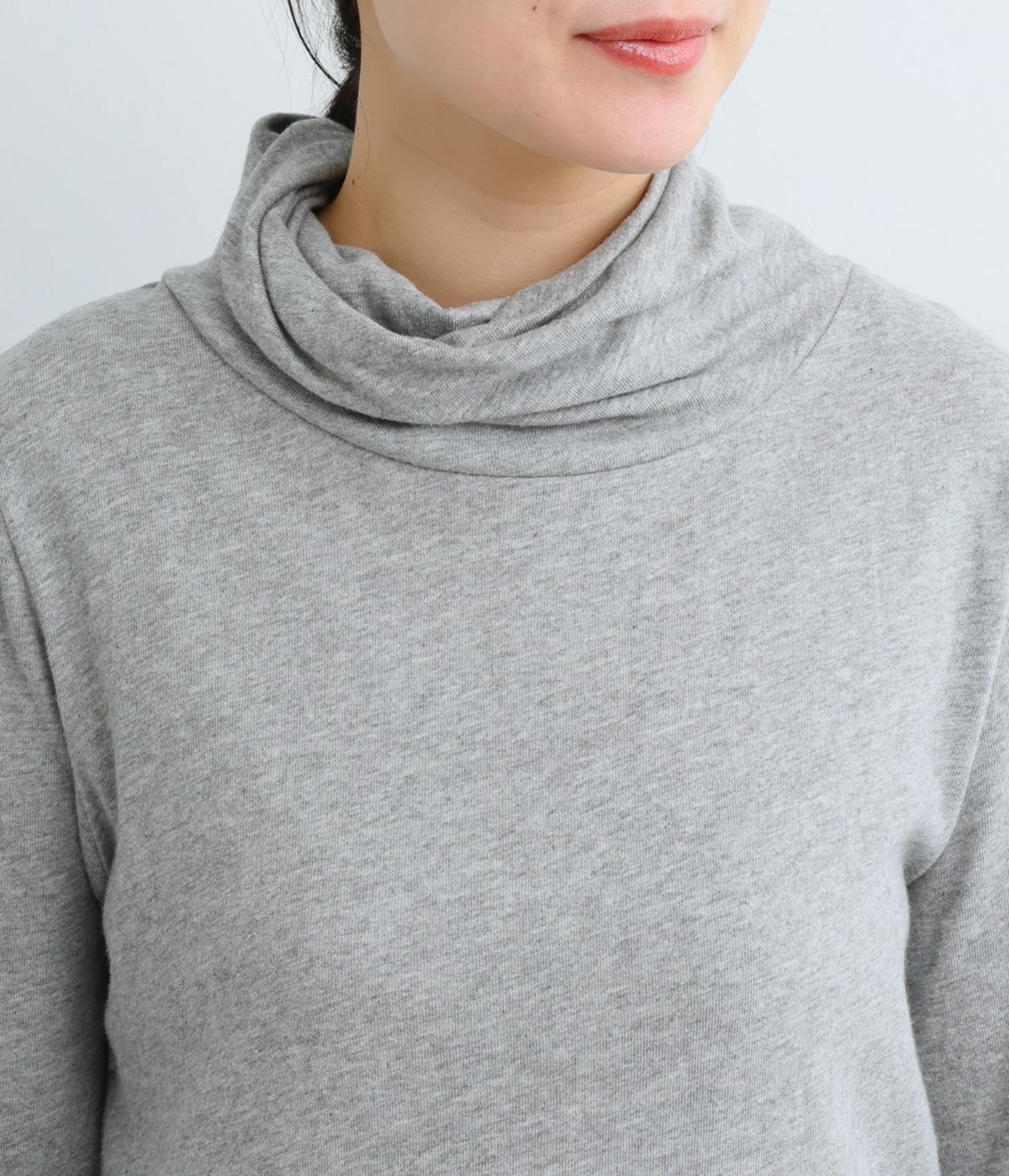 ベーシックなプルオーバーに、ハイネックと裾部分の生地をねじれさせてデザイン性をプラス。ふっくらした素材感と相まって立体的な表情が生まれます。体にほどよく寄り添うシルエットで、締め付け感なく快適に着こなせます。