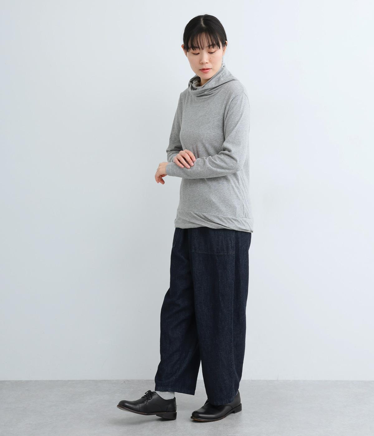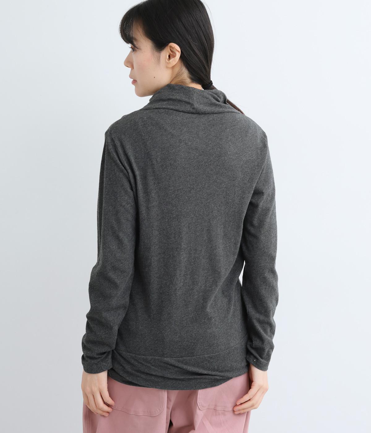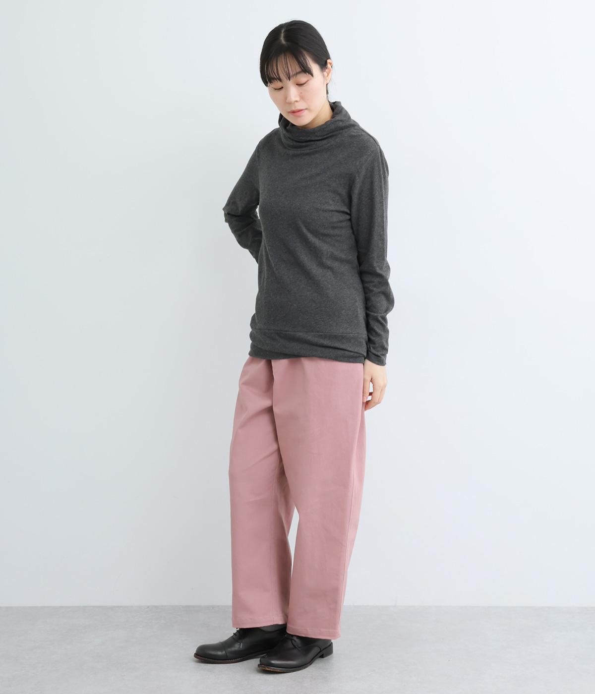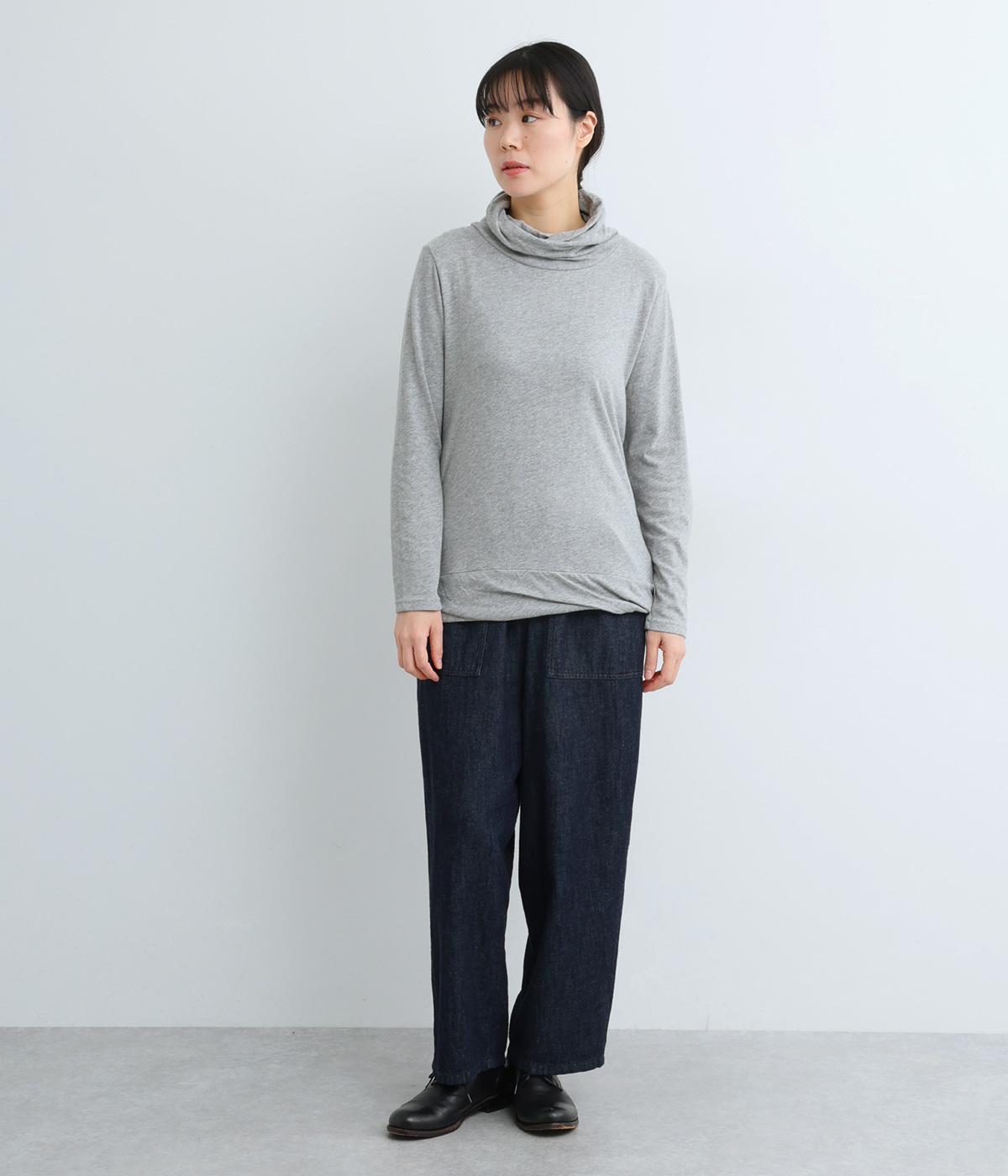 ベーシックなプルオーバーに、ハイネックと裾部分の生地をねじれさせてデザイン性をプラス。ふっくらした素材感と相まって立体的な表情が生まれます。体にほどよく寄り添うシルエットで、締め付け感なく快適に着こなせます。